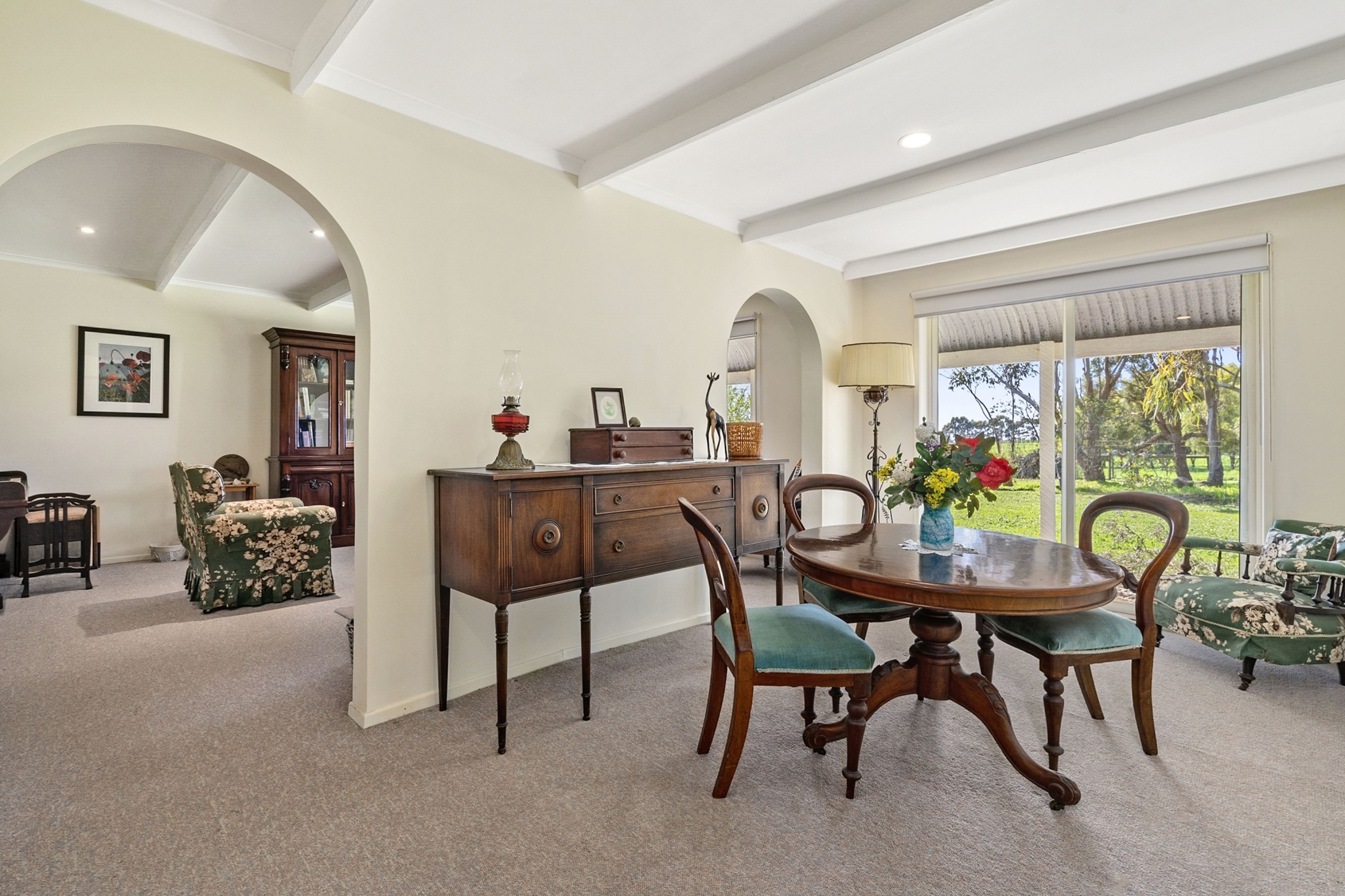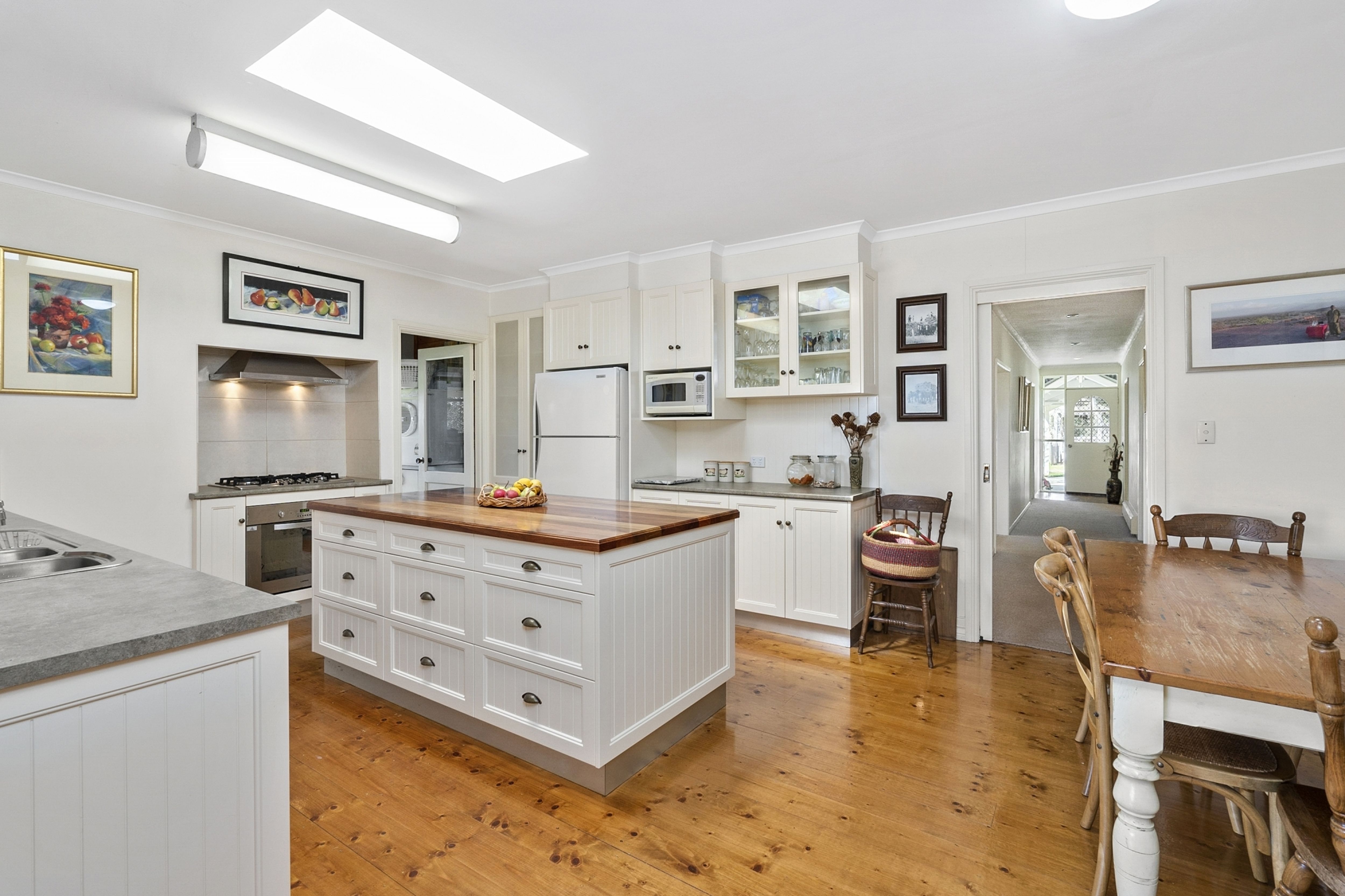 Boasting large accommodation the five bedroom home features master bedroom with ensuite and WIR, informal open plan kitchen / dining / living with wood heating, formal lounge with open fire, formal dining, central bathroom, study, mud room, hydronic heating, solar electricity, bullnose verandah, undercover alfresco, double garage and 4 car carport.