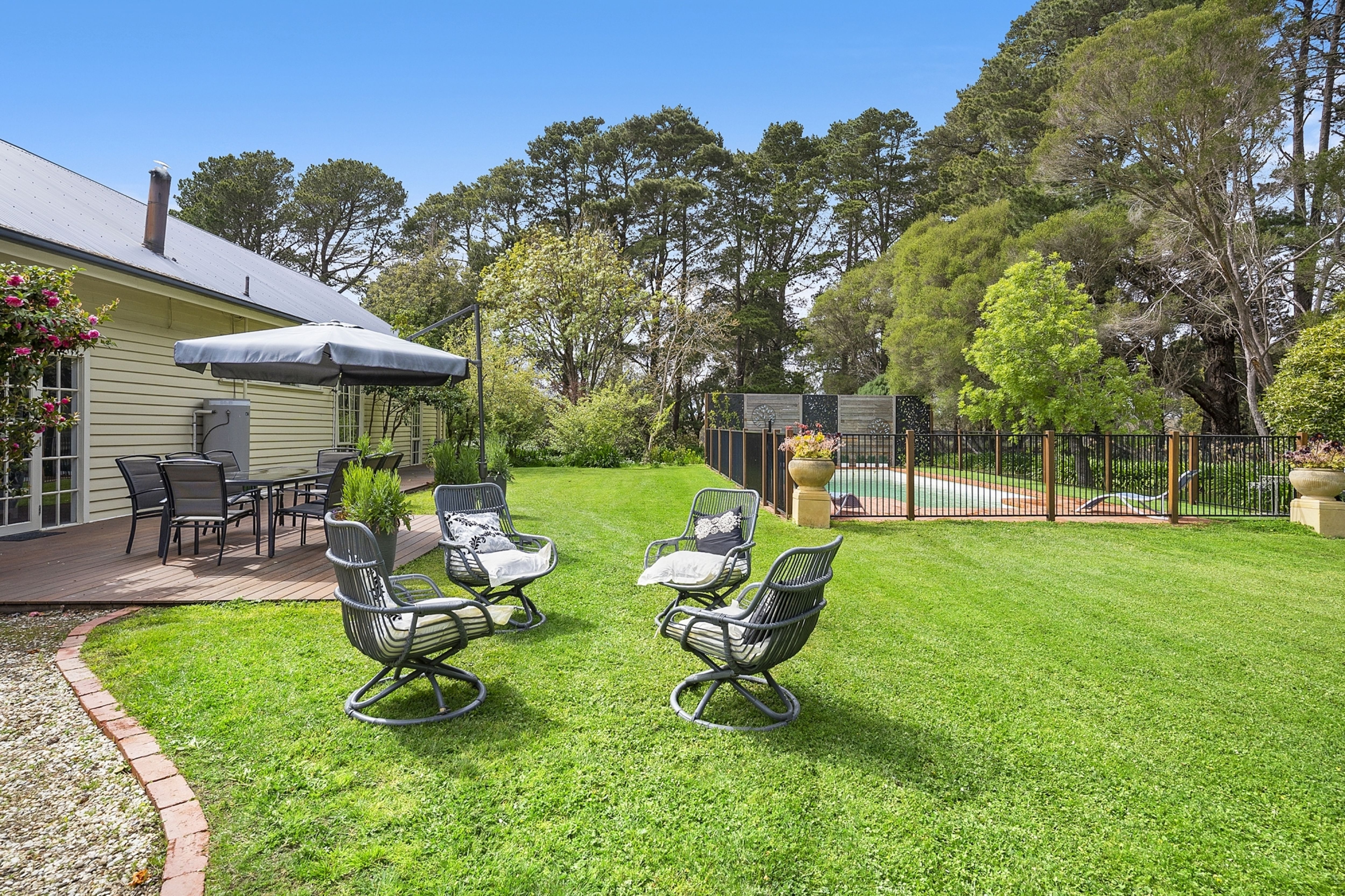 With an open plan kitchen, meals and living area overlooking the outdoor deck to the swimming pool, you get a sense of charm and relaxation rarely found on a working farm.
