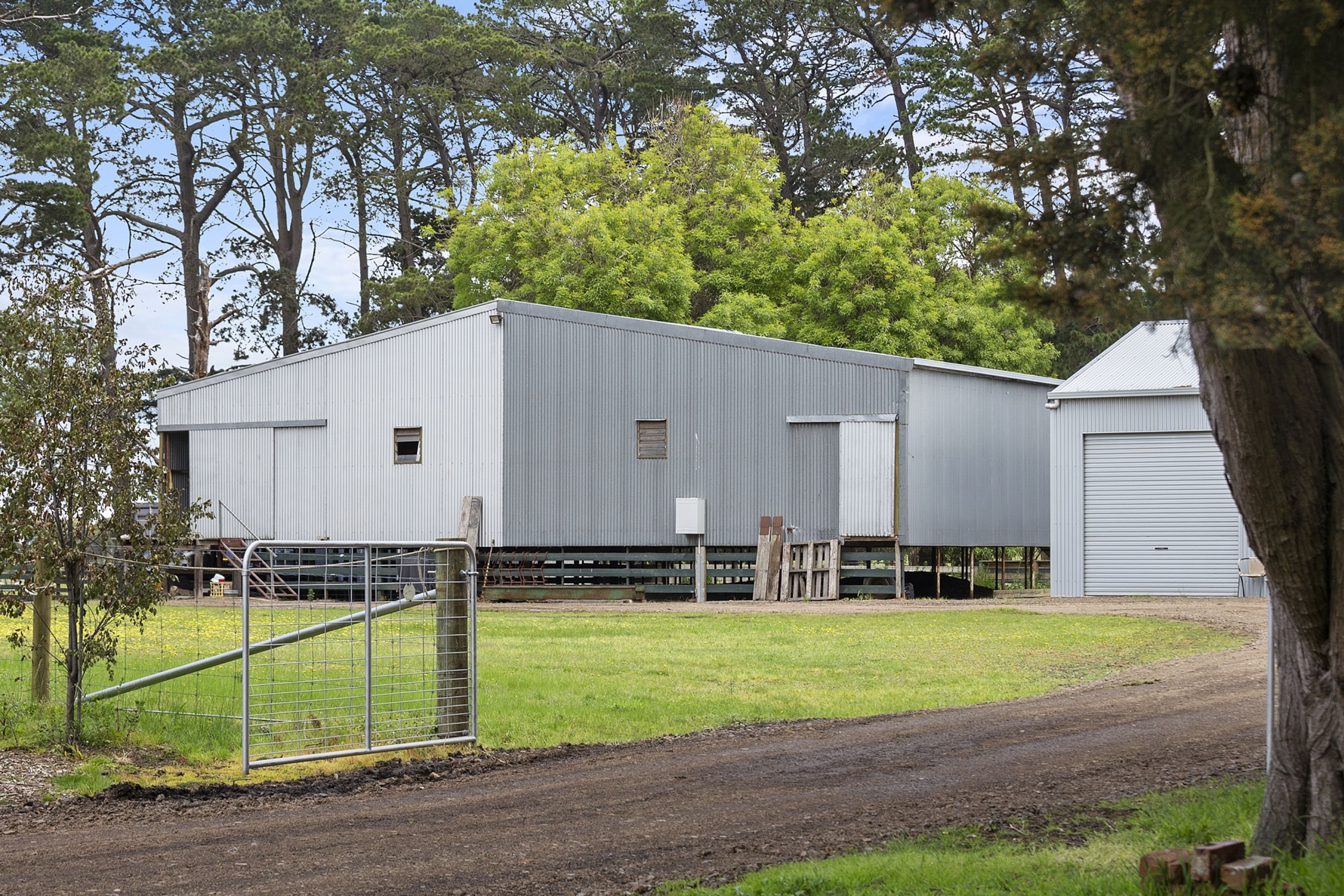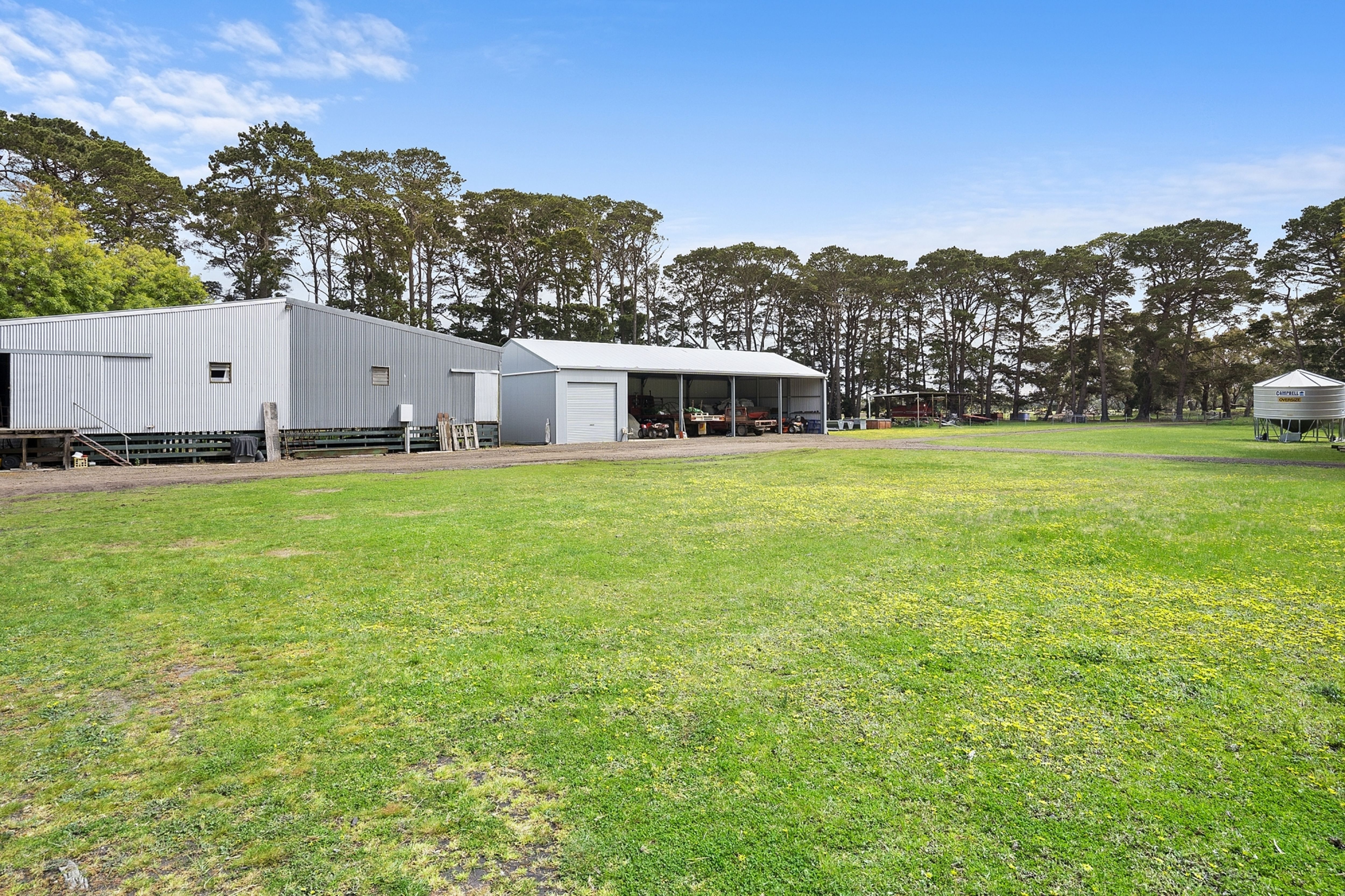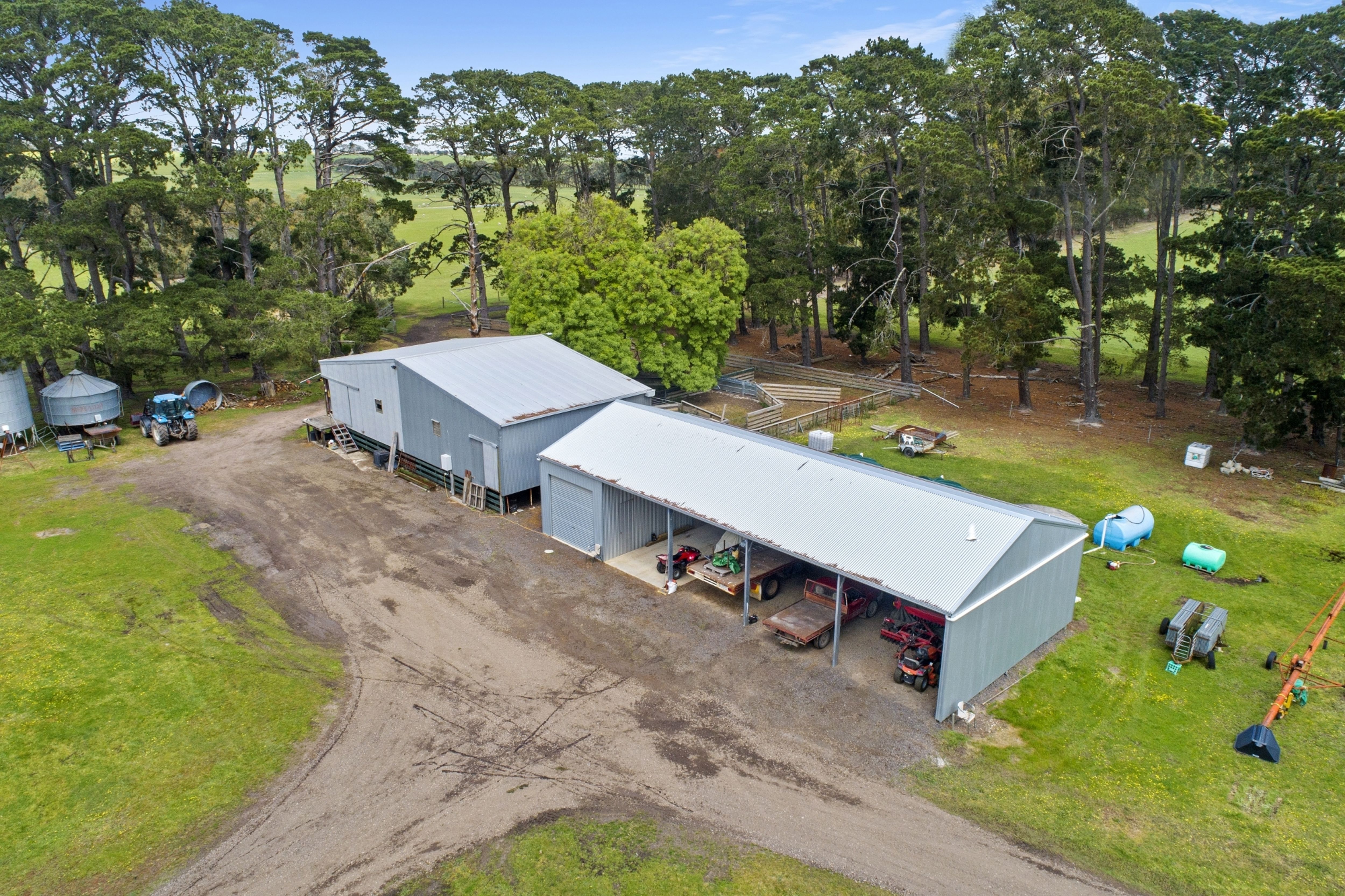 Excellent shedding incorporating a two stand shearing shed, five bay machinery shed (one bay with roller door) and hay shed.