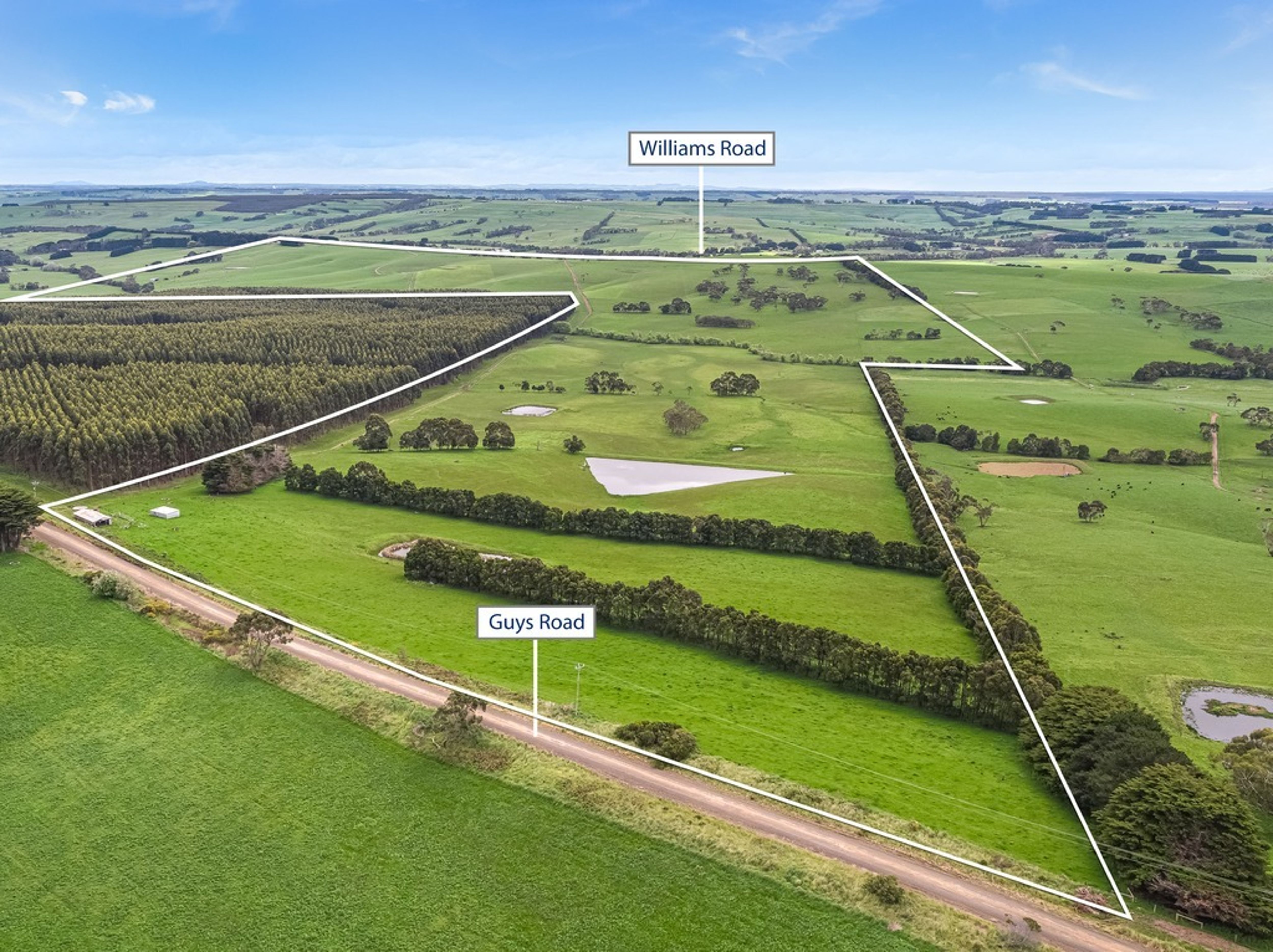 Attractive high quality gently undulating rich arable sandy loam soils carrying predominately excellent pastures of perennial rye and clover, on 4 titles this property has a bitumen road frontage and a rear frontage to Guys Road.