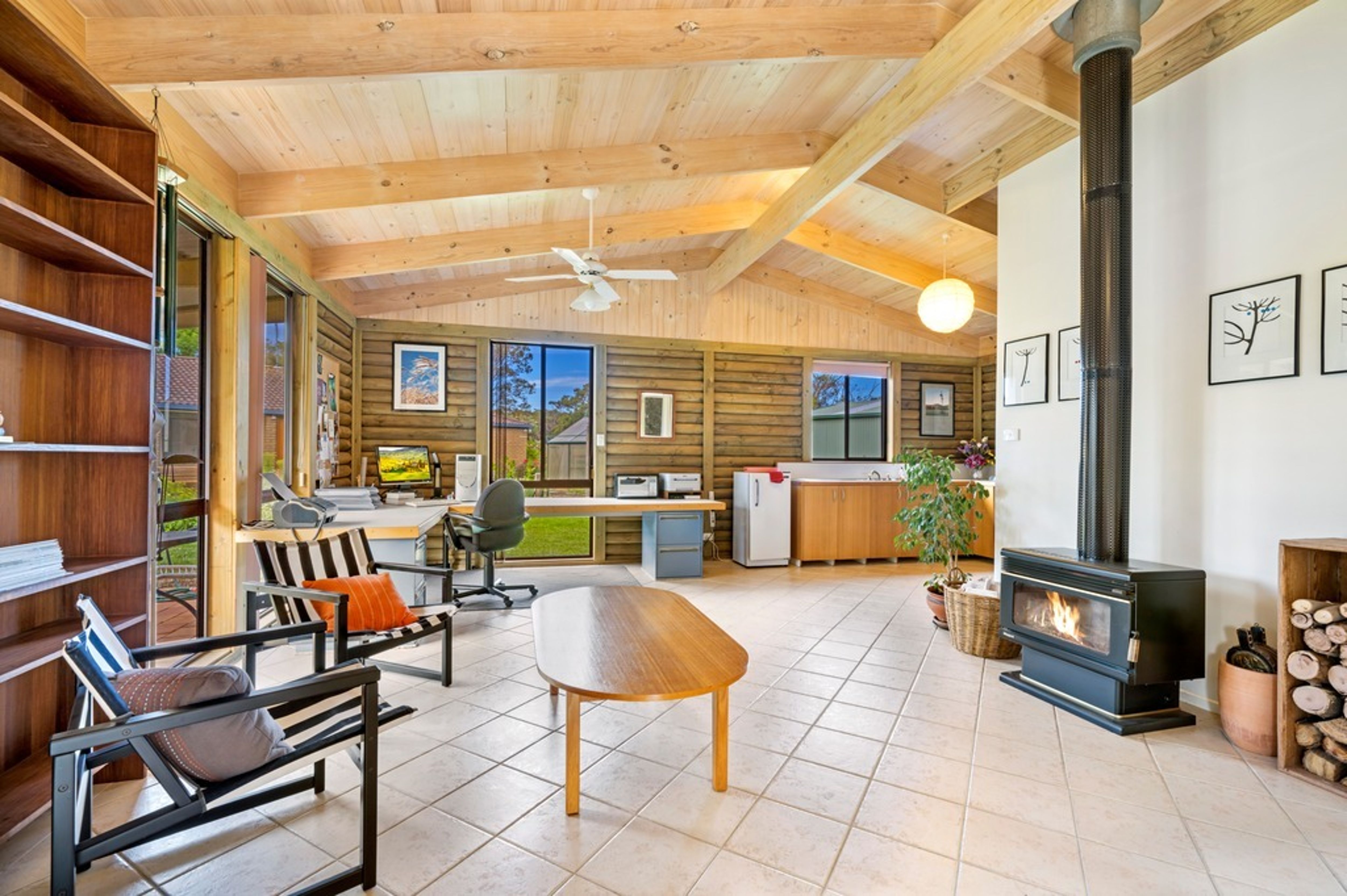 In a beautiful garden setting this 4 bedroom (master with WIR and ensuite) home has two bathrooms, an expansive lounge & dining space with a northerly aspect complete with wood heater & RC air-conditioning. A spacious kitchen includes an Rayburn stove (also heats water and underfloor heating), gas cooktop and under bench refrigerator. To the rear of the home is a 2 bedroom self-contained studio complete with bathroom and kitchenette.