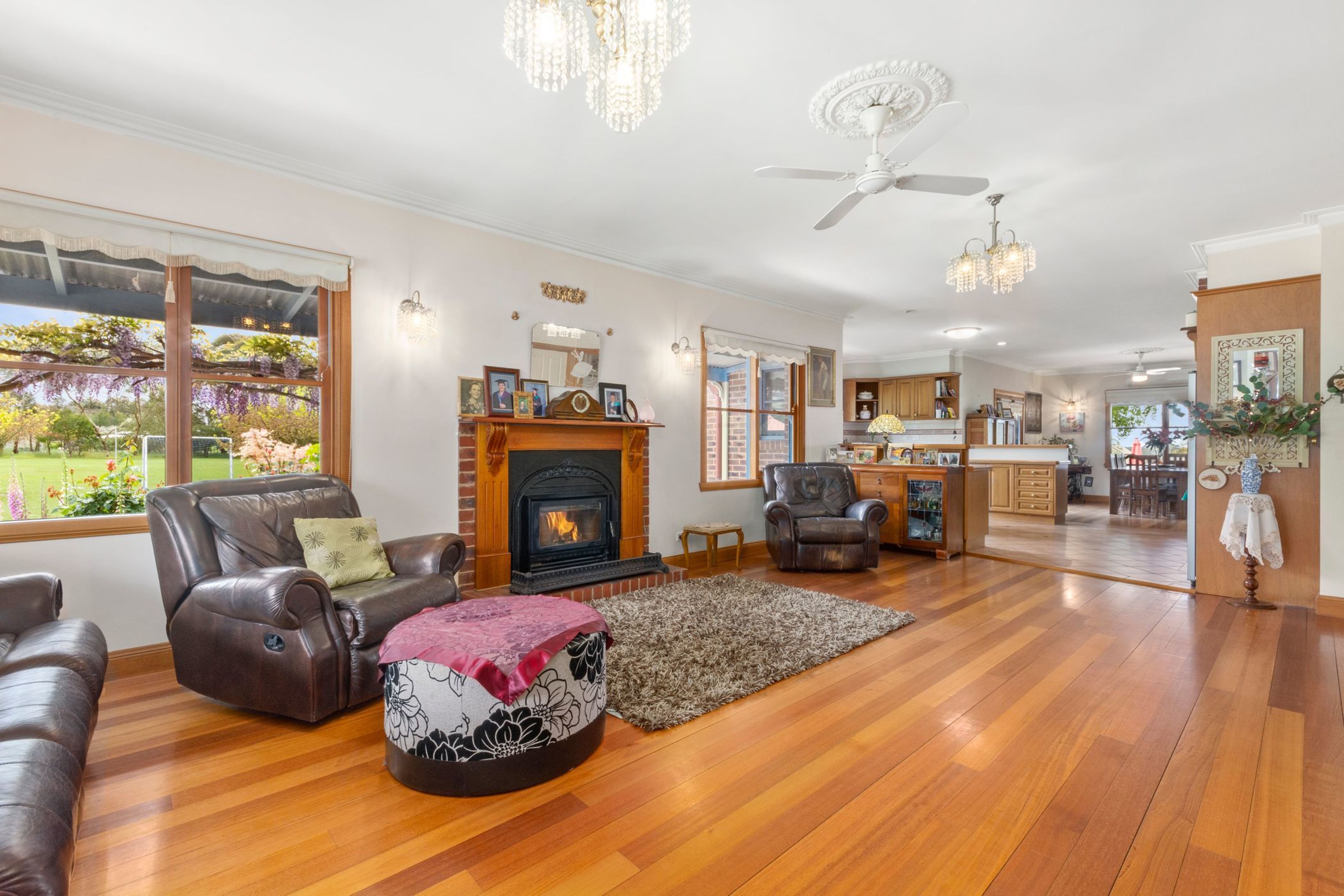 The acreage itself has been well crafted with room to move for the whole family. Main paddock with horse shelter, secure electric fences, veggie garden and orchard with hot house, dam and 100,000 ltrs of tank water (approx).