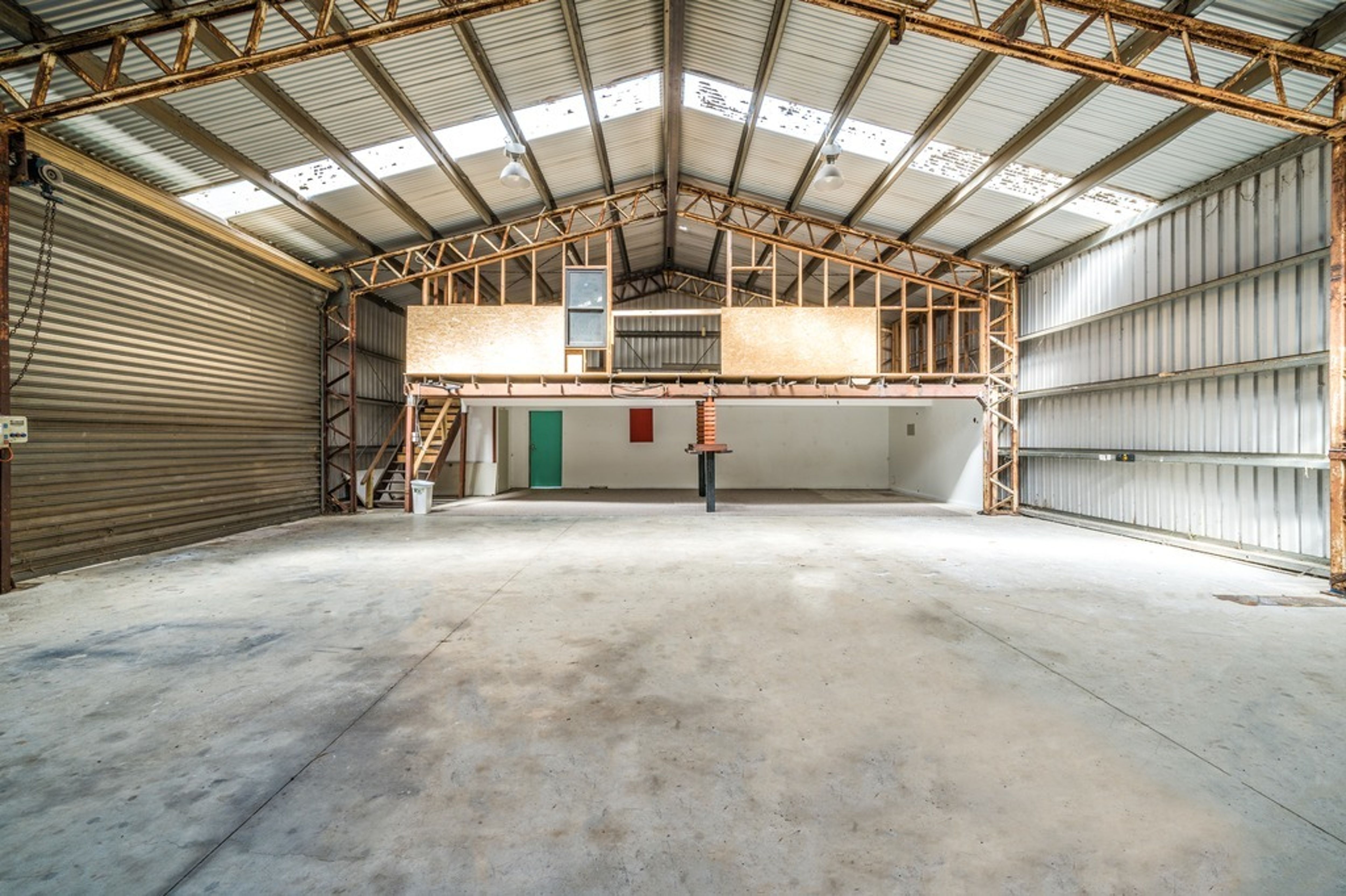 An expansive backyard includes a 260sqm industrial style shed with approximately 130sqm of mezzanine storage, three high roller doors, concrete floor, industrial lighting and three phase power.