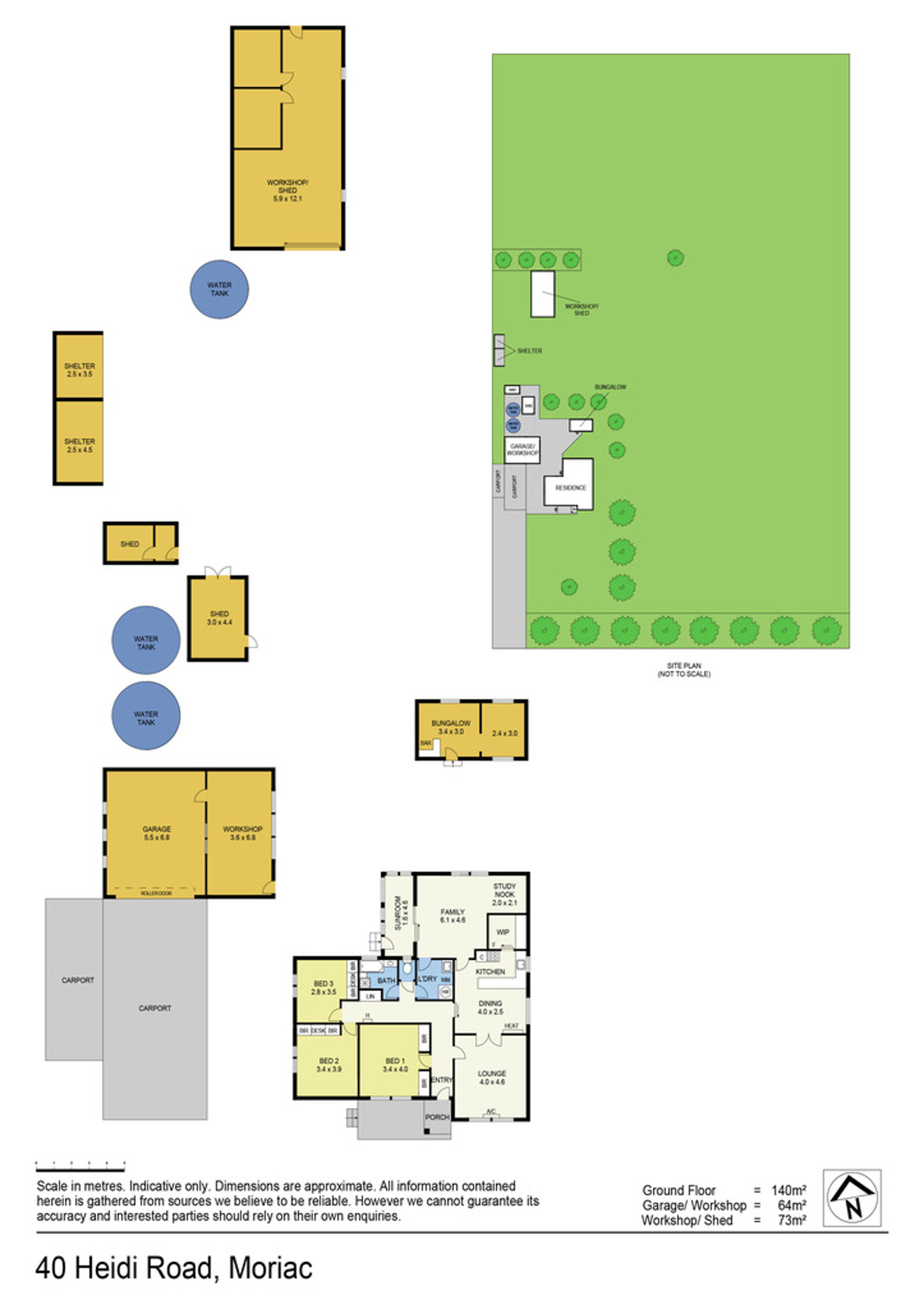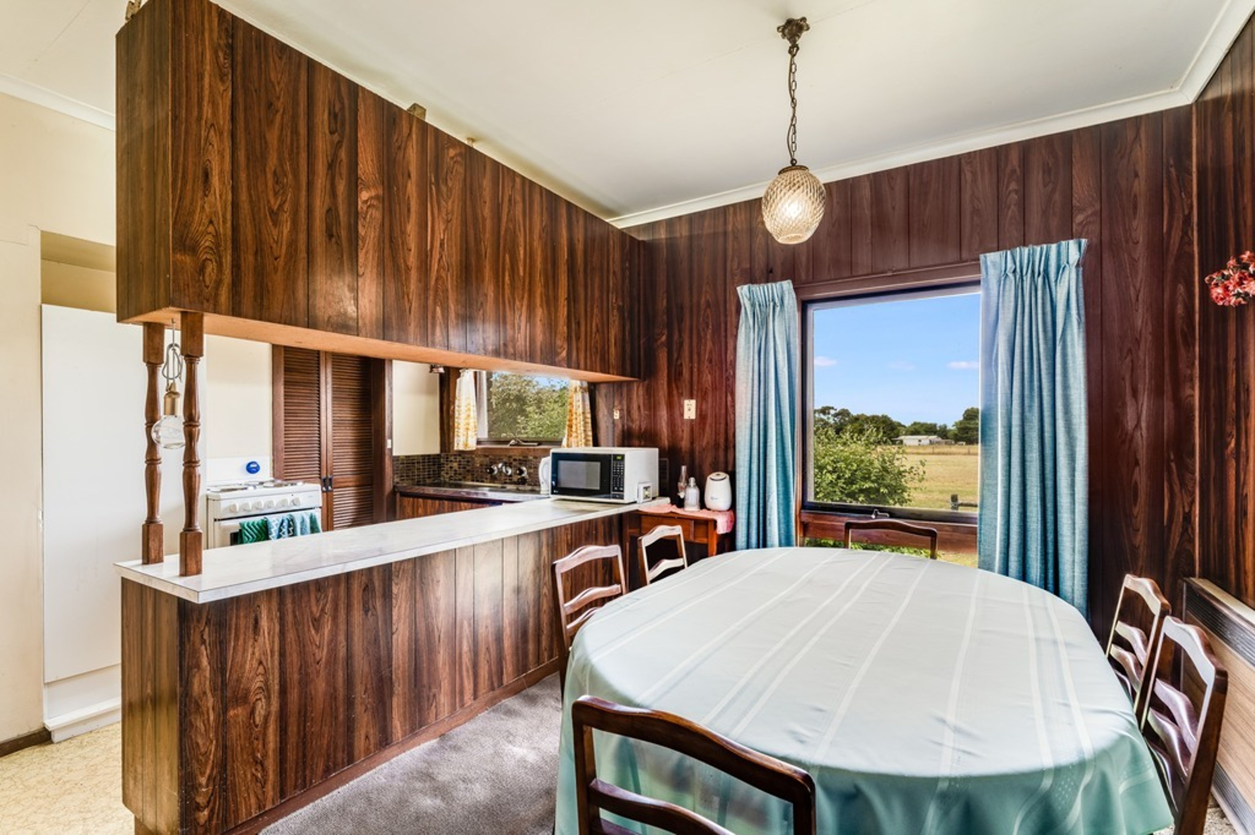 The modest family home comprises 3 bedrooms (all with BIR's), family bathroom, living room with s/system, kitchen (electric stove, oven and walk-in-pantry), meals area with electric wall heater, rumpus room with study nook and a sunroom at the rear. Further improvements include a double garage with adjoining storage shed, 4 car carport, garden shed, wood shed, bungalow, 2 x 30 000L tank water (approx.) and a grey water system for the garden.