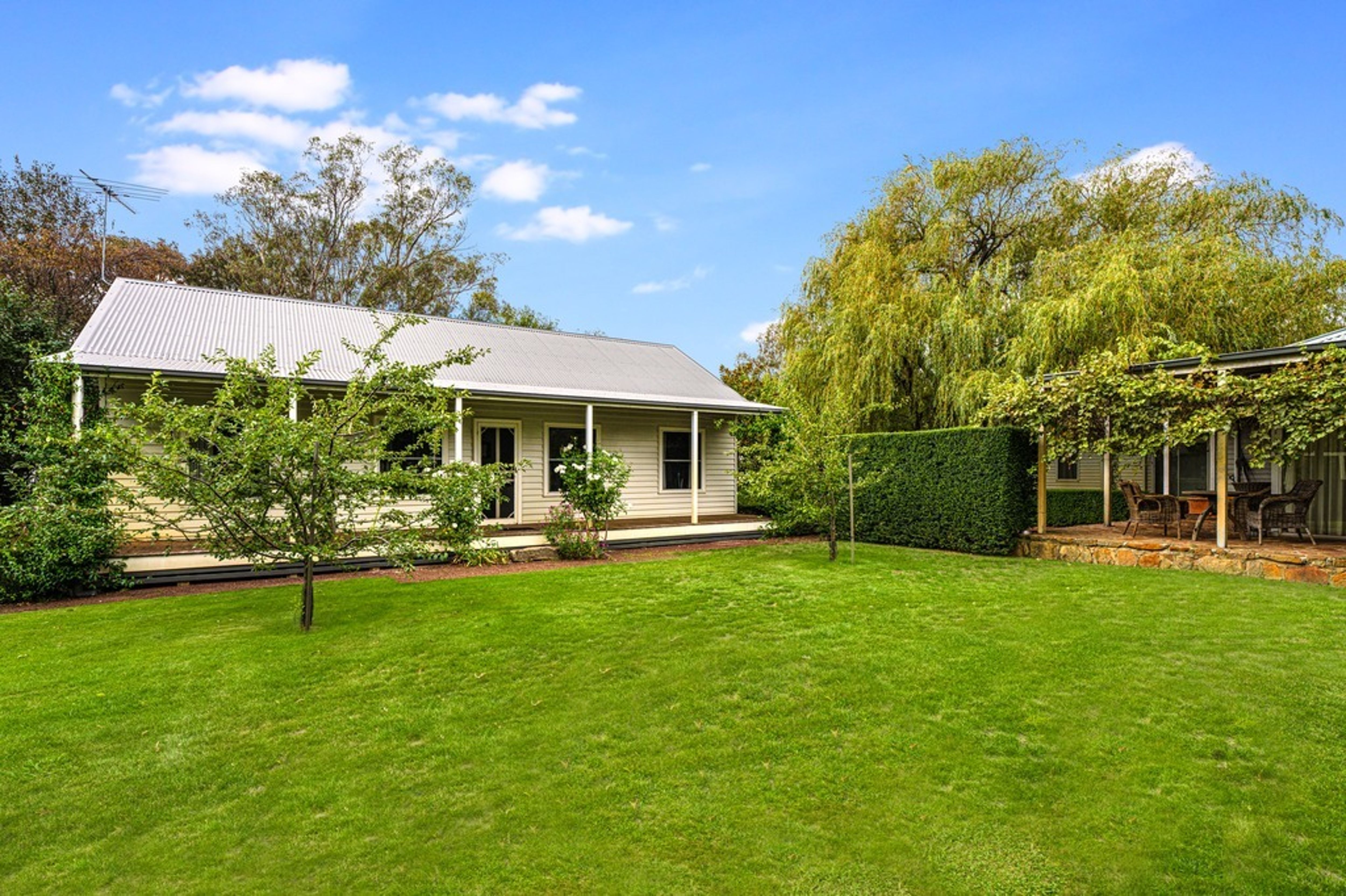 The spacious family home is surrounded by beautiful mature gardens comprising a modern, open plan kitchen/meals/family area, a separate formal lounge and dining areas. There are three generous sized bedrooms (master with walk-in-robe and ensuite), a large central family bathroom, laundry and office. An outdoor alfresco area, under the wrap-around verandah, takes in the stunning scenery enjoying spectacular views over the gardens and mountains.