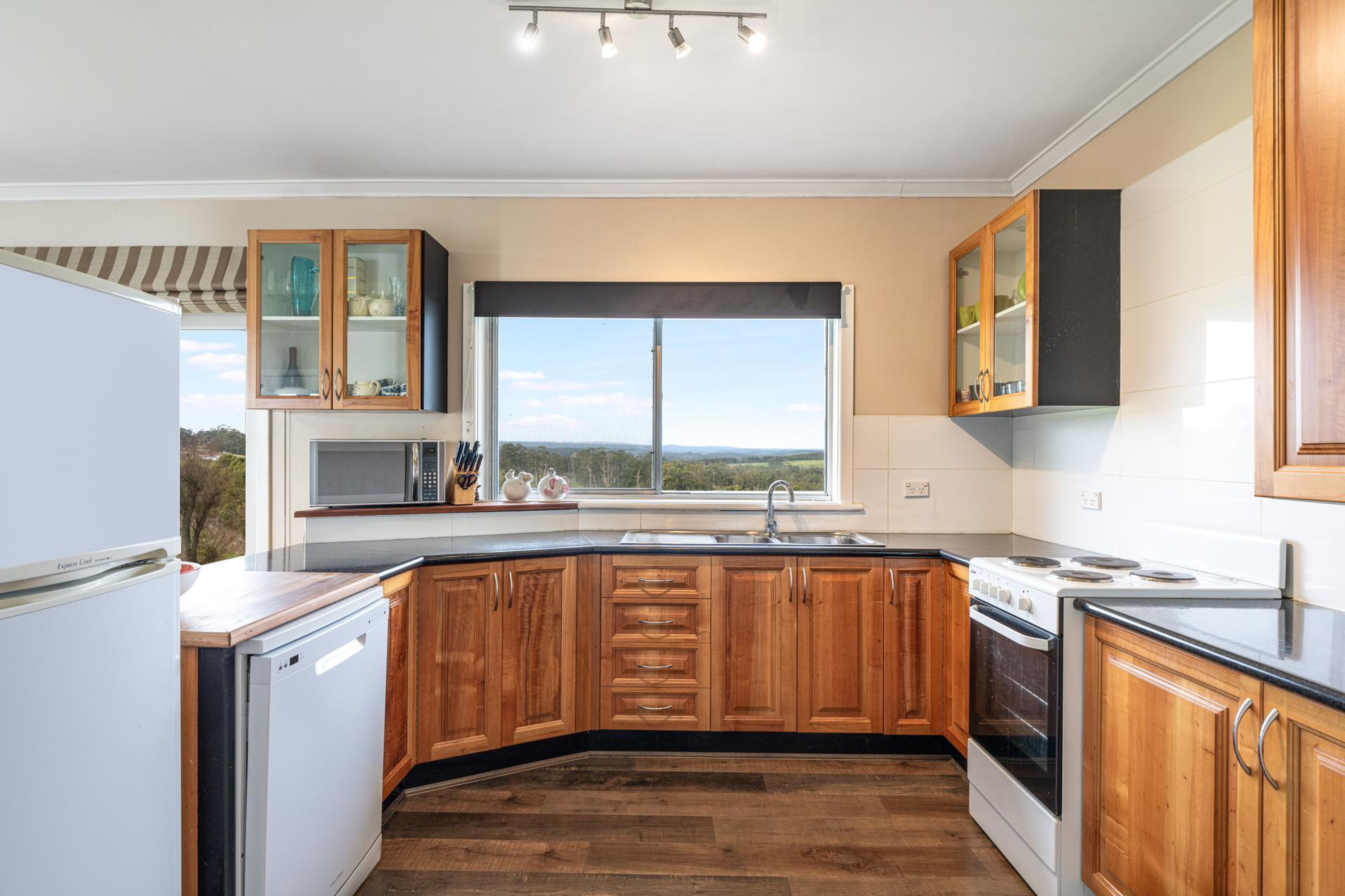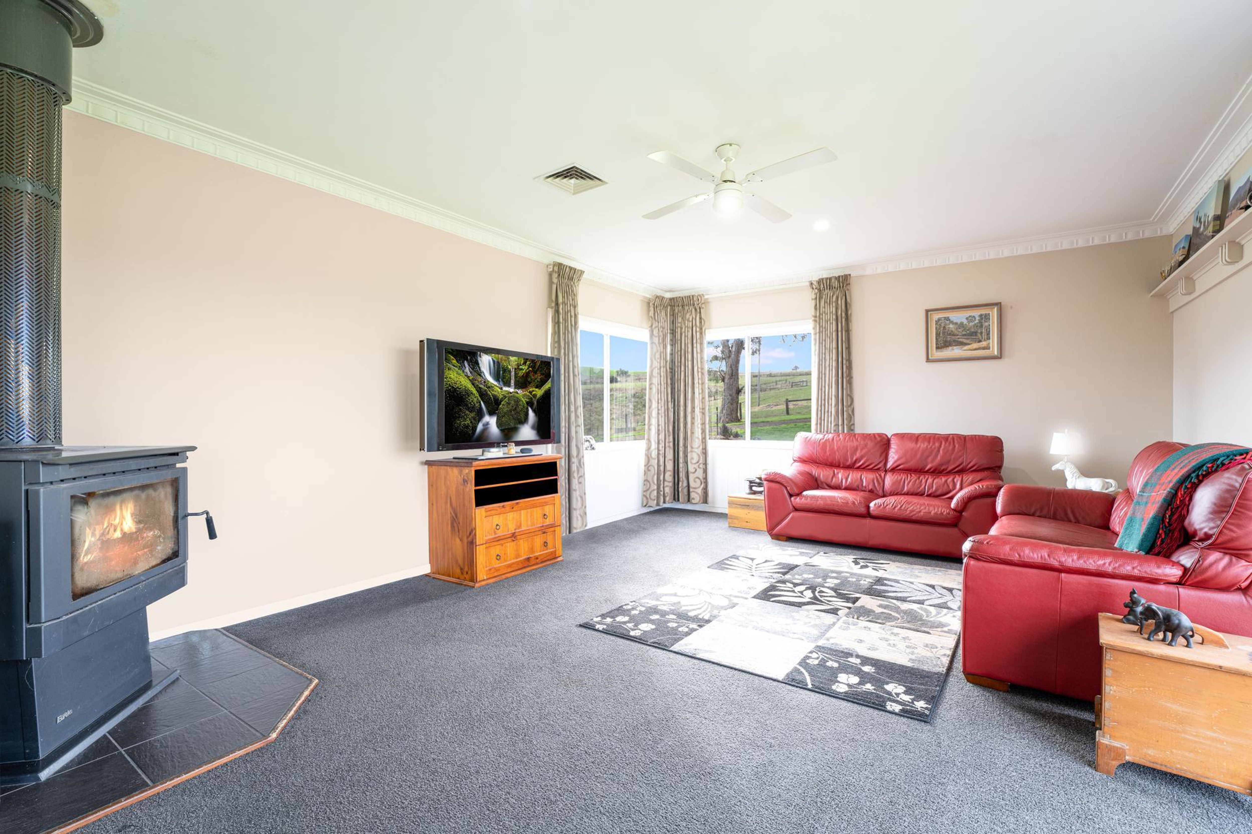 - Polished timber floors, spacious kitchen/lounge & meals area with wood heater (ducted throughout), bathroom & separate toilet