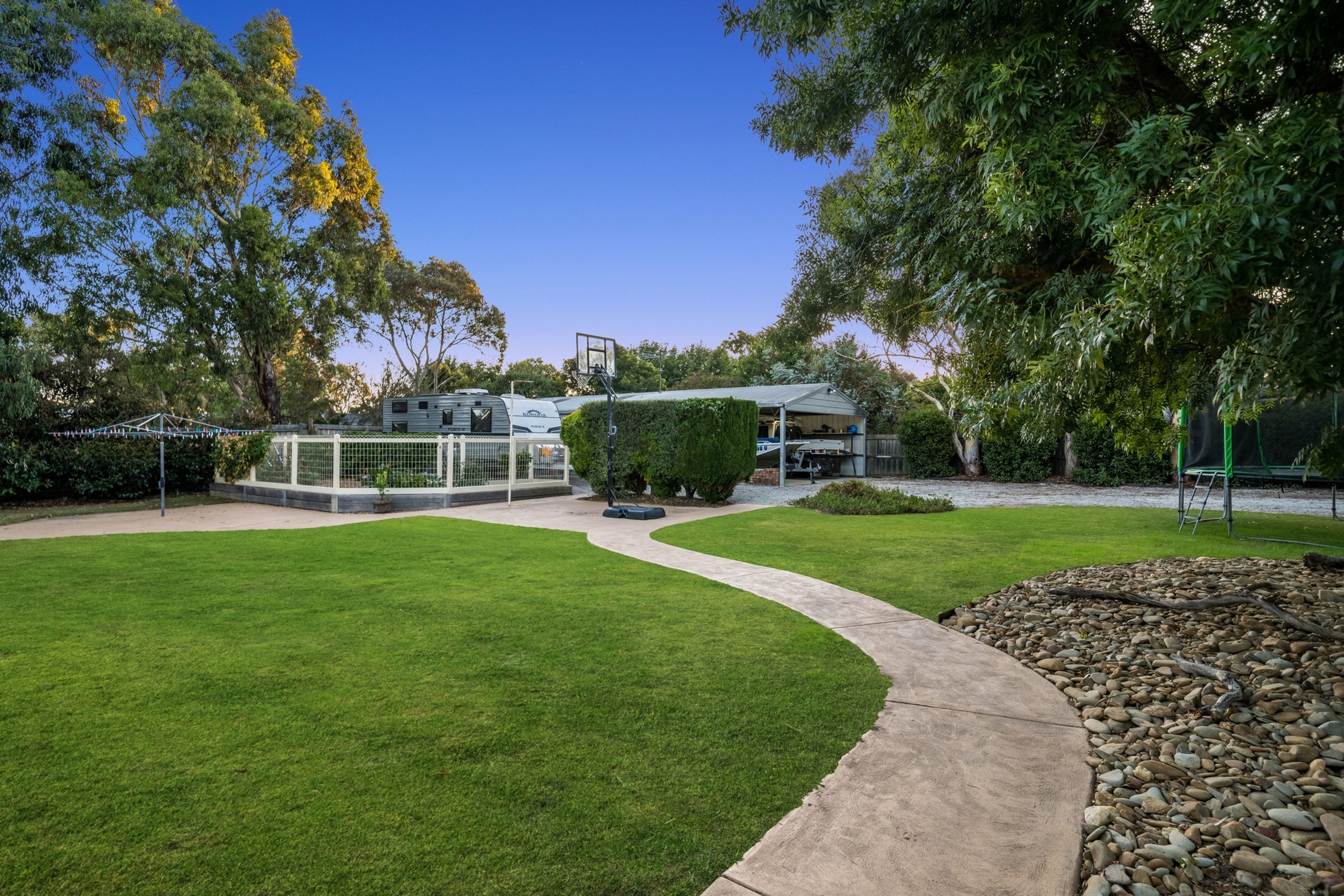 A large double lock-up automatic garage services the home (with direct secure entry to the house) and at the rear of the property a 2 car carport, caravan parking space and adjoining shed offers further options for tradies or caravan/camping/fishing gear storage.