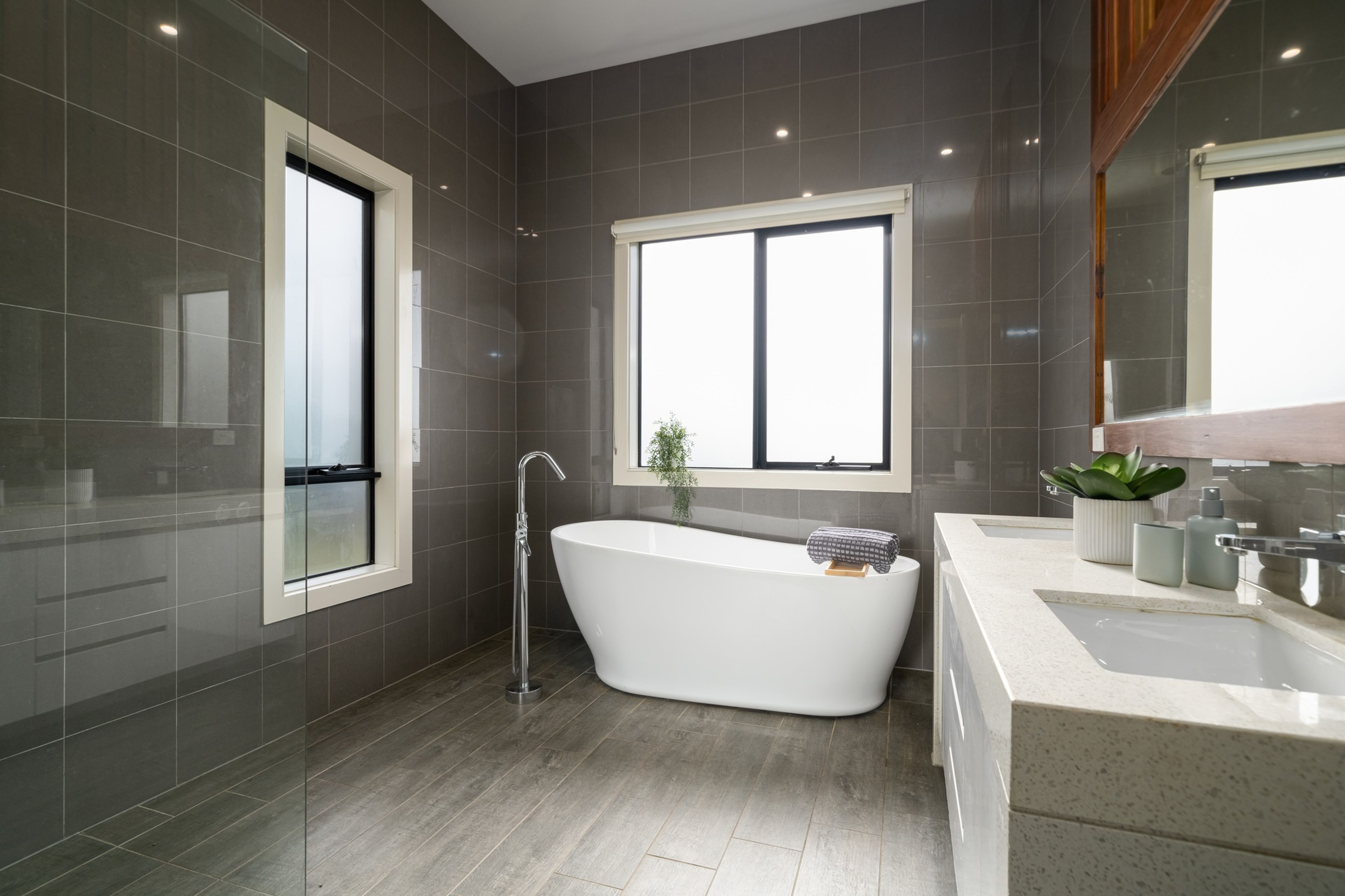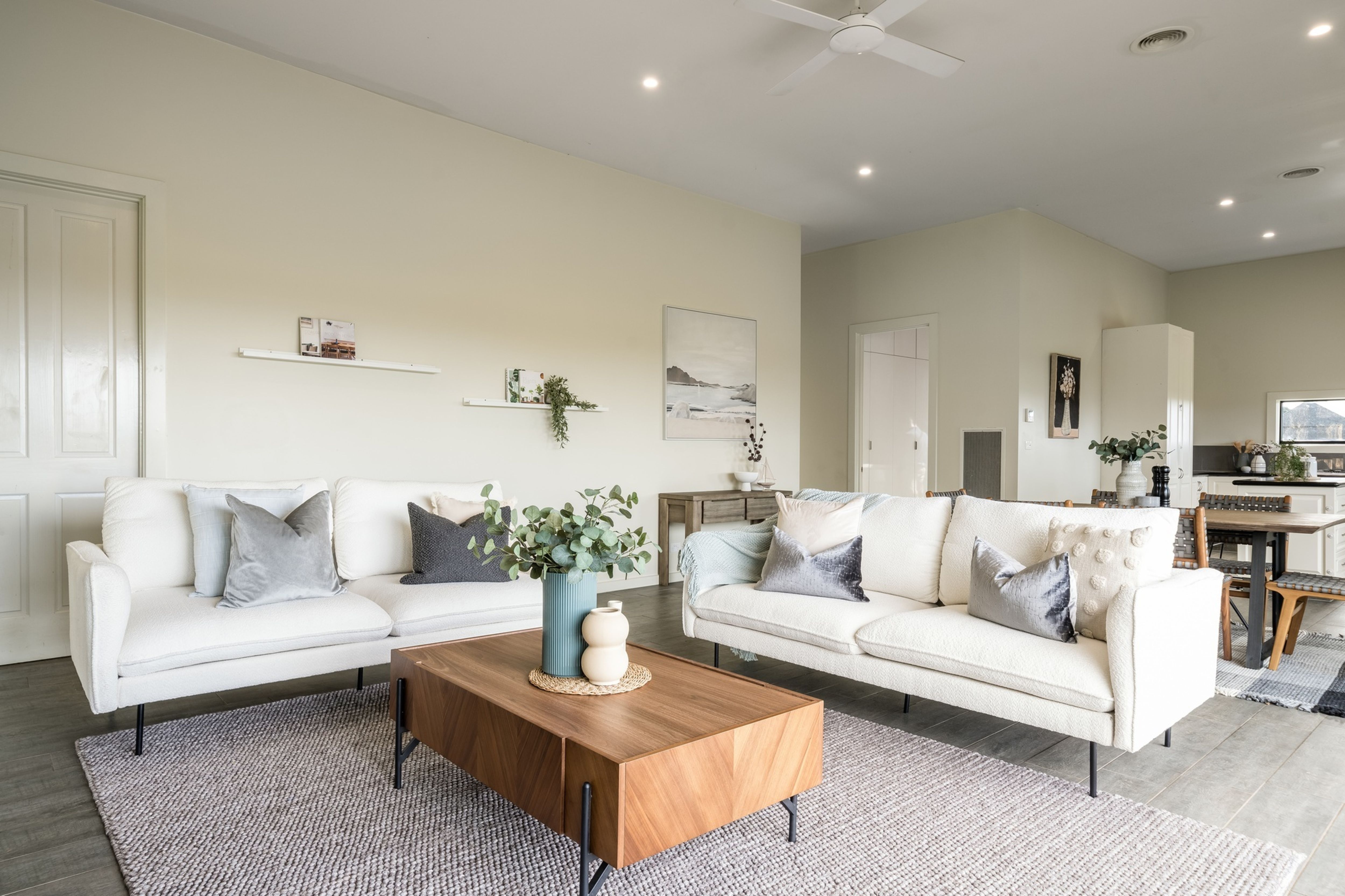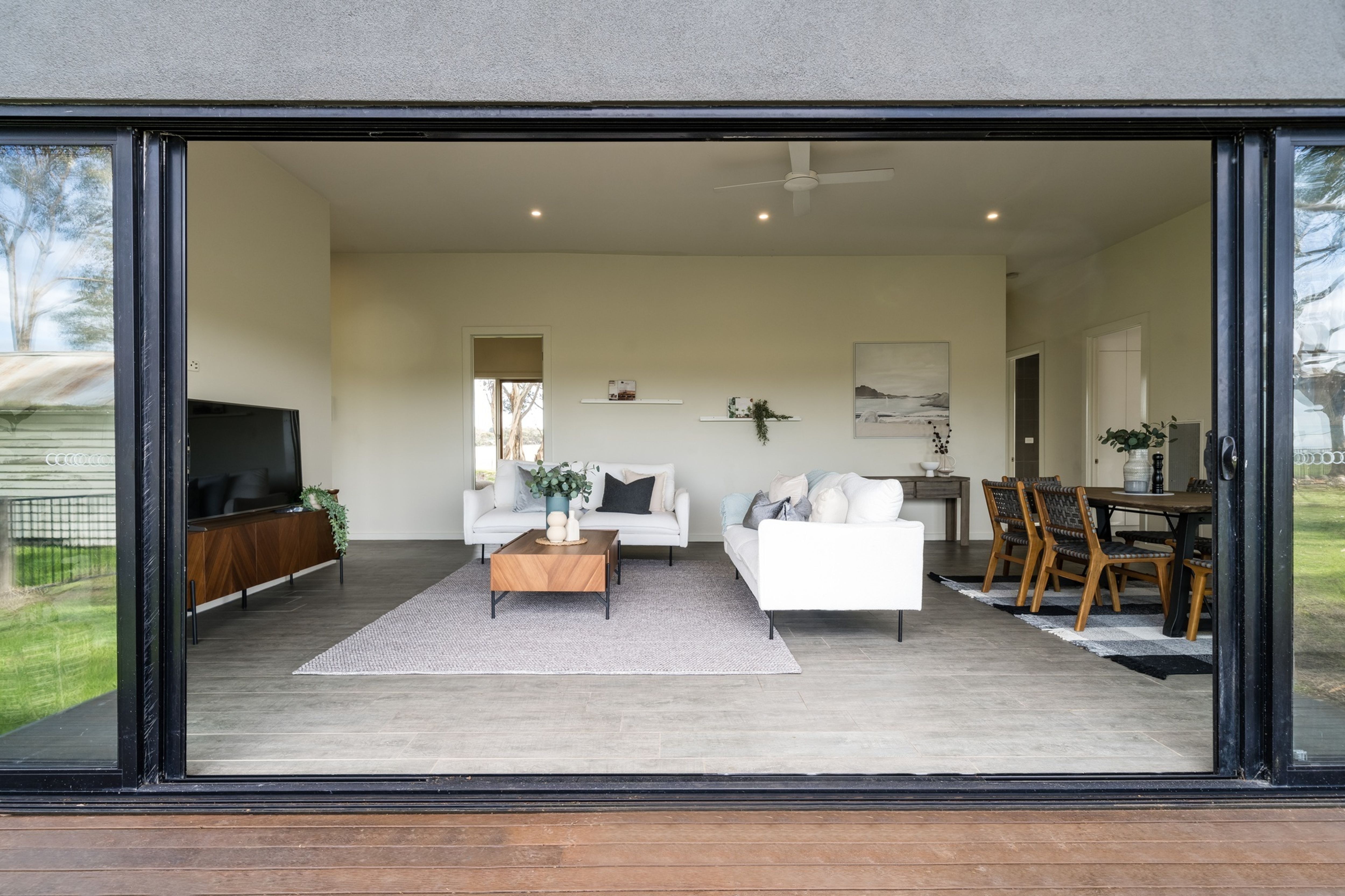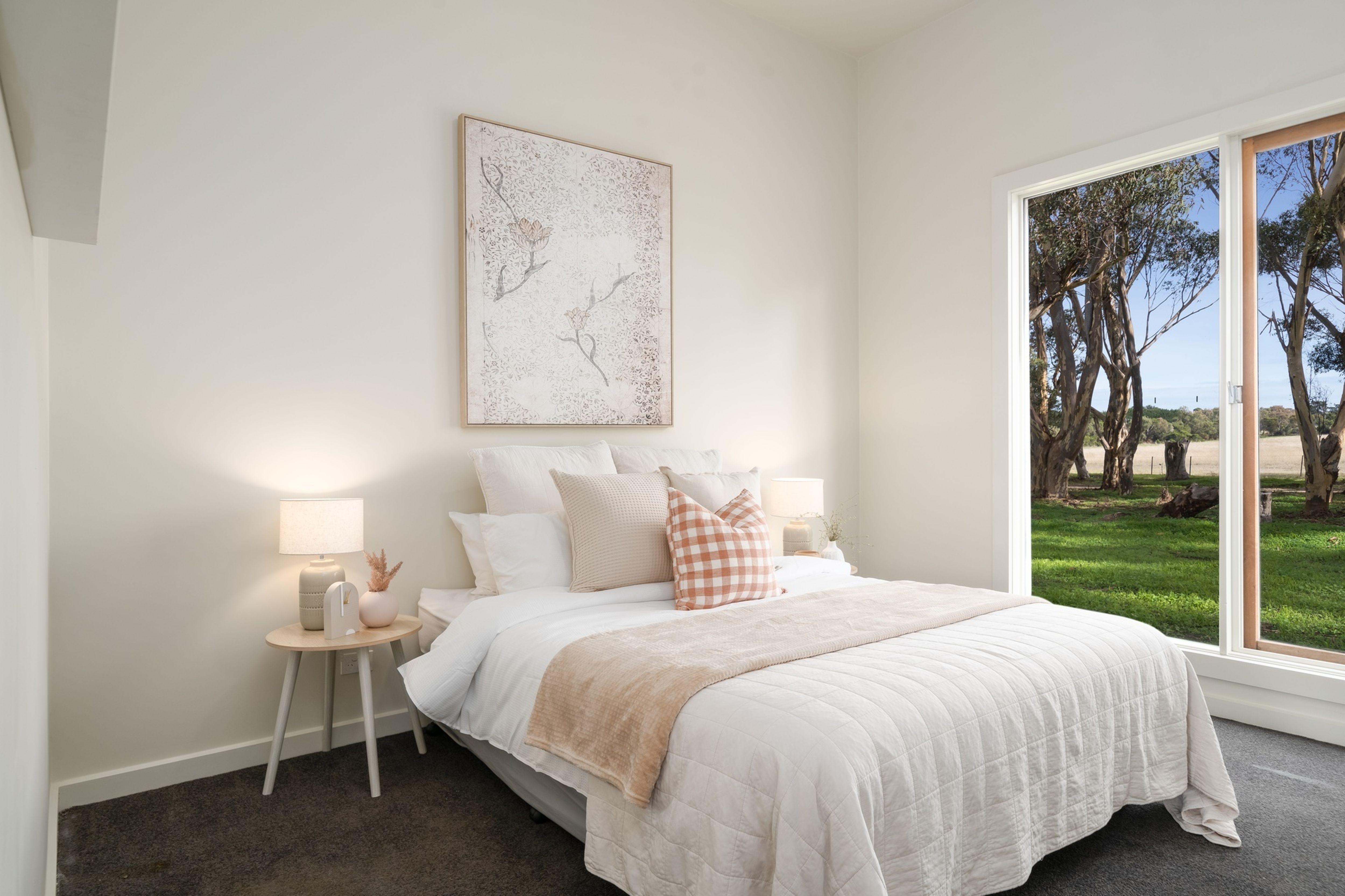 Comprising of three spacious bedrooms, open plan kitchen, dining and living (sliding door opens onto outside deck), family bathroom with freestanding bath and double basins, mudroom/laundry with floor to ceiling cupboards, powder room and double carport with storage room.