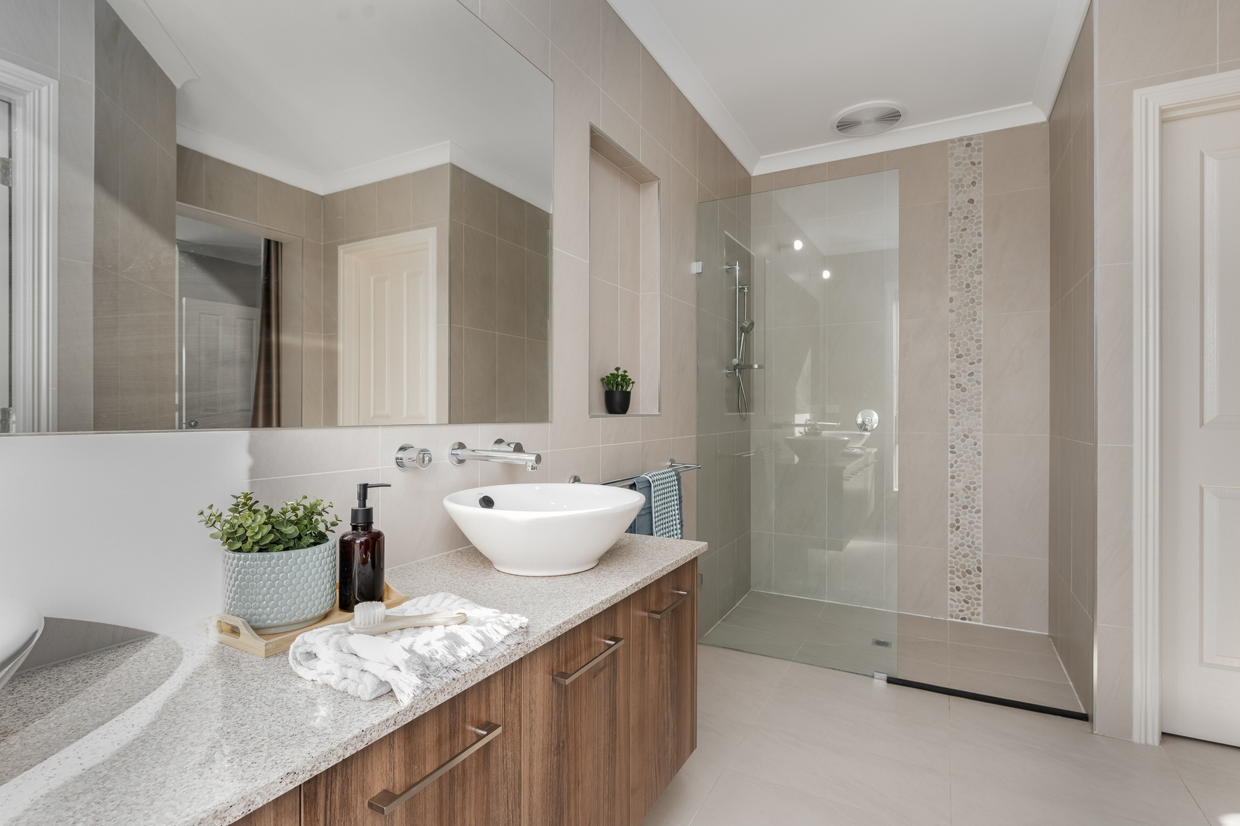 The main residence offers 4 large bedrooms plus a separate study/5th bedroom which makes working from home a breeze. The large master suite enjoys split system heating & cooling, a large walk-in robe and ensuite with double sink vanity and separate toilet. The additional 3 bedrooms are all of generous proportions with built-in robes and have easy access to a modern bathroom with a bathtub, separate shower and a well-considered separate toilet with hand basin.