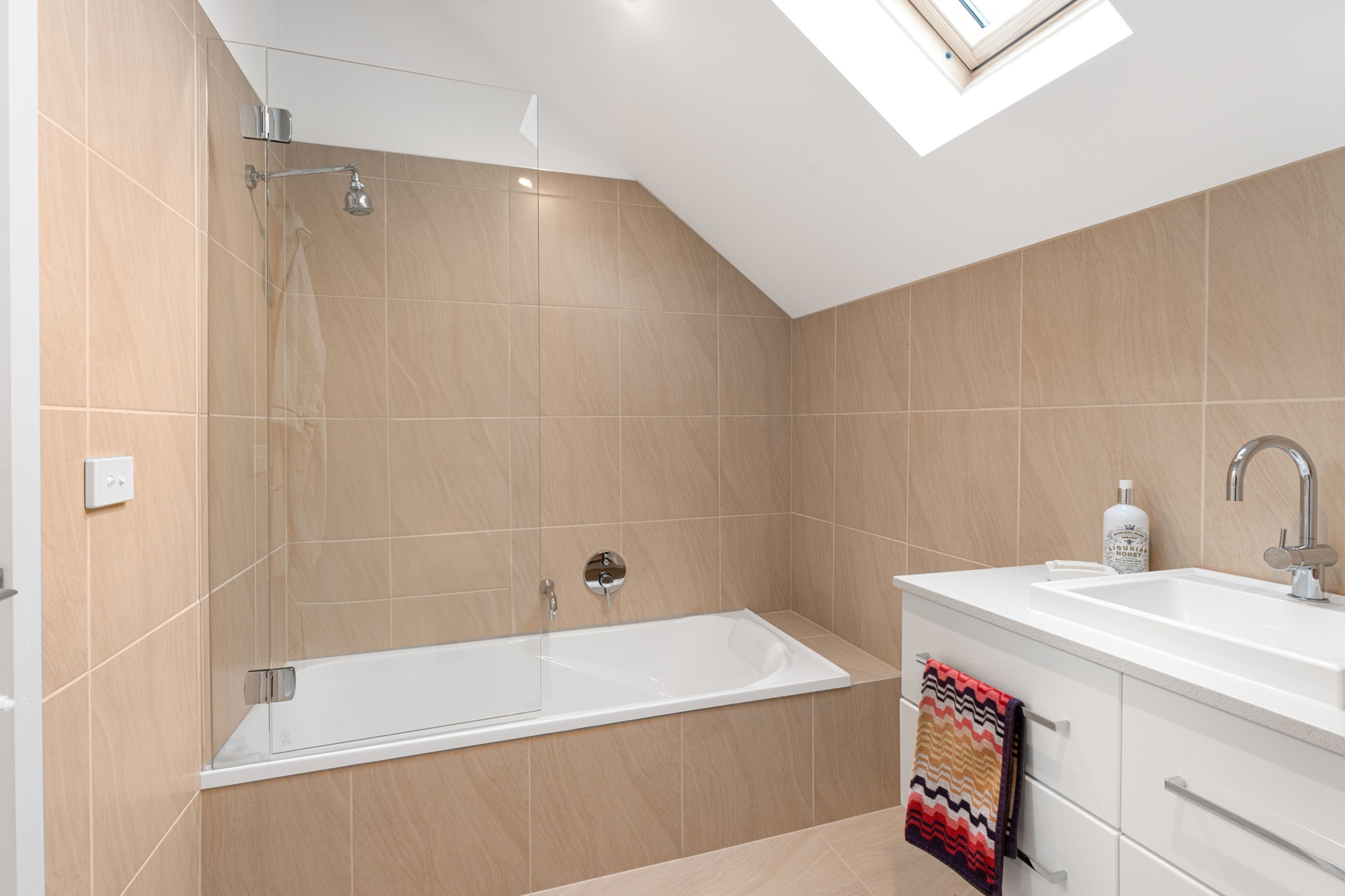 This stunning residence has been thoughtfully designed with the main living areas facing north, allowing an abundance of natural light to flood the home throughout the day. The open plan kitchen, dining, and living zone create a grand and welcoming space that seamlessly extends onto the north-facing entertaining areas.