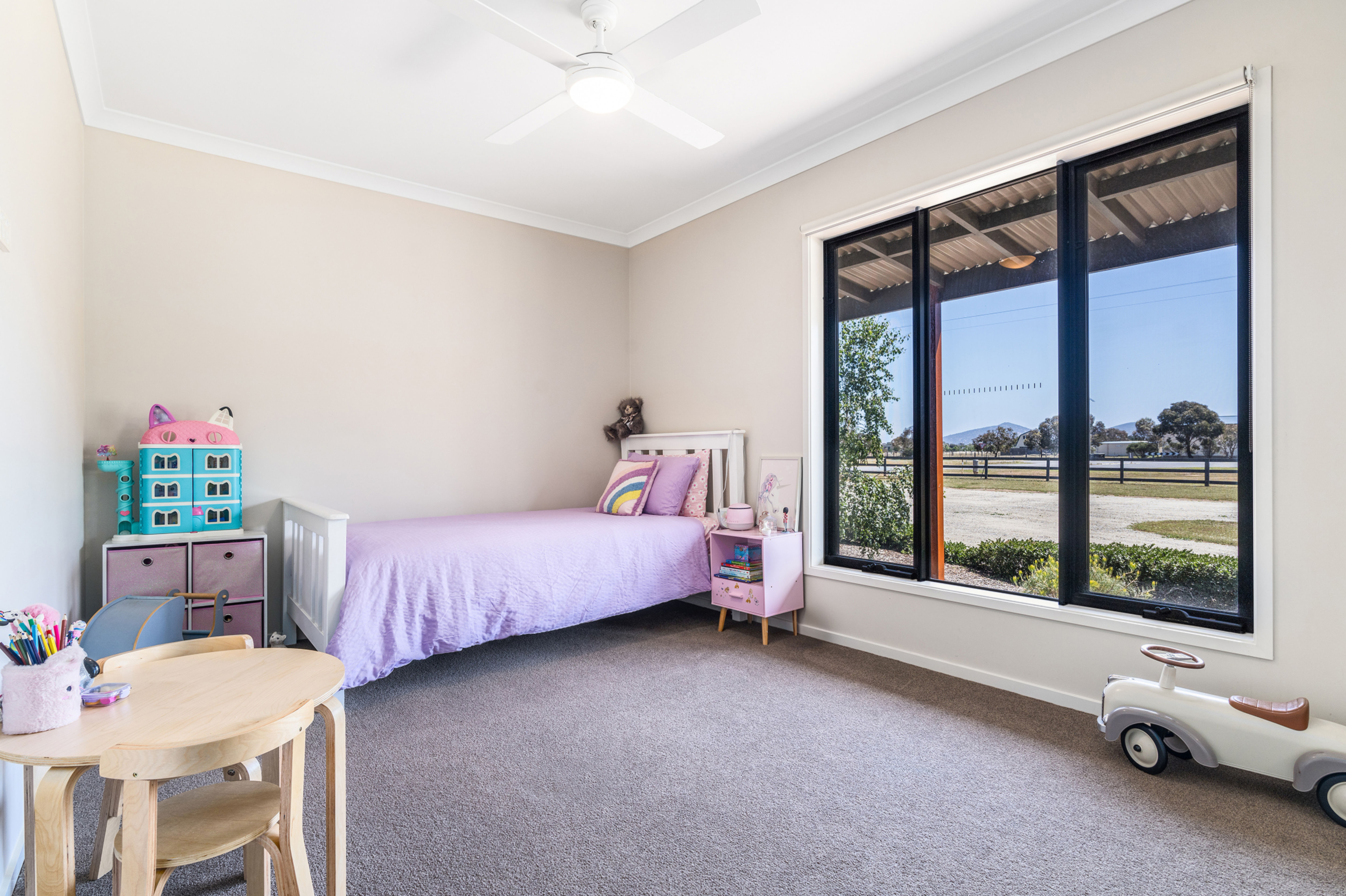 The home was built by Dennis Family in 2013 and offers 4 bedrooms (master with WIR & ensuite, all other bedrooms with BIR's and ceiling fans), a separate study/home office/5th bedroom and 2 spacious bathrooms (incl. a separate powder room with vanity), perfectly suiting a large family seeking modern living in a country setting.