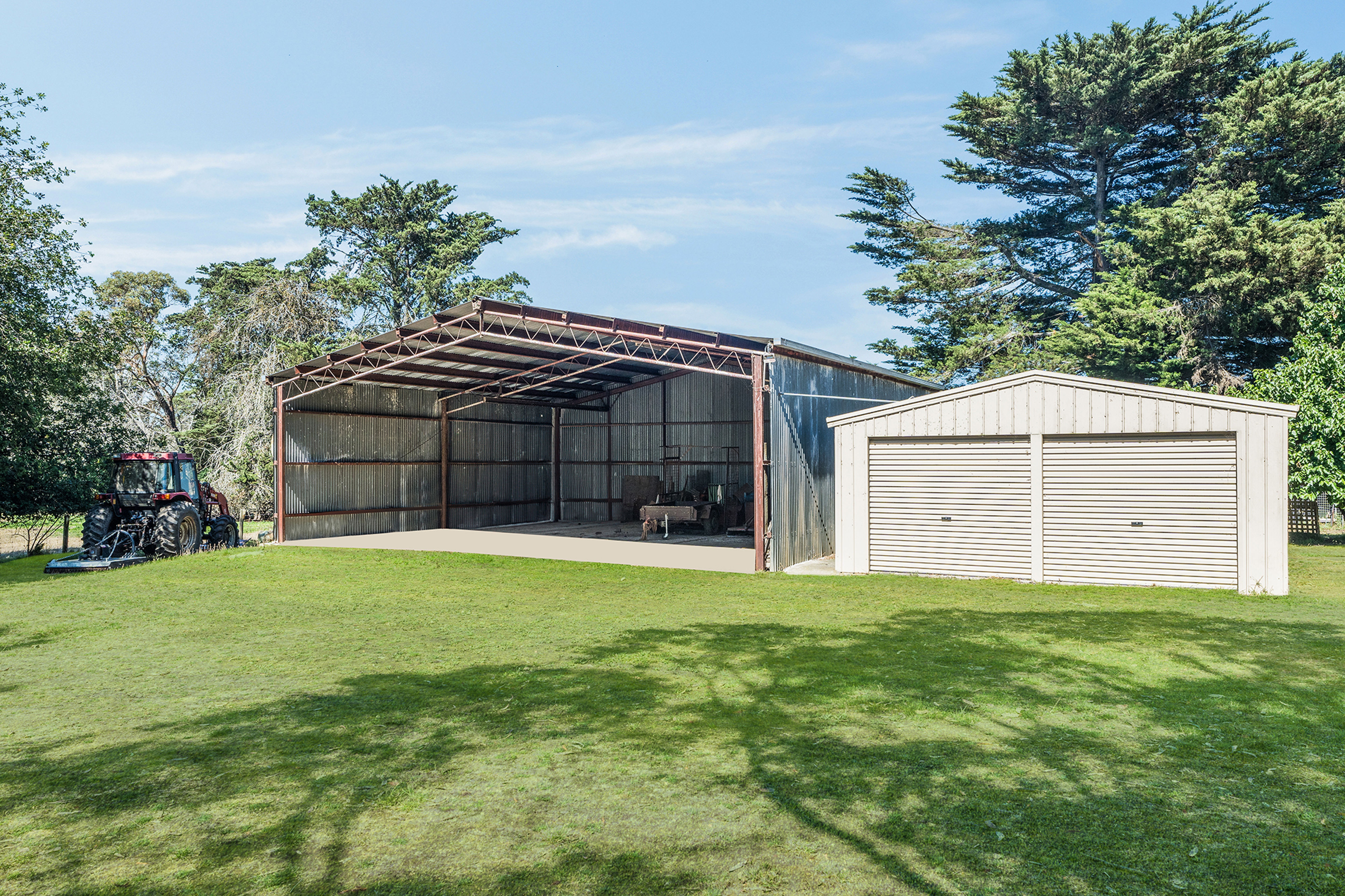 - Steel frame machinery shed