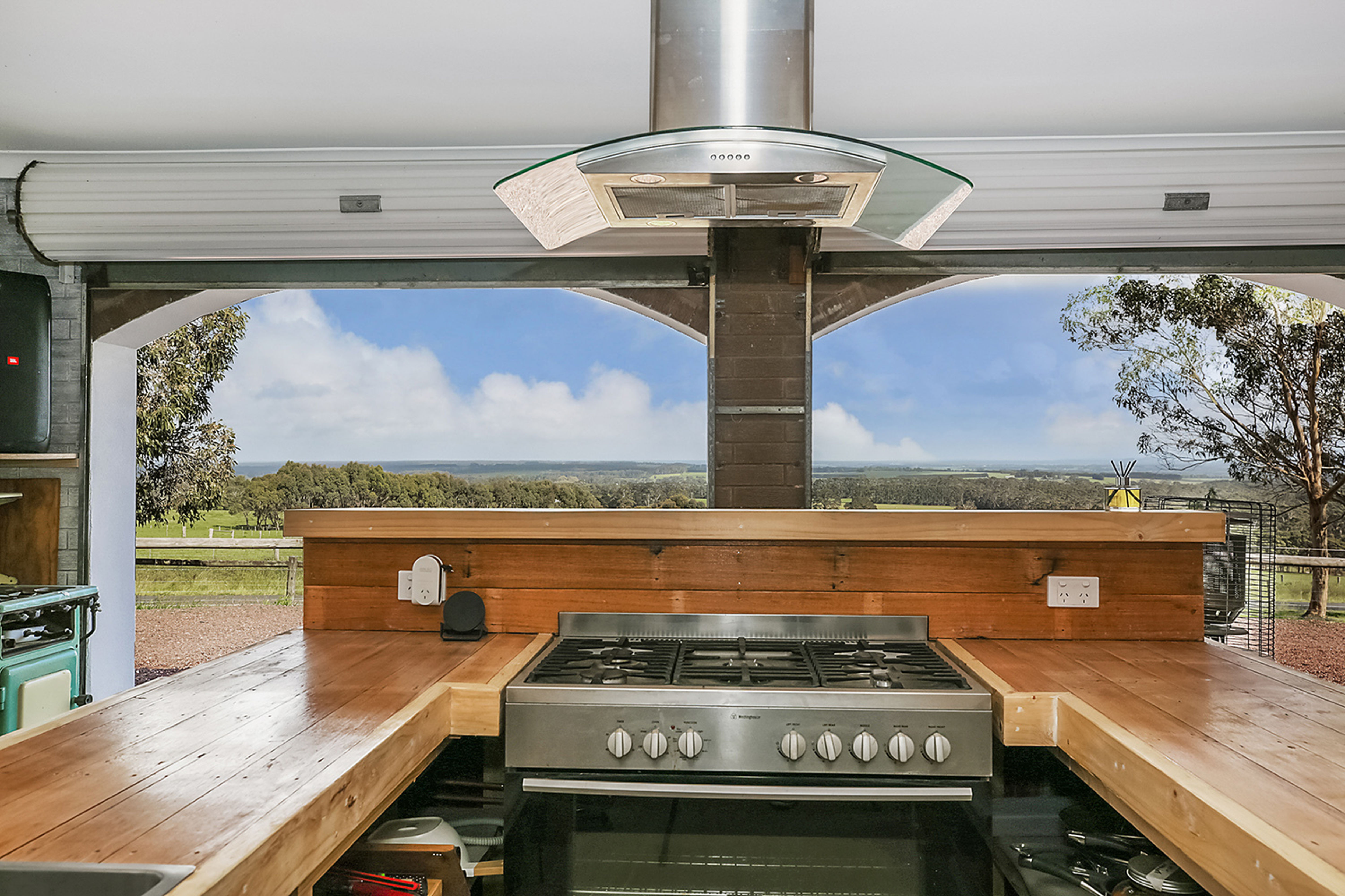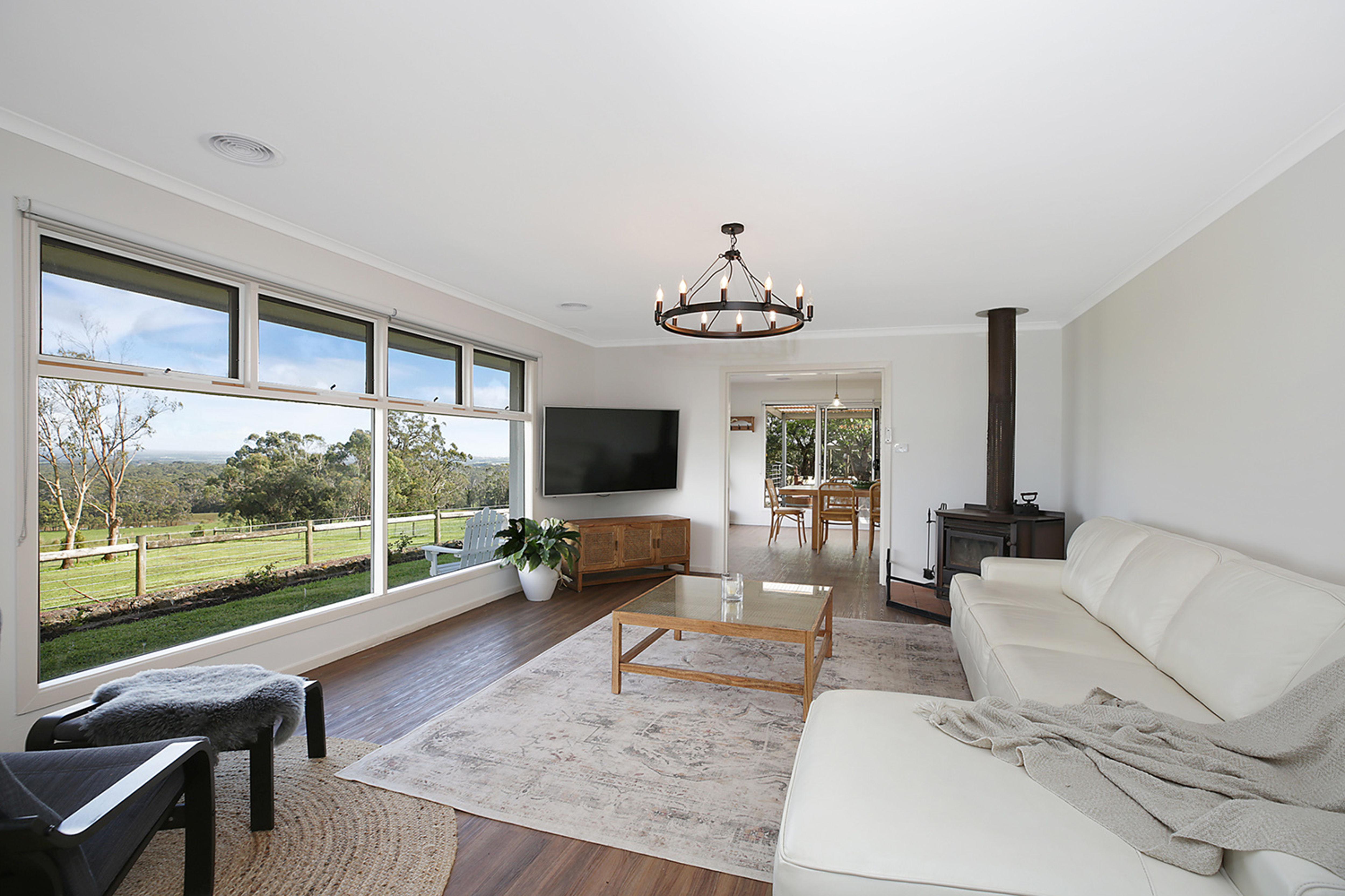 The light-filled separate lounge provides stunning views over the Otways and a wood fire to enjoy on those cosy winter nights.