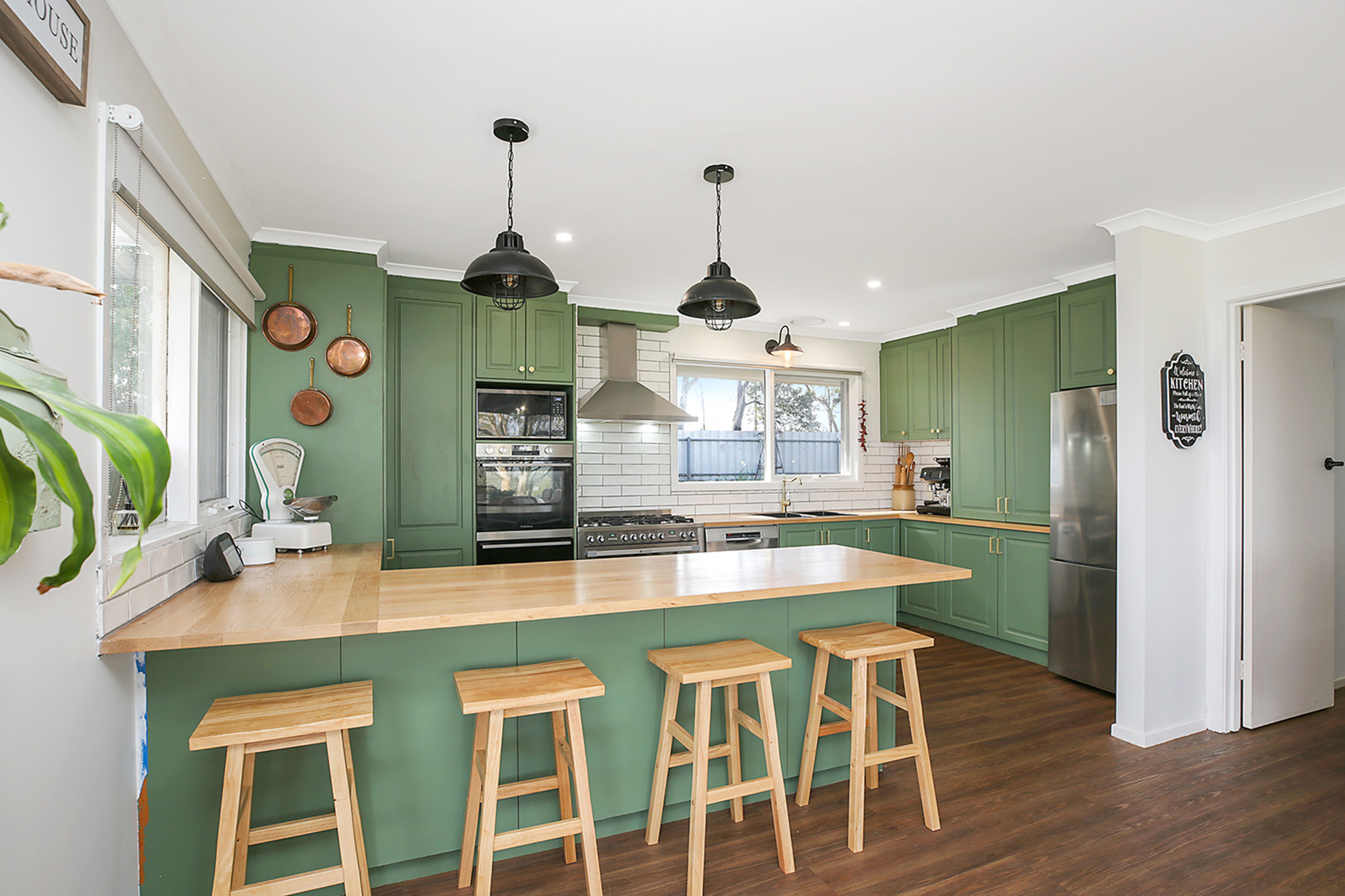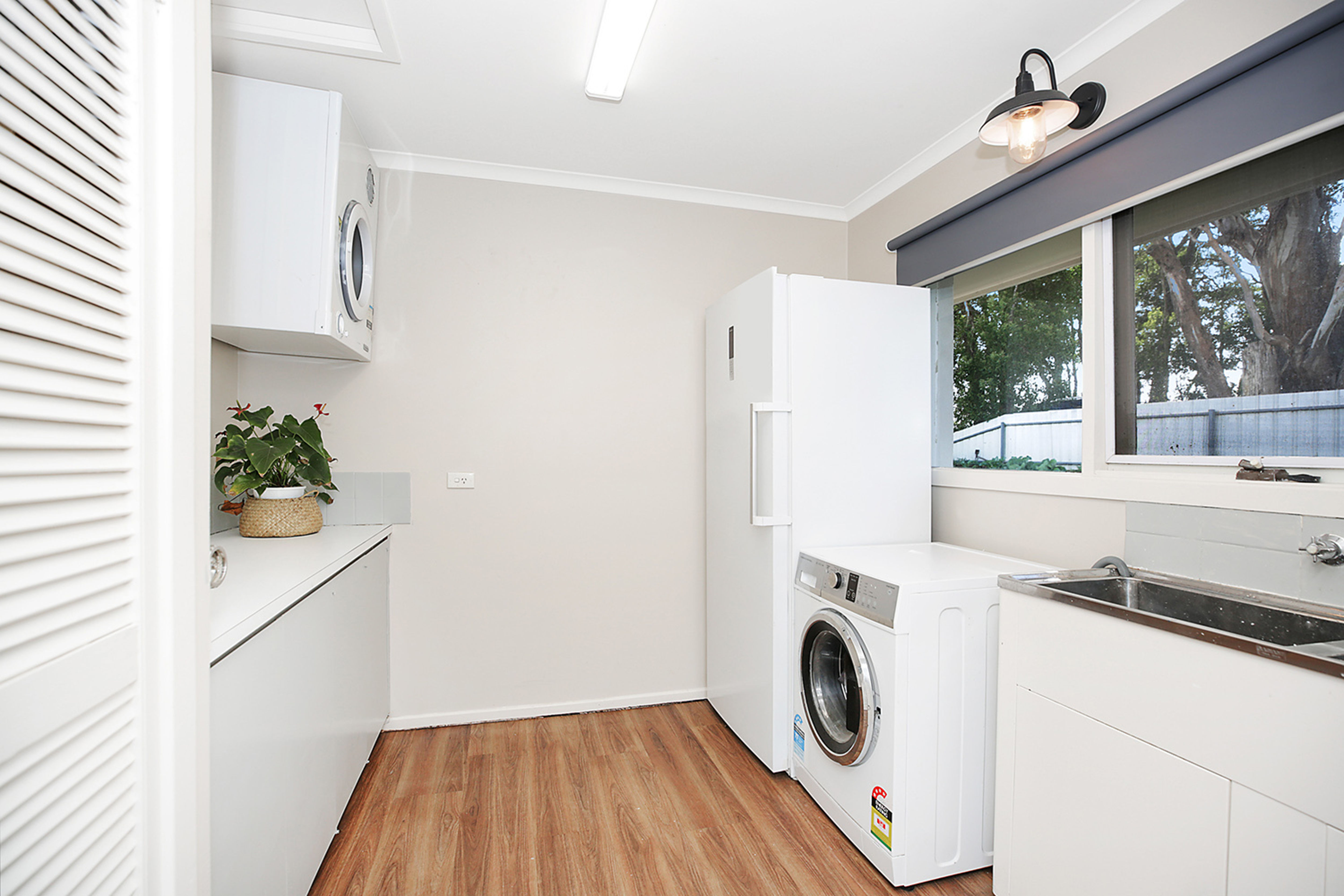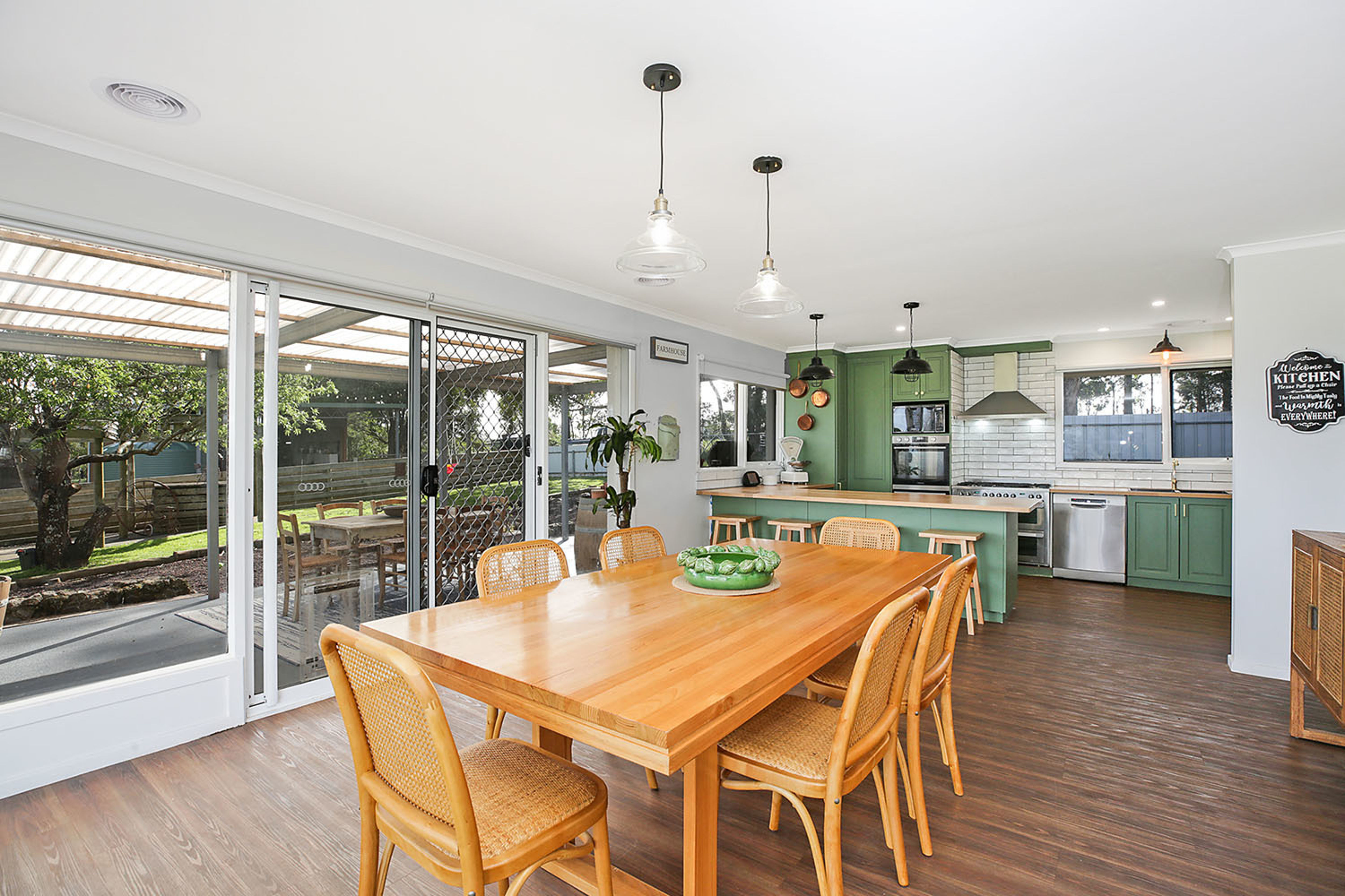 Adjoining the lounge is the kitchen and dining area, perfect for entertaining, which leads to an outdoor patio. The kitchen features a 900mm Allenzi oven, a separate wall oven, a stainless steel dishwasher and an abundance of storage.