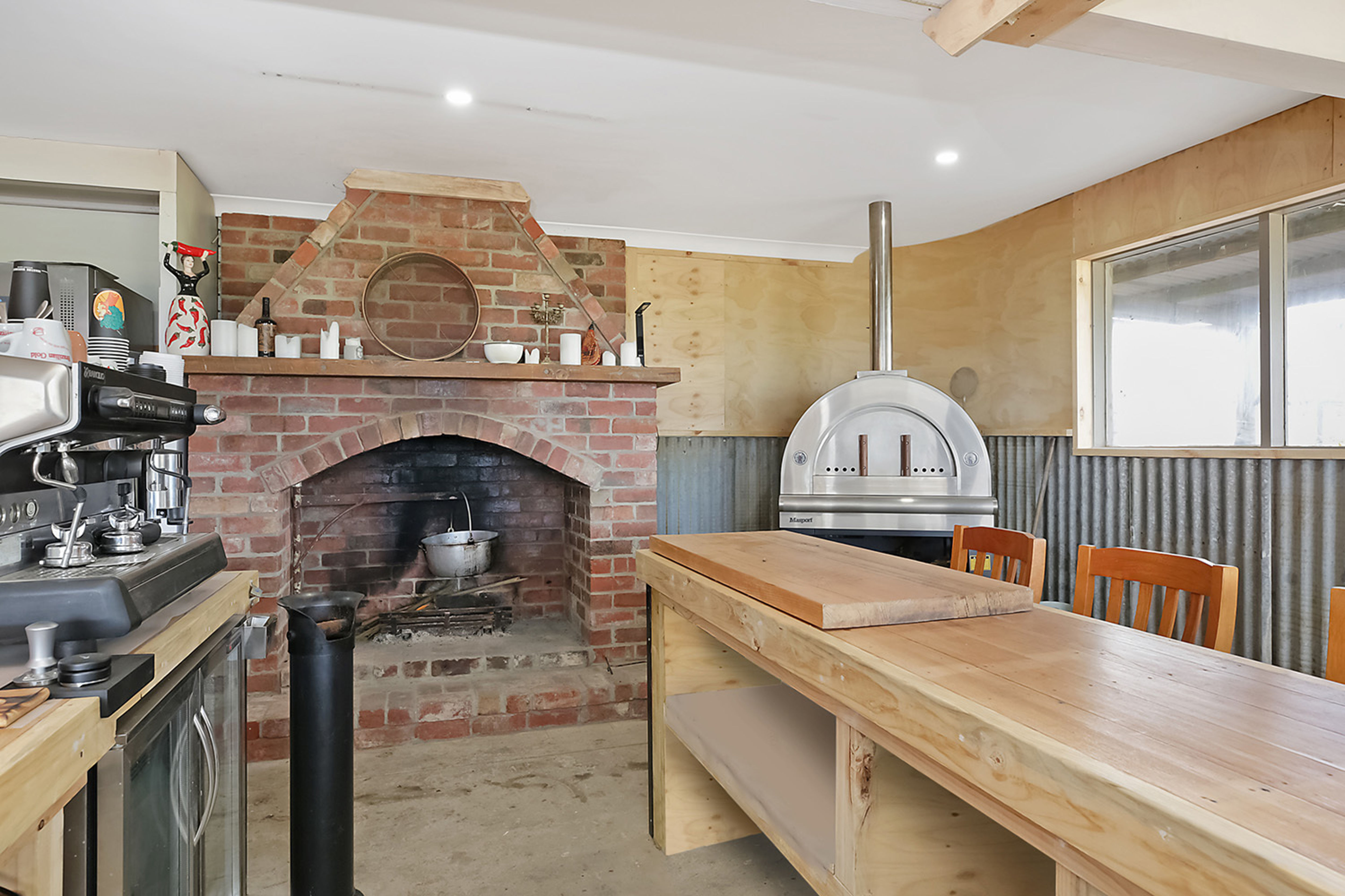 The double garage has been converted to a fabulous entertaining room complete with outdoor kitchen including oven, open fire and huge built-in dining table with plenty of storage and a sink. This is the ultimate outdoor undercover entertaining space!