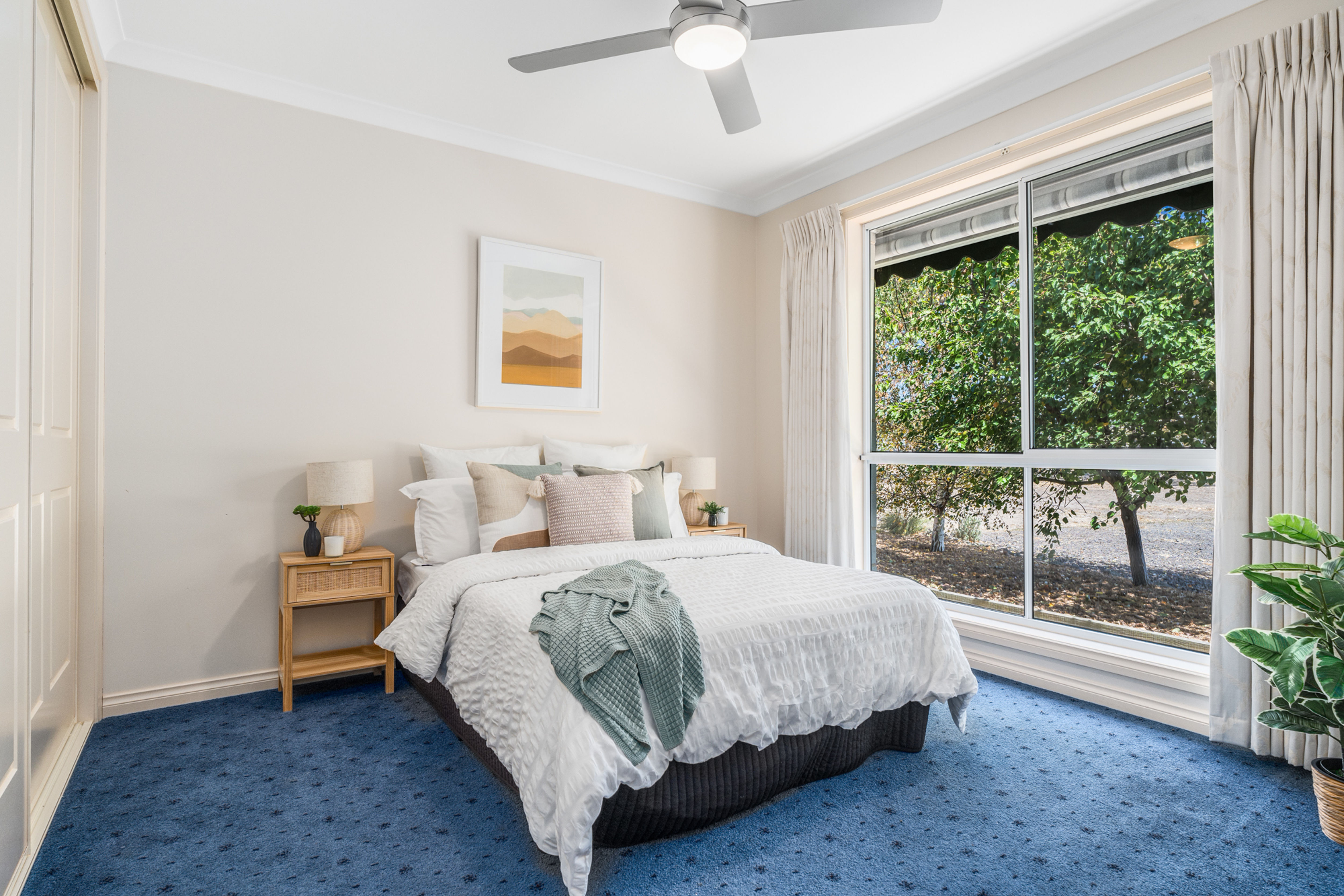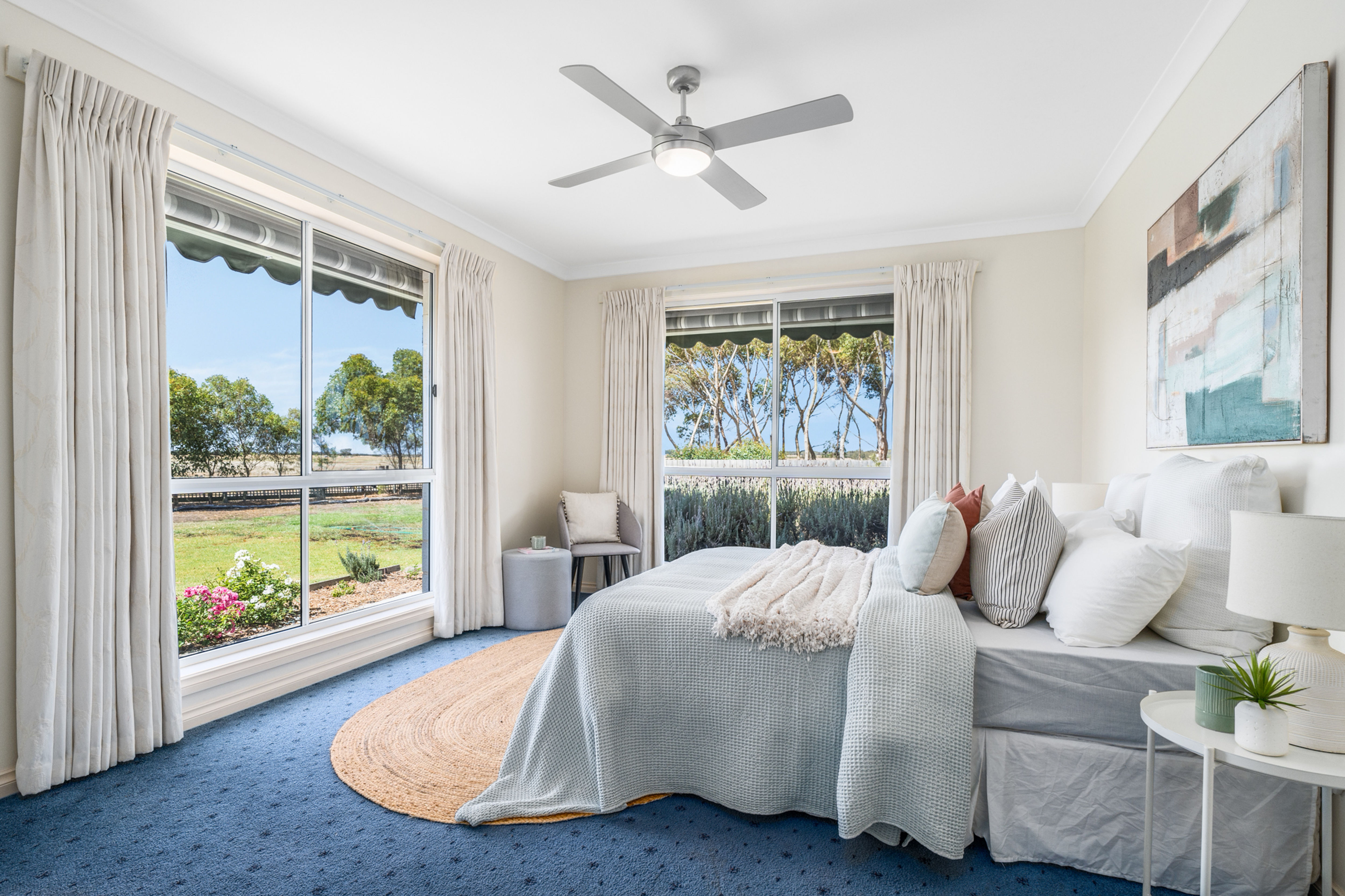 Nestled amongst a cluster of established trees, the picture-perfect family homestead enjoys extensive easterly views over the paddocks and established gardens. Designed to be low-maintenance and family friendly, the home enjoys the provision of 4 bedrooms (master featuring a walk-in-robe and ensuite, two bedrooms with BIR's and ceiling fans, 4th bedroom (or home office) plus a large family bathroom with separate toilet along the hallway.