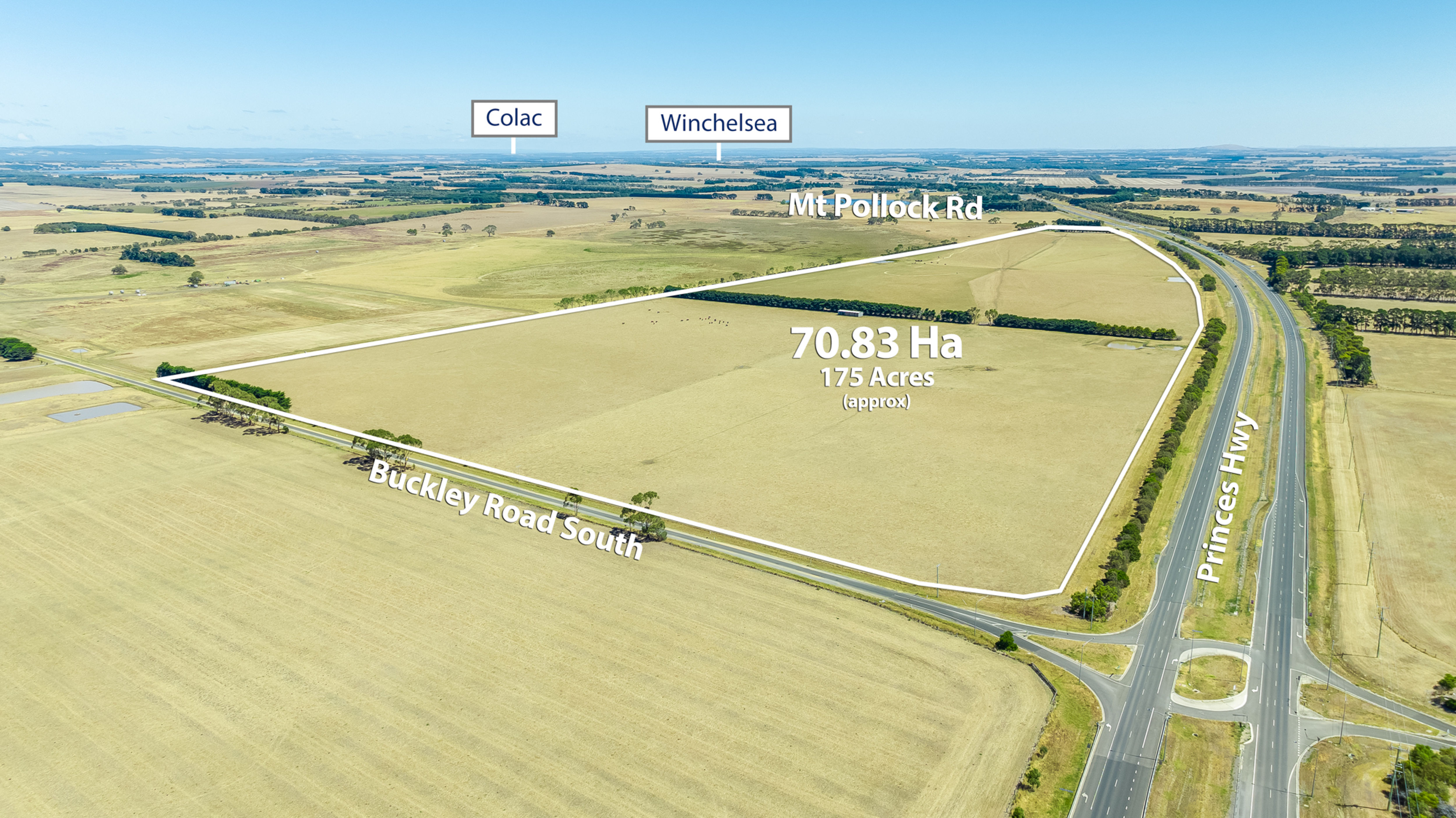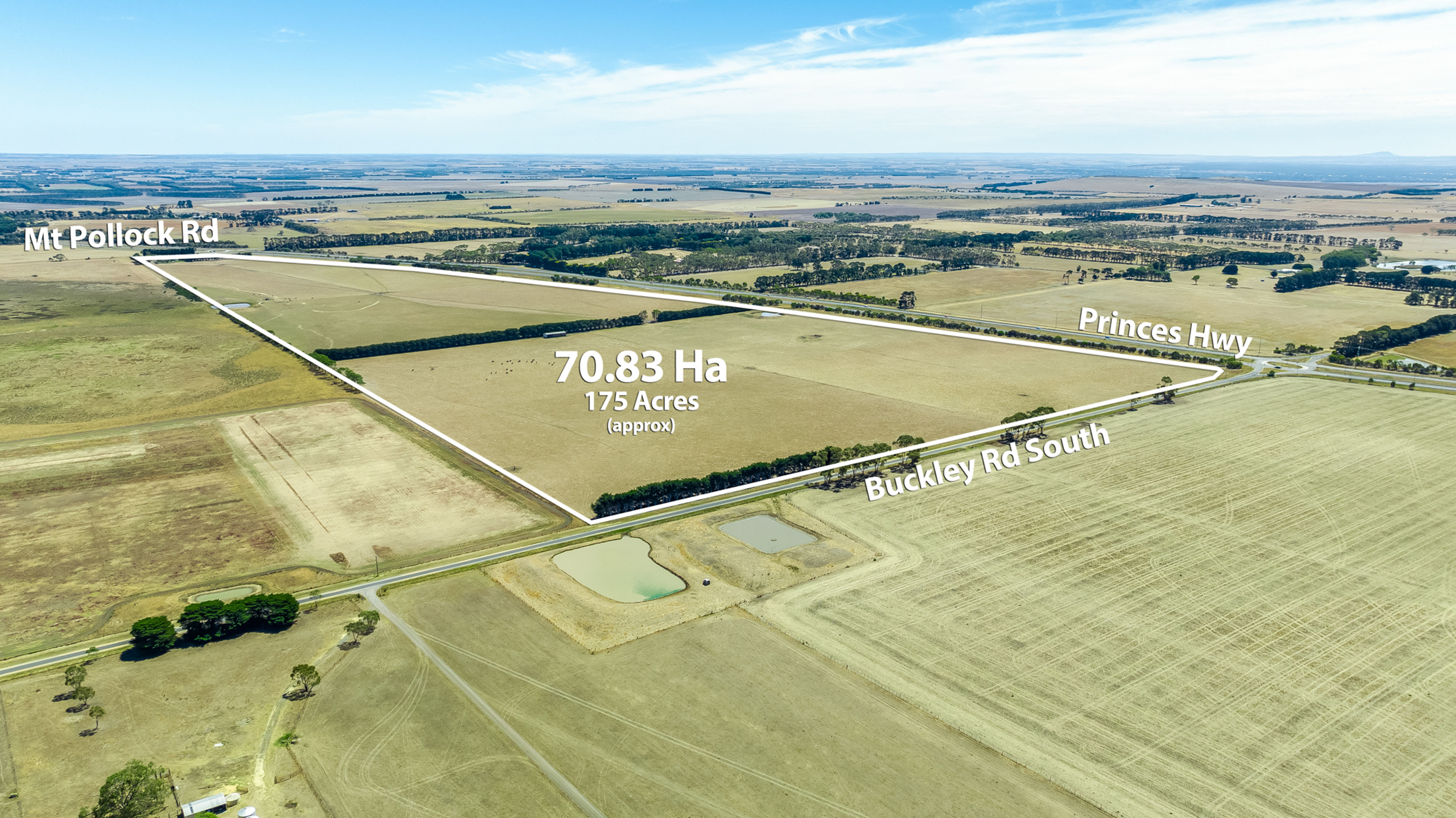 With main access off Mt Pollock Road and stretching all the way to Buckley Road South, the property comprises of approximately 175 acres (across 2 titles) featuring 3 dams, established shelter belts and improved pastures, perfect for cattle grazing, hay production and other farming pursuits.