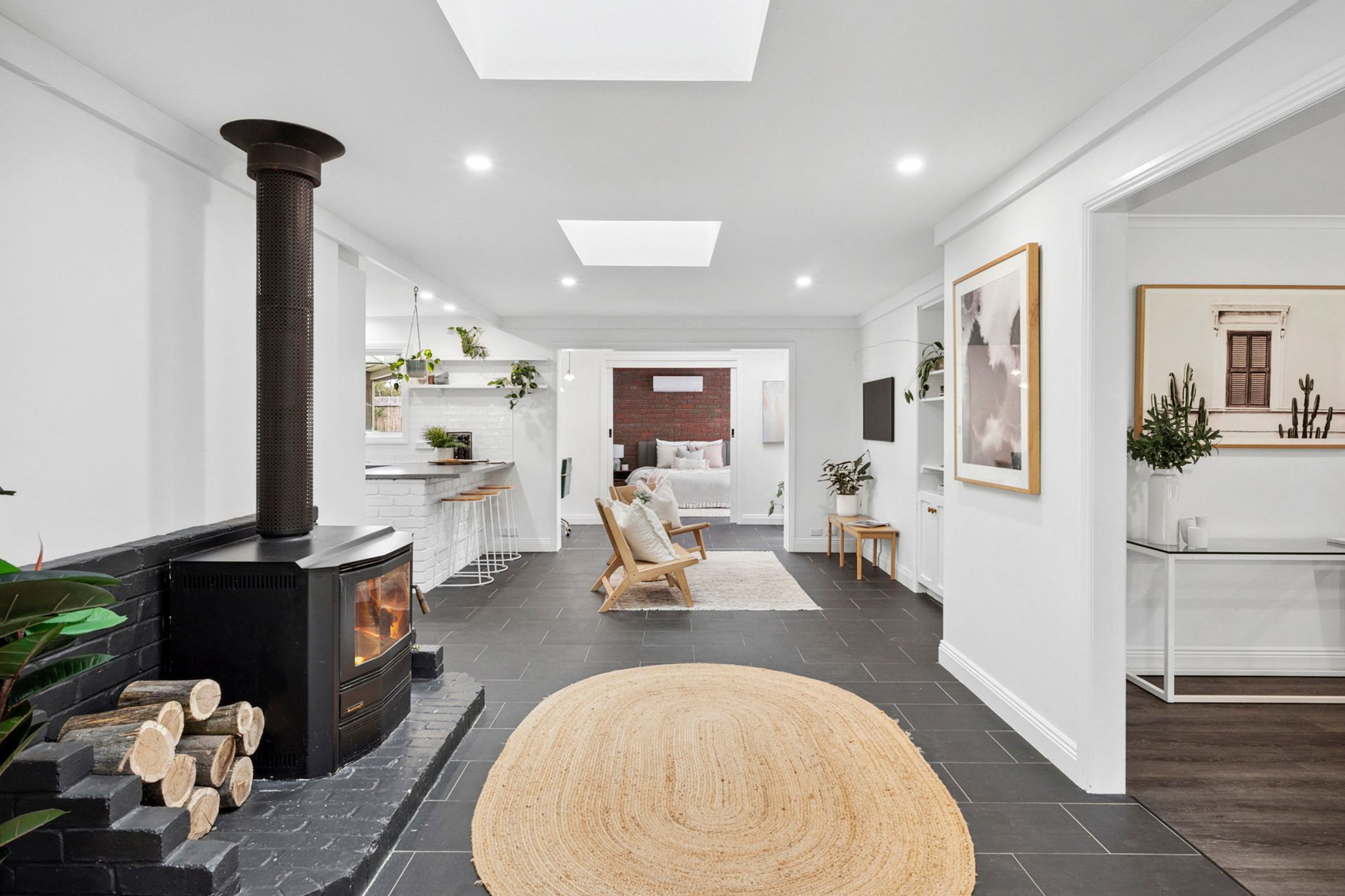 Tucked away behind a cluster of established trees and an auto sliding gate for extra privacy, the renovated family residence enjoys solitude and serenity whilst being only a short stroll into town. Offering 4 generous sized bedrooms plus a dedicated study nook, a centrally located family bathroom with separate toilet, a spacious laundry/mud room and a large kitchen enjoying great natural light, plenty of bench space & storage plus modern appliances (incl. a Euro electric stove and oven and Omega dishwasher). The hub of the home is an expansive dining & adjoining lounge area which enjoys a large open fire place and lovely views across the established gardens and lawn area.