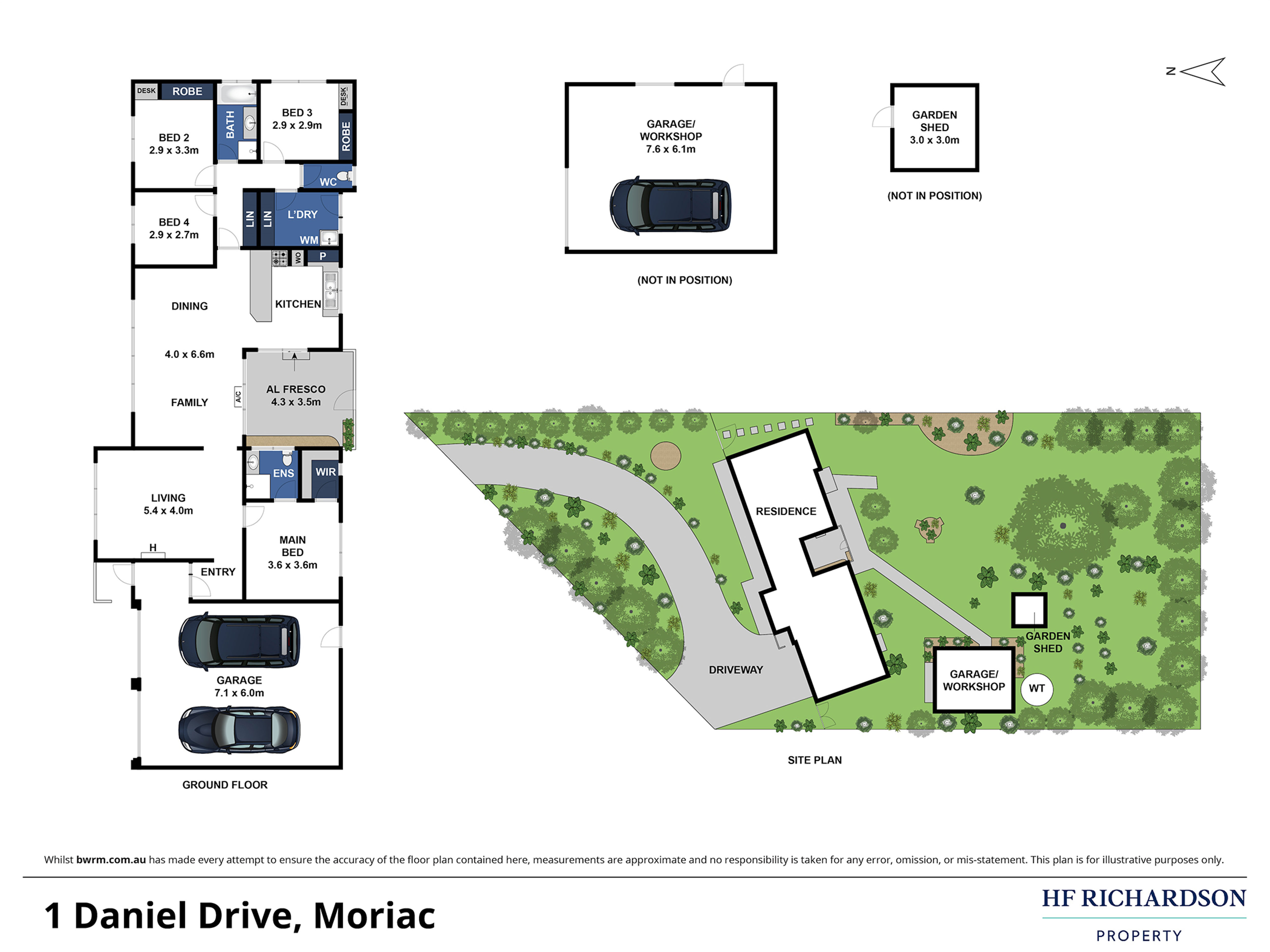 The home enjoys the provision of a two-door lock up garage (one door remote, one door manual), a garden shed and a quality 7.6m x 6.1m (approx) shed/workshop - perfect for a tradie or for home storage.