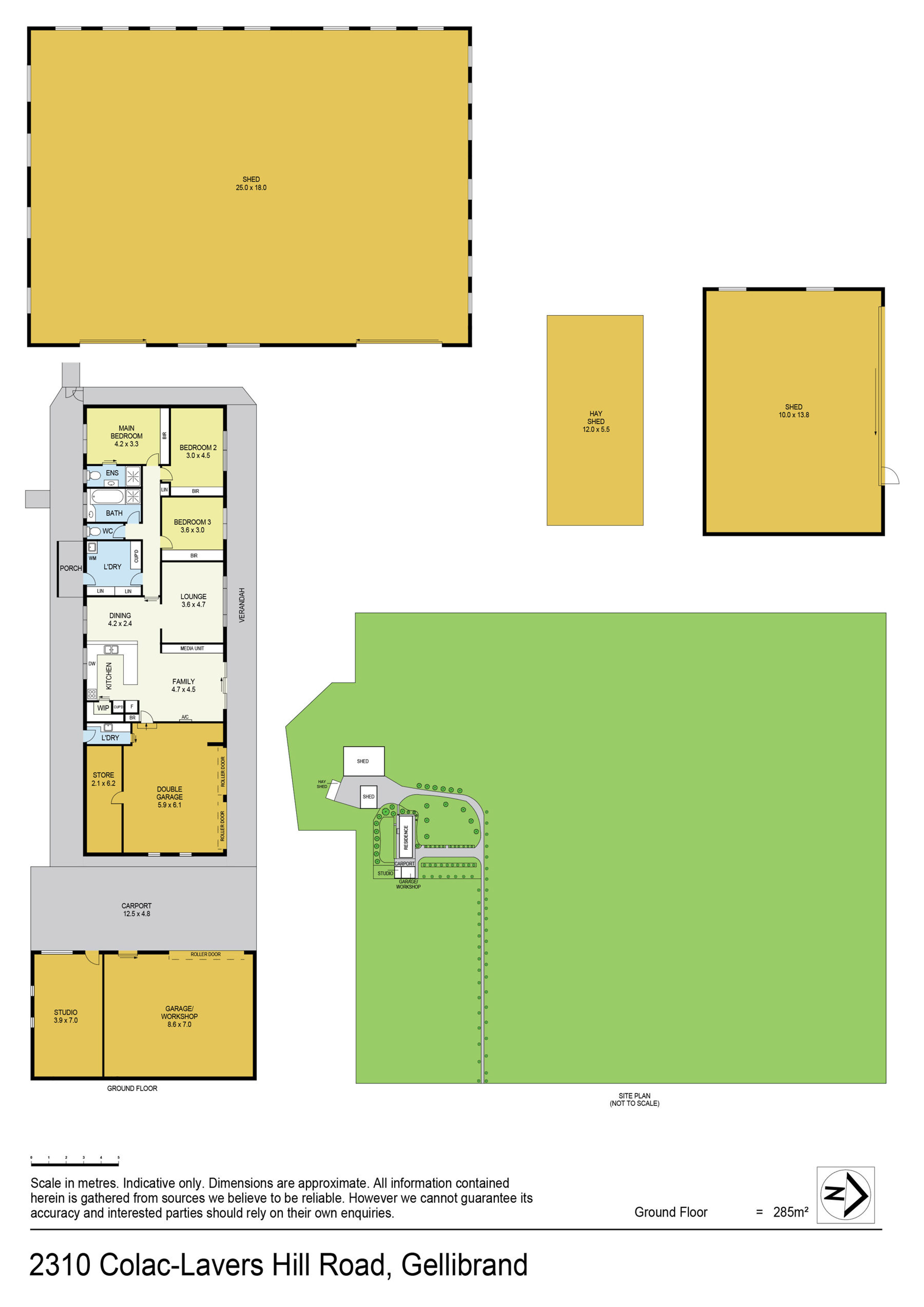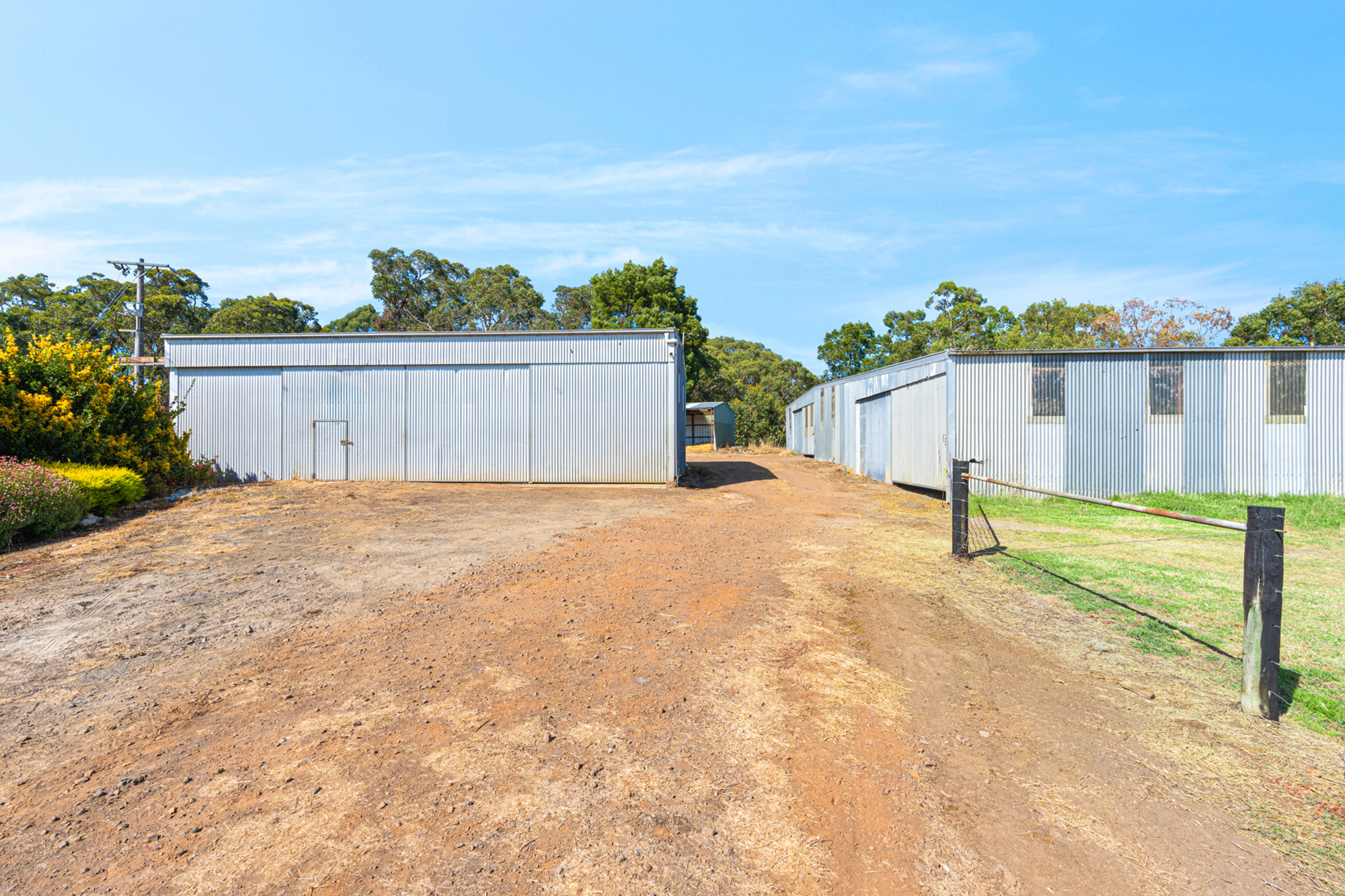 Additional infrastructure includes a large (30m x 18m) lockable machinery/storage shed, an open-front four bay storage shed (6m x 12m) and machinery shed/workshop with power connected (16m x 13m).