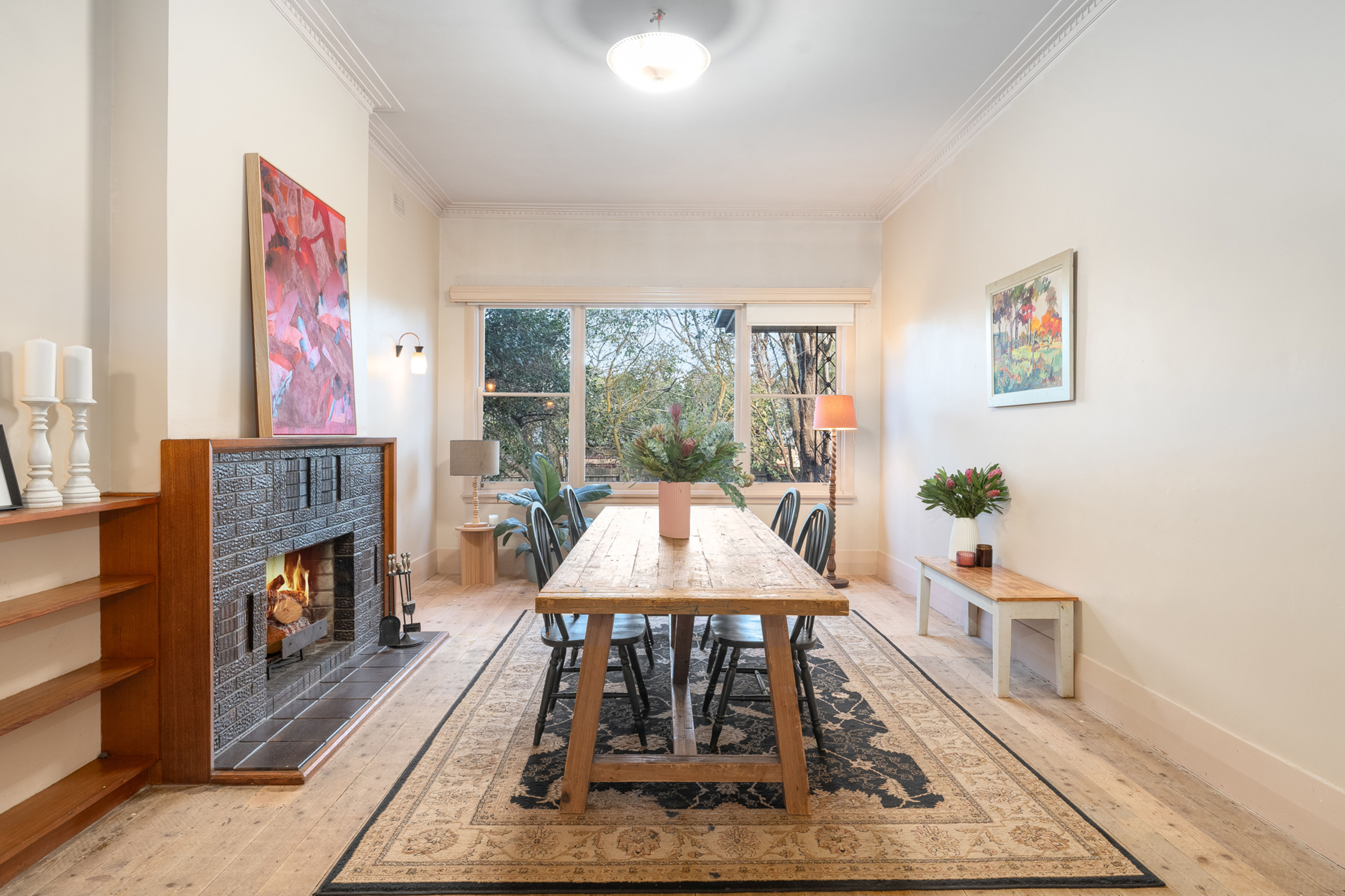 Boasting an abundance of natural light and garden views from all windows, this family residence offers 5 bedrooms, family room with open fire and ornate mantle, large dining room with open fire, spacious kitchen/meals area with IXL wood stove, Bosch electric freestanding oven/hotplates, farmhouse sink, dishwasher, split system heating & cooling, central family bathroom, 5kw solar system, double carport and woodsheds.