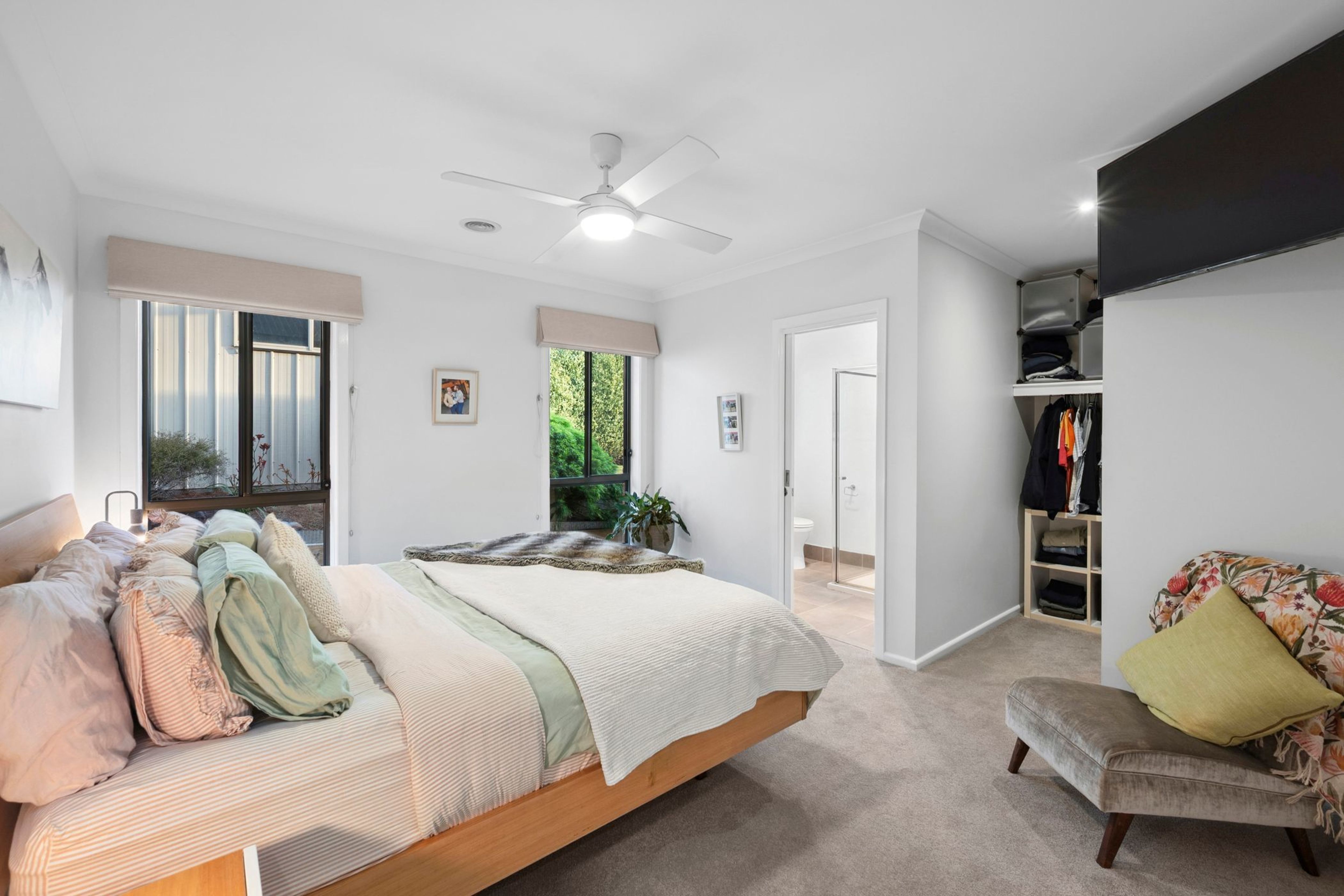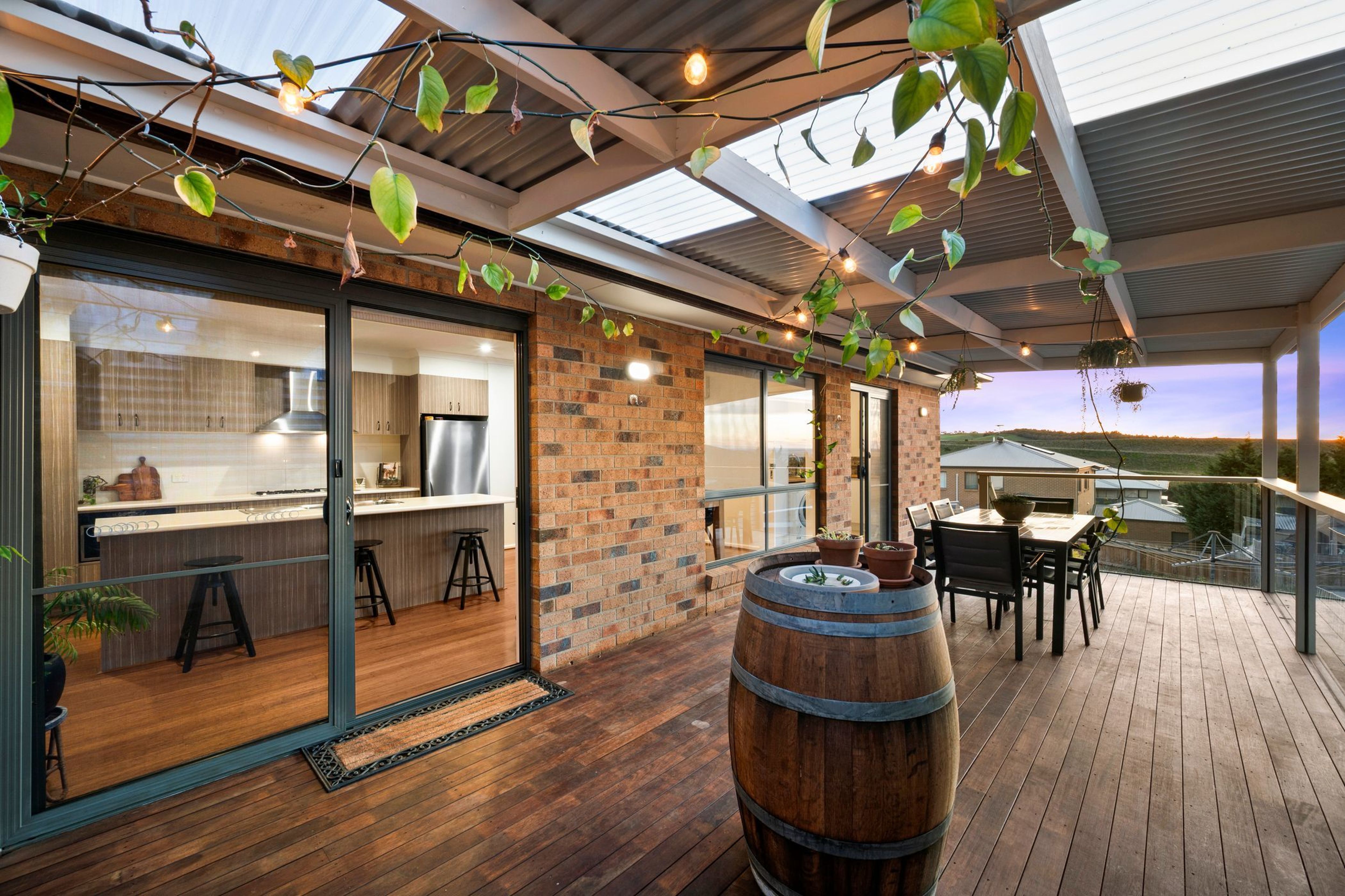 Thoughtfully designed and presented in immaculate condition, the home features three spacious bedrooms (ensuite and walk-in-robe to master), two modern bathrooms and a large living room, perfect for movie nights. The heart of the home is an open plan kitchen, meals and family area which opens onto an elevated timber decked area (fully undercover) which enjoys superb views over the countryside and is the perfect spot for entertaining.