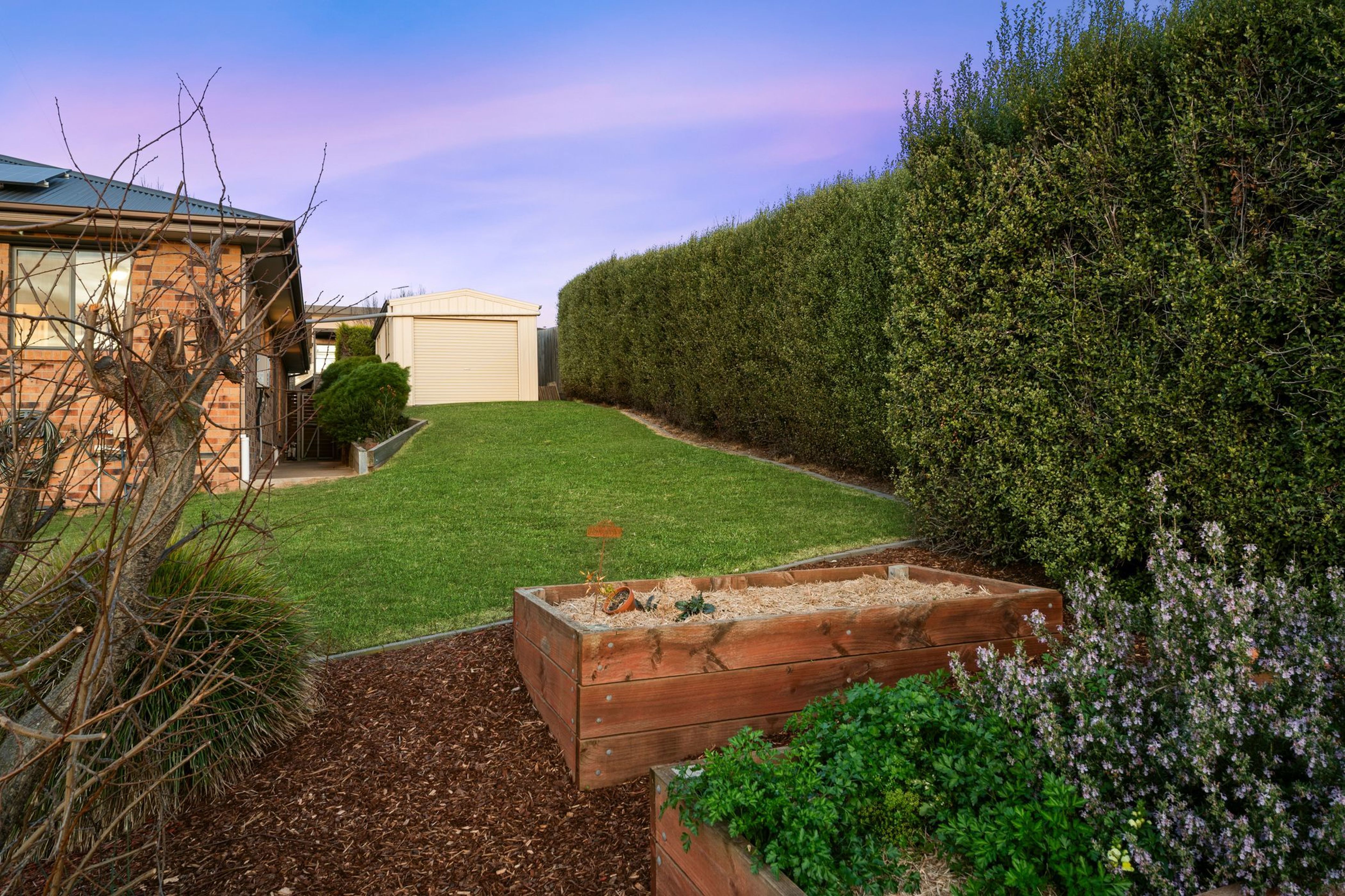 Outside features an established lawn area, low maintenance gardens, 3 raised veggie beds and a large water tank (approx 25,000 litres) which services the garden and laundry taps, along with the toilets.