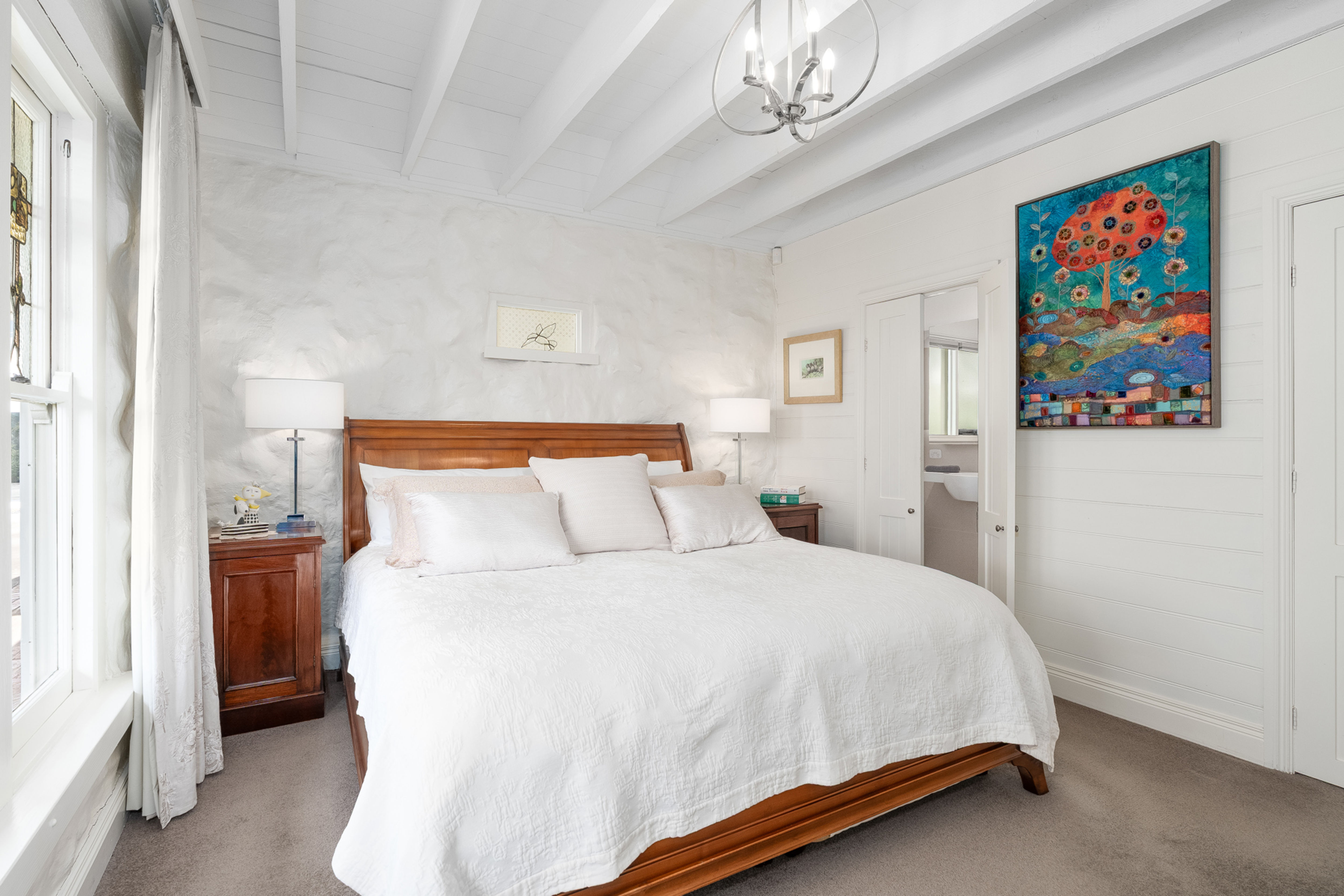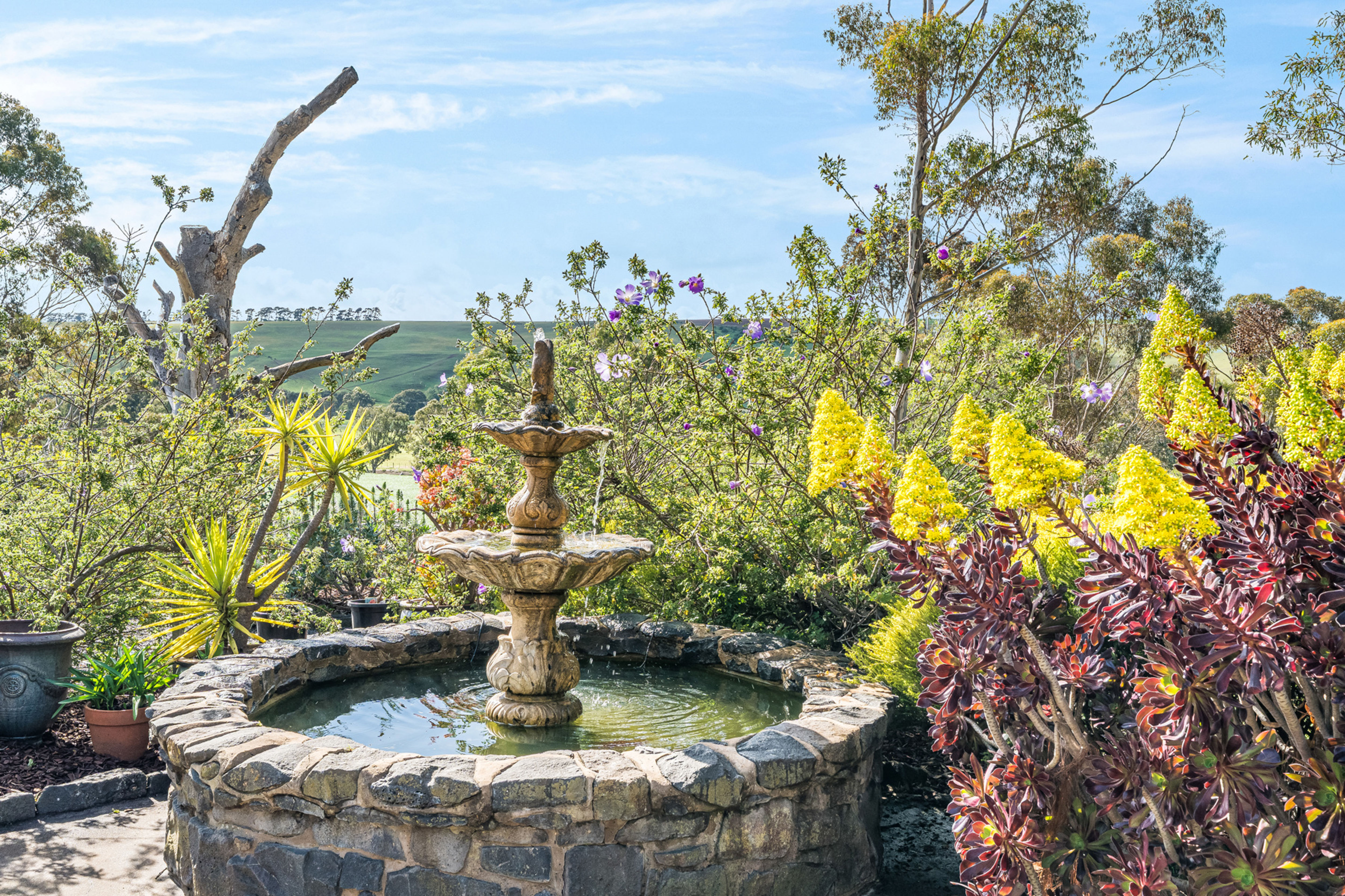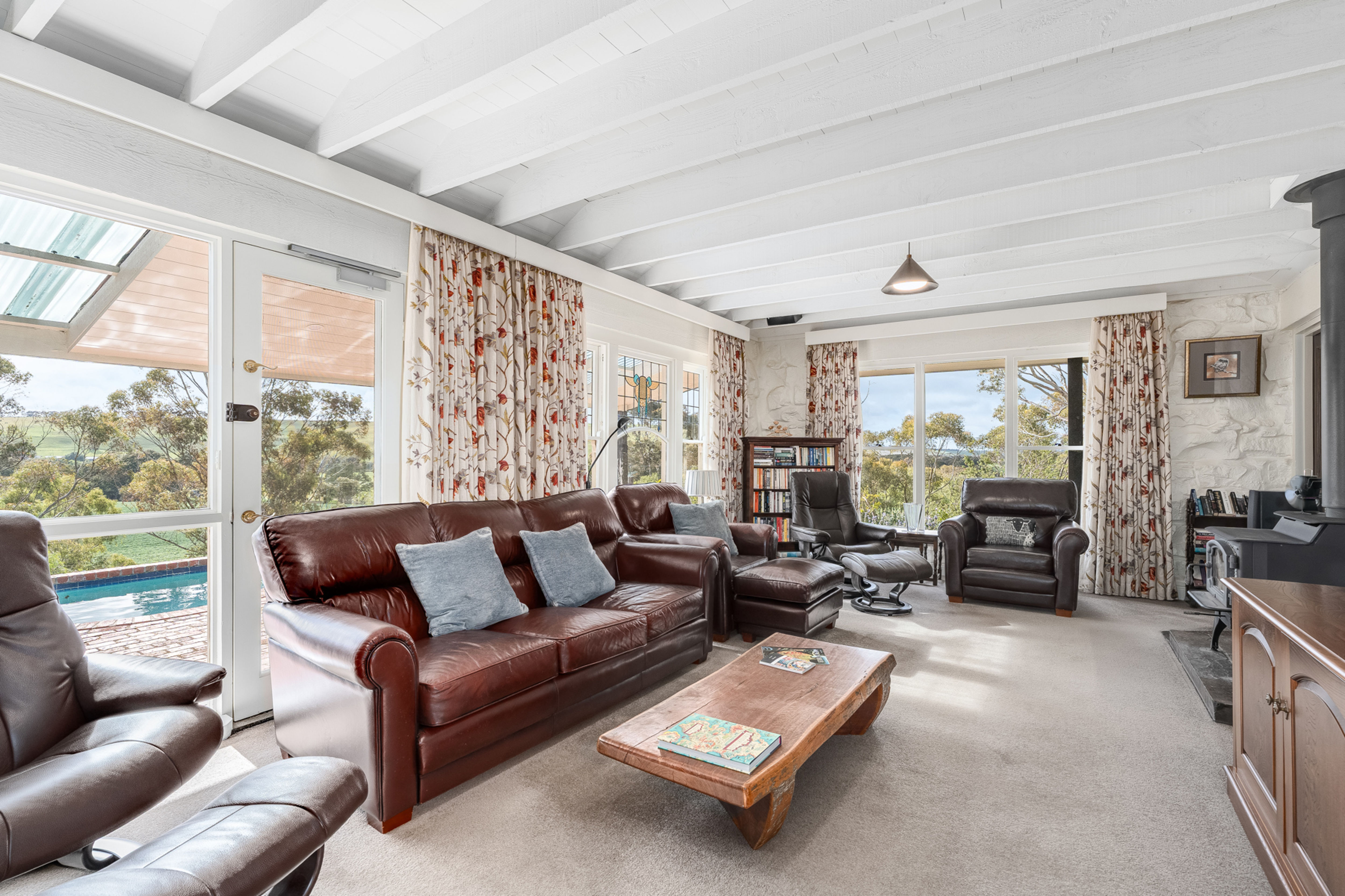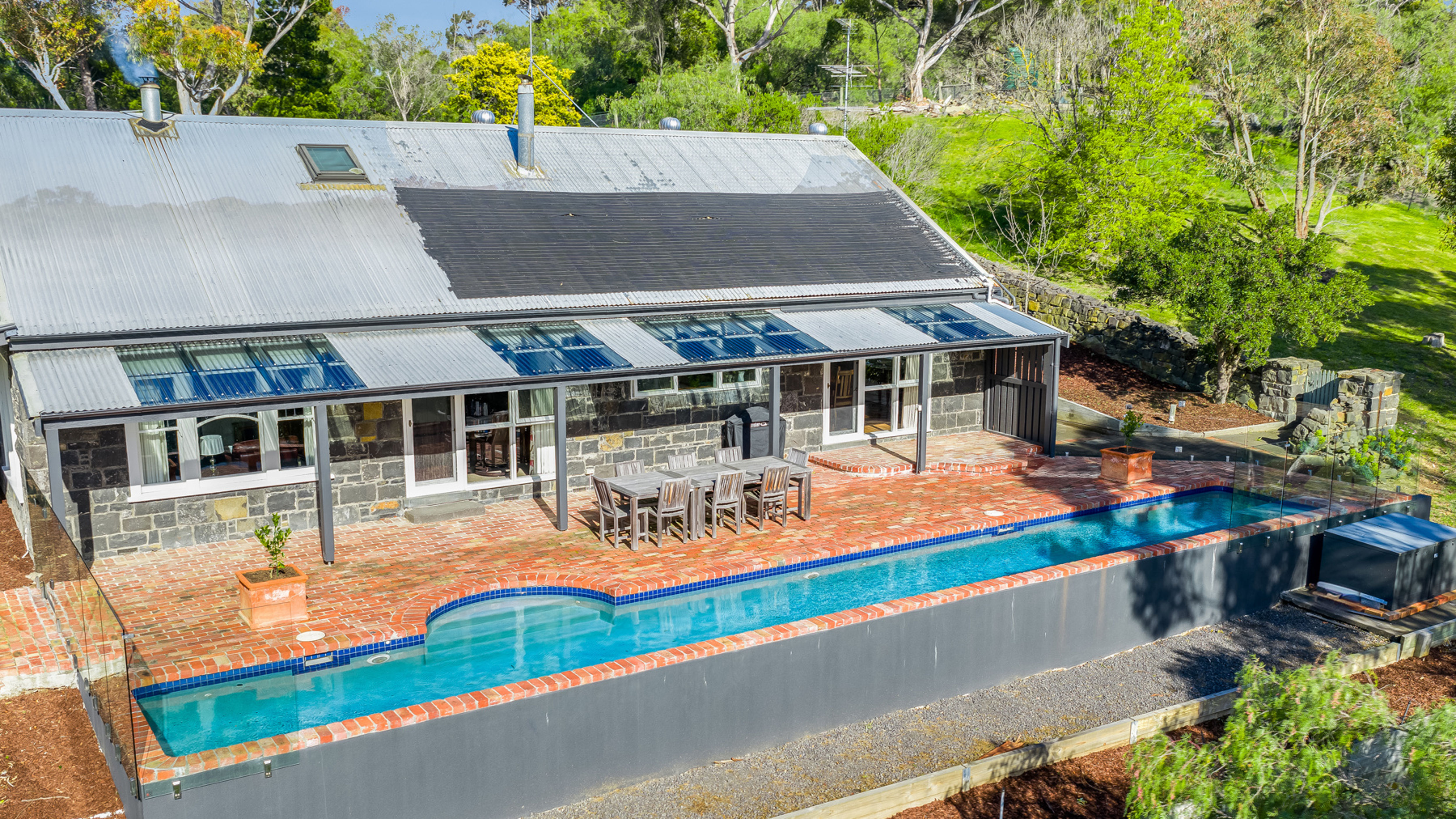 Set on approximately 4.4 acres of beautifully landscaped grounds, this timeless bluestone residence offers the perfect blend of rural charm, lifestyle luxury and modern convenience. Located off scenic Russells Bridge Road, the home is approached via a magnificent tree-lined driveway and enjoys sweeping views across the Moorabool Valley, positioned perfectly to soak up the northern sun.
