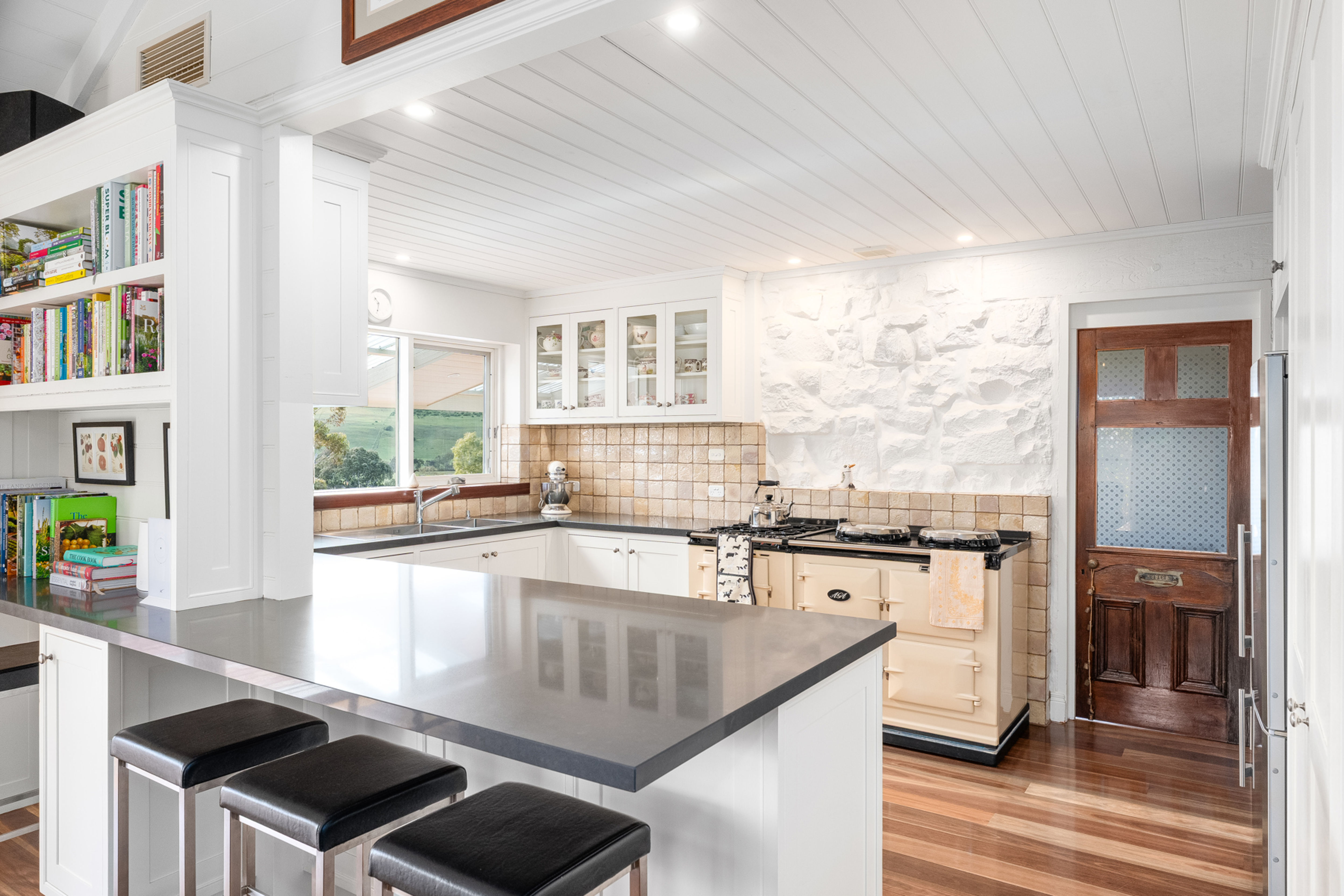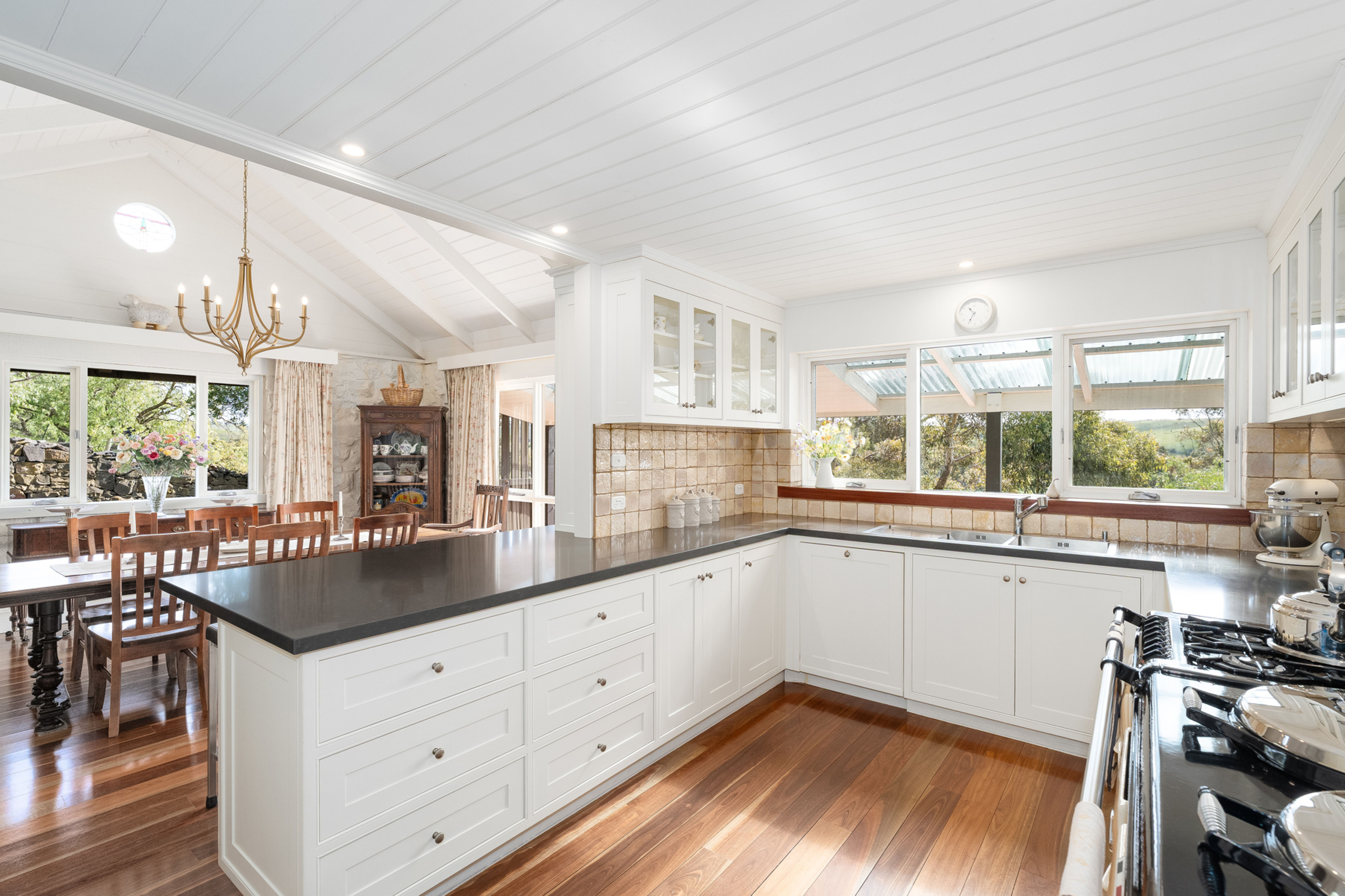Step inside to discover a warm, character-filled family home, comprising four generous bedrooms including a master suite with walk-in robe and private ensuite. The heart of the home is the inviting country kitchen, featuring an electric/gas AGA stove and adjoining meals area, which flows effortlessly into a light-filled lounge room, ideal for relaxed family living.