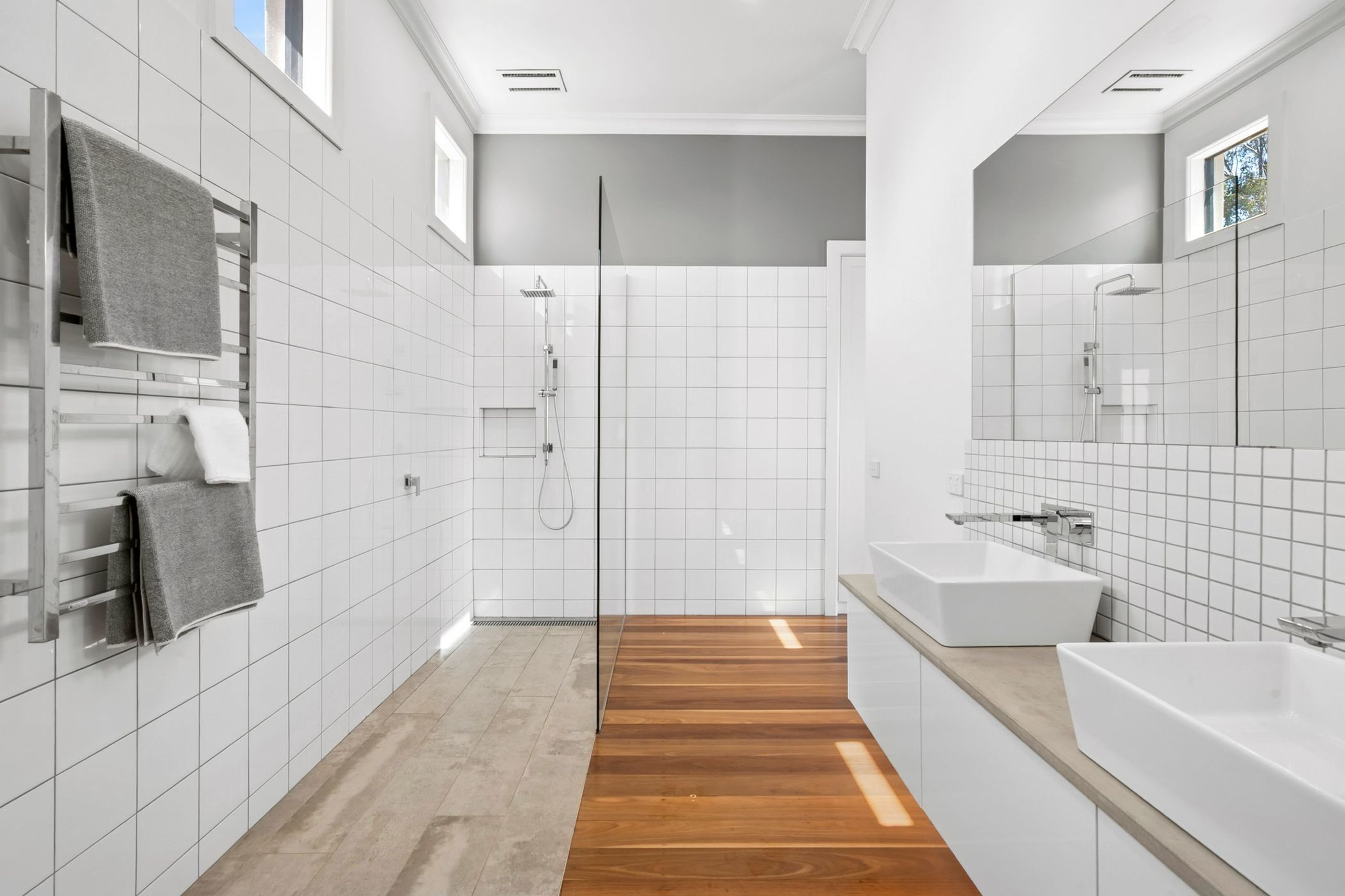 Sitting in an elevated position and enjoying expansive views over the surrounding countryside, the spacious family home offers 4 bedrooms (all with s/system heating & cooling), 2 bathrooms (stylish ensuite to master, both incl. underfloor heating) and a large family laundry with an adjoining powder room.