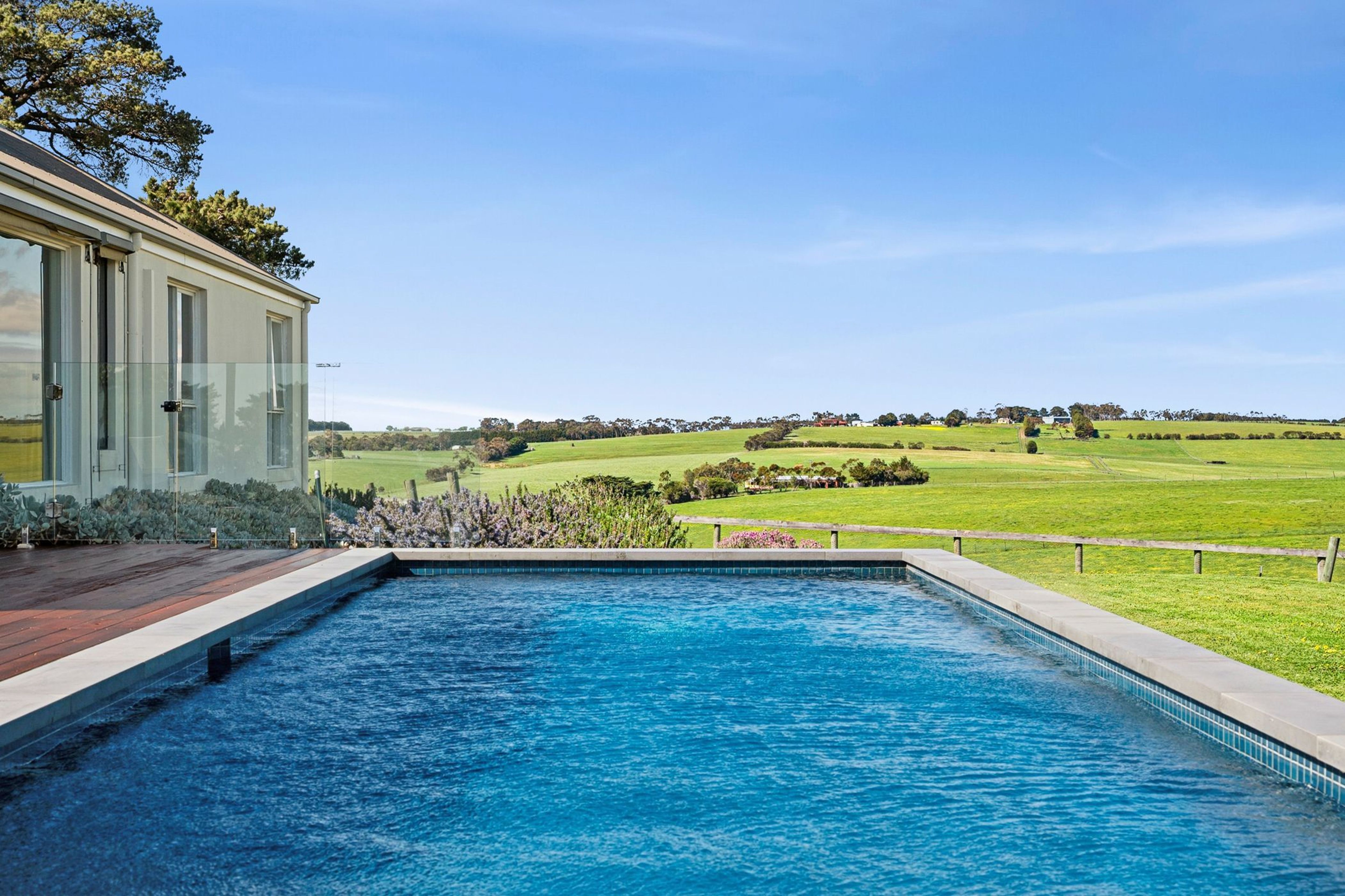 Enjoying infinity edge views over the paddocks, the solar-heated, salt-chlorinated, fully-tiled custom pool adds a touch of luxury to the country setting, whilst the kitchen garden, mature olive trees, auto garage with garden storage and cubby house for the kids completes the picture.
