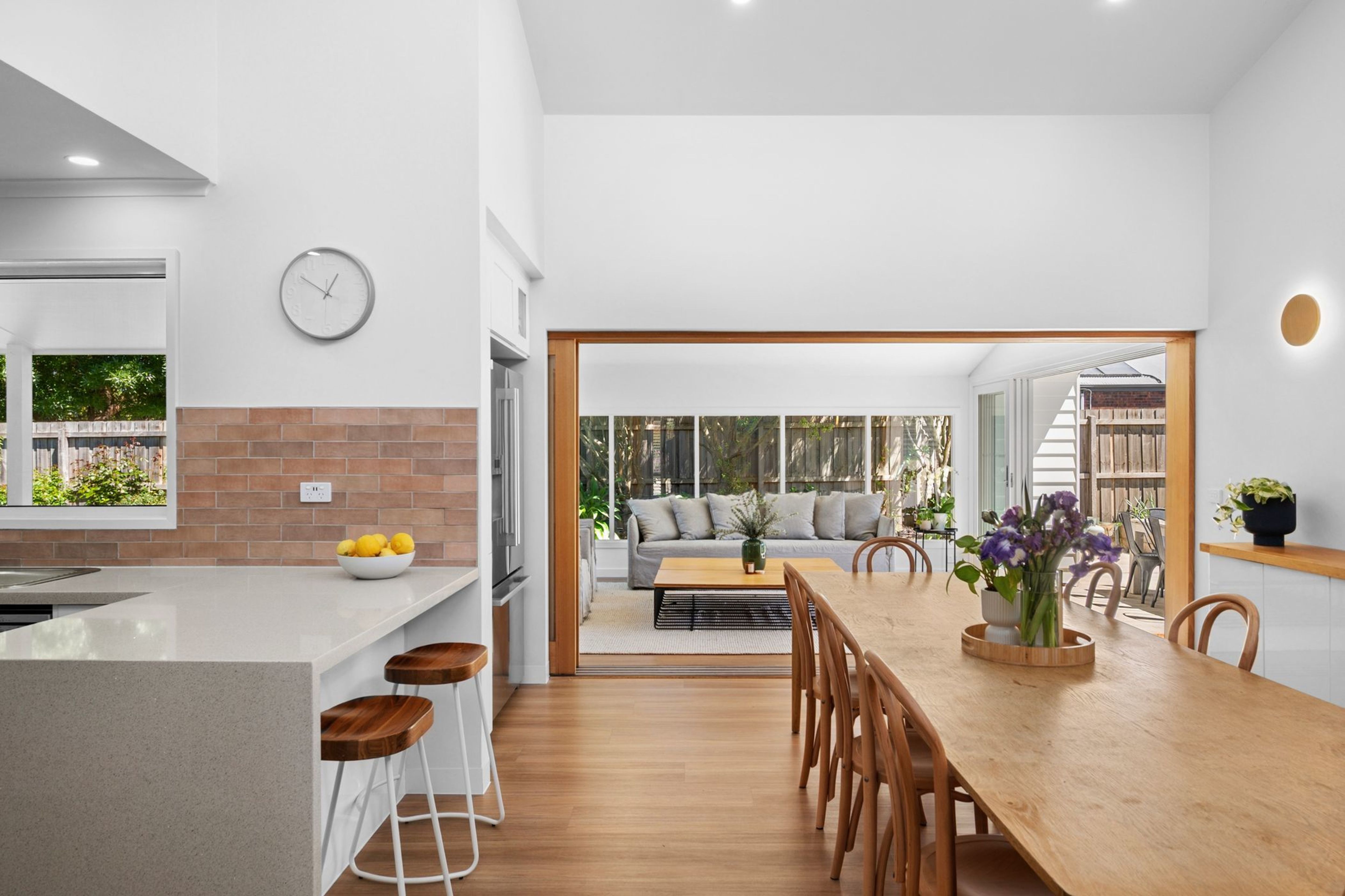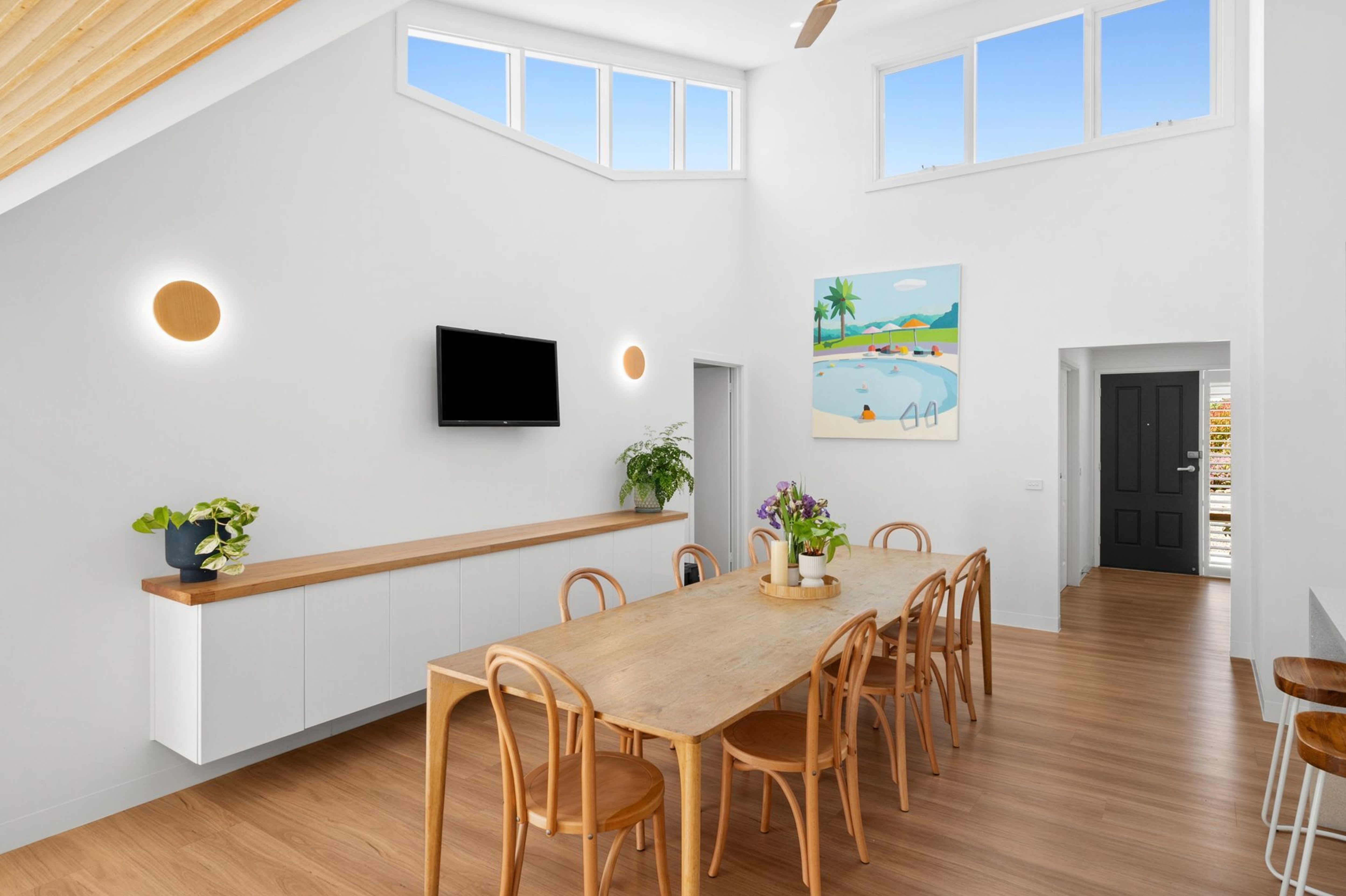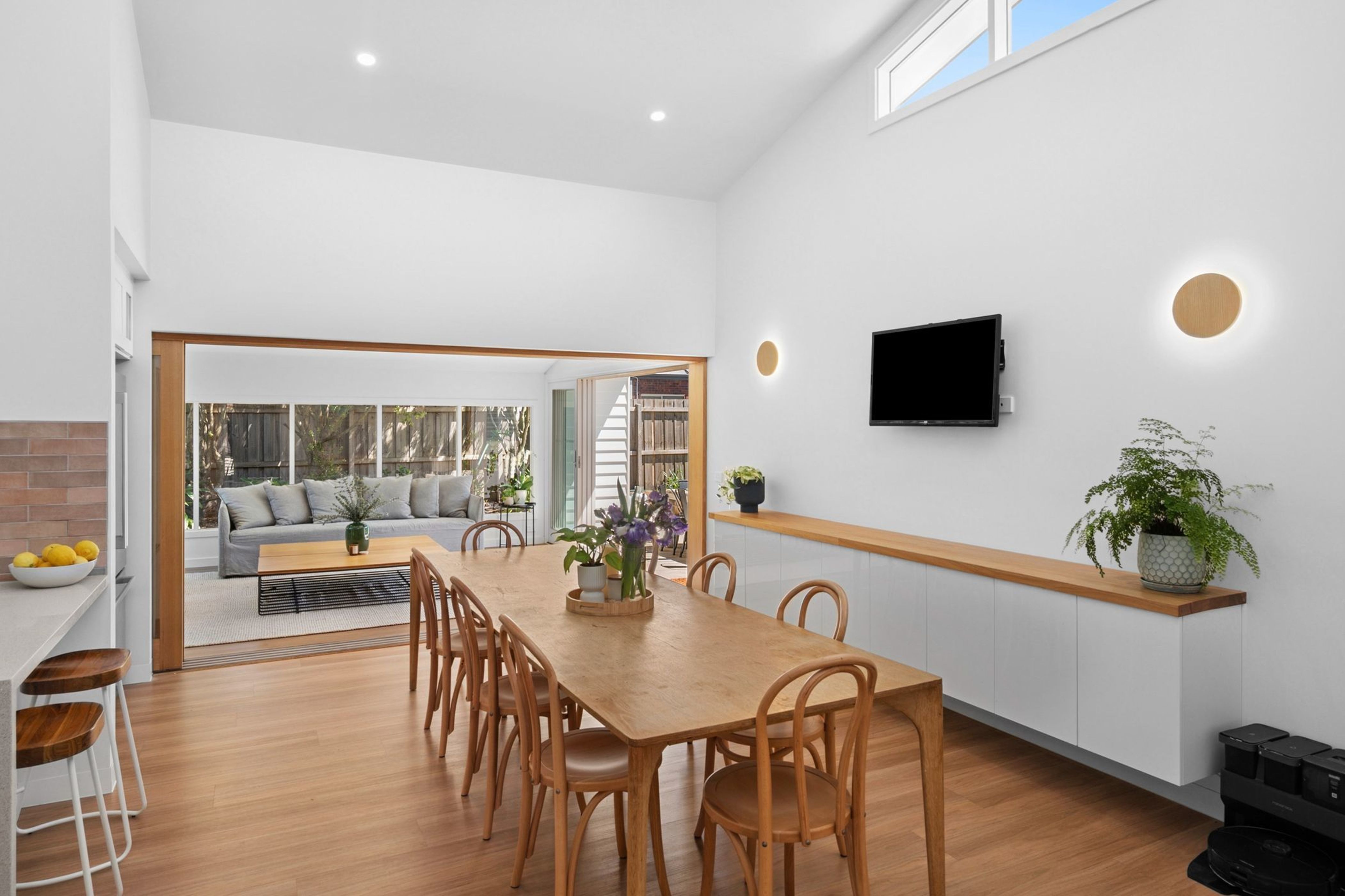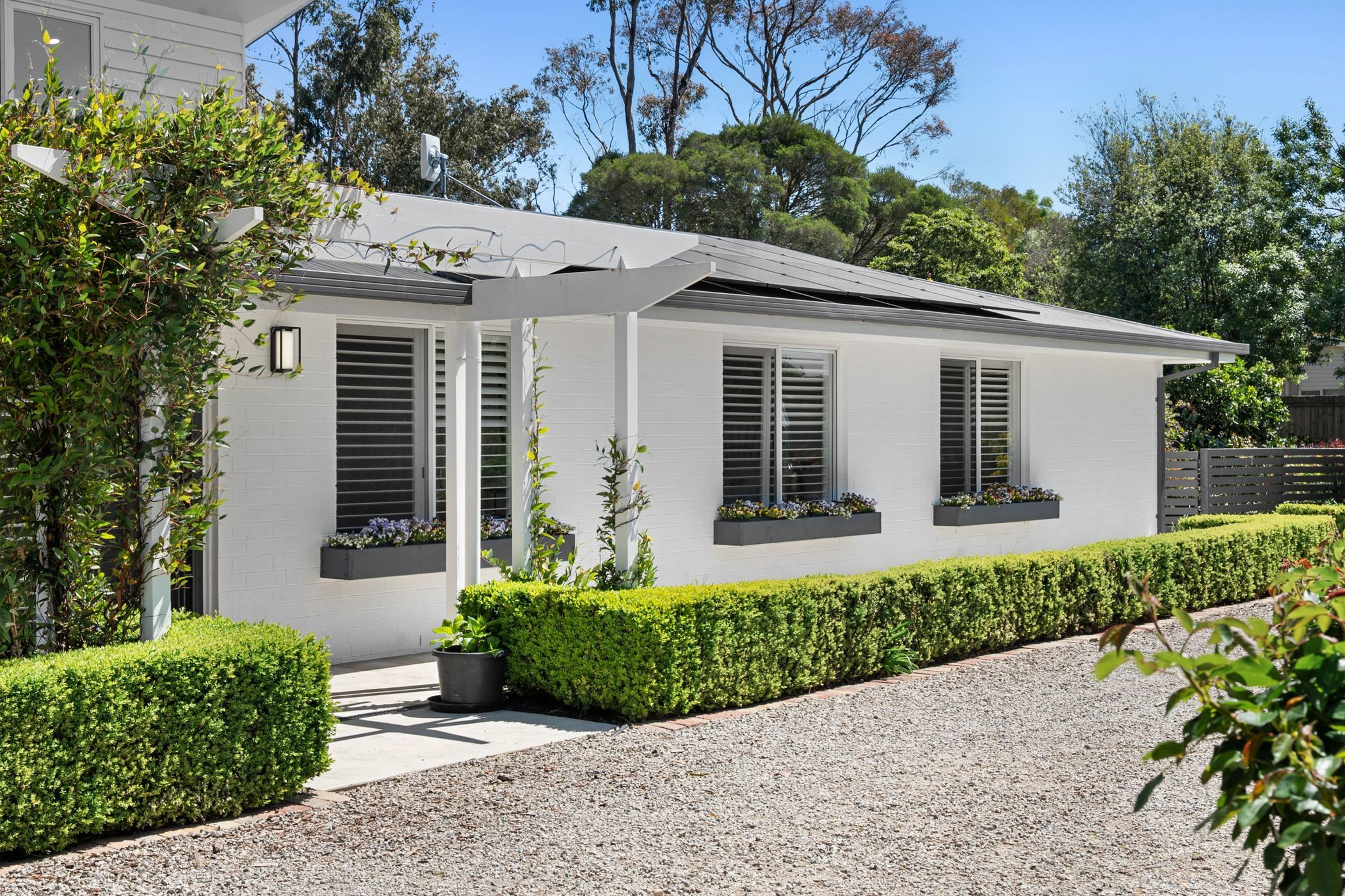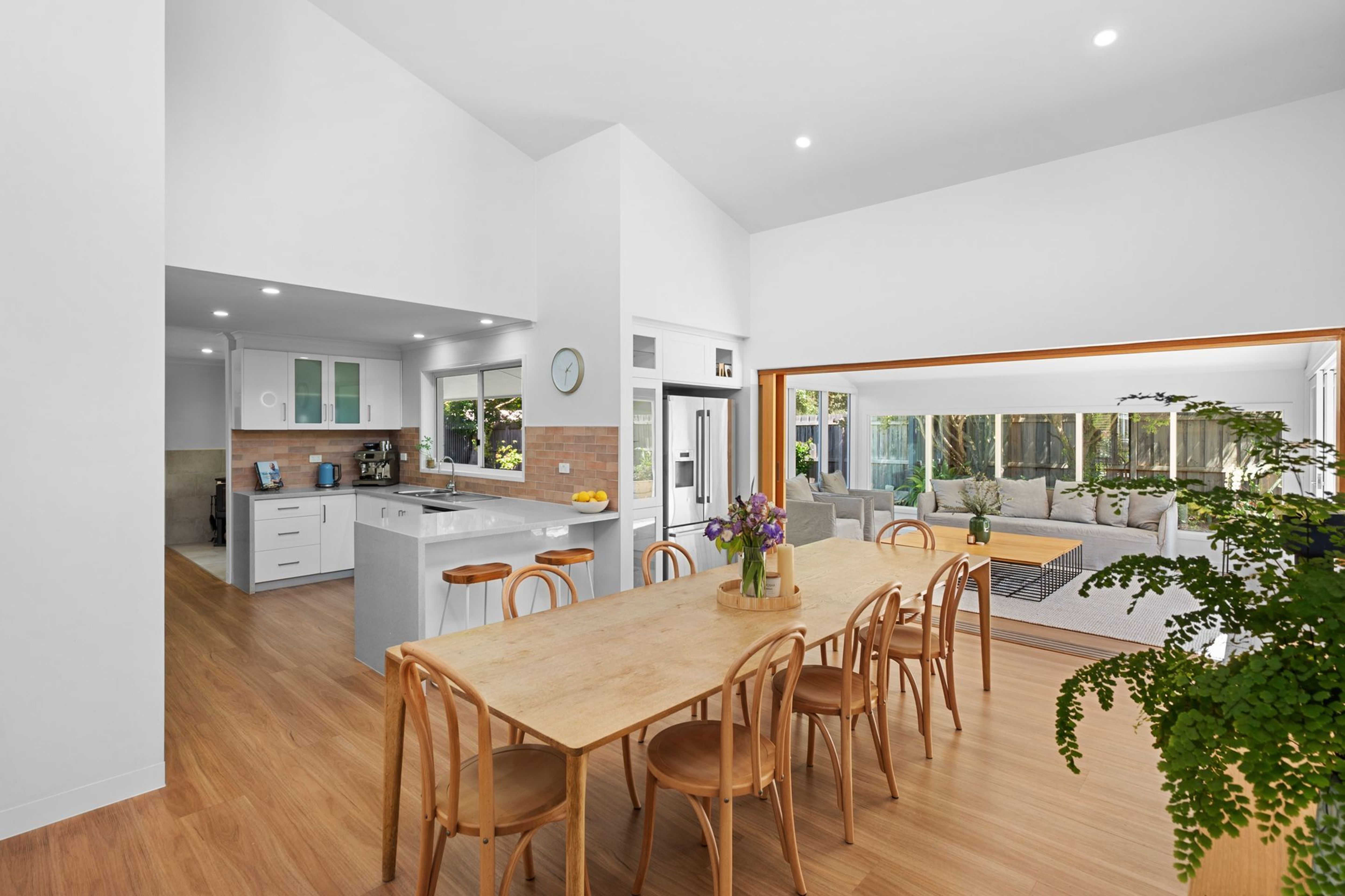 Tucked well back from the road and framed by established gardens, this inviting home is bathed in natural light and defined by high ceilings, flowing spaces and a seamless indoor-outdoor connection. Sustainably designed for relaxed family living, it delivers the perfect balance of privacy, functionality and style.