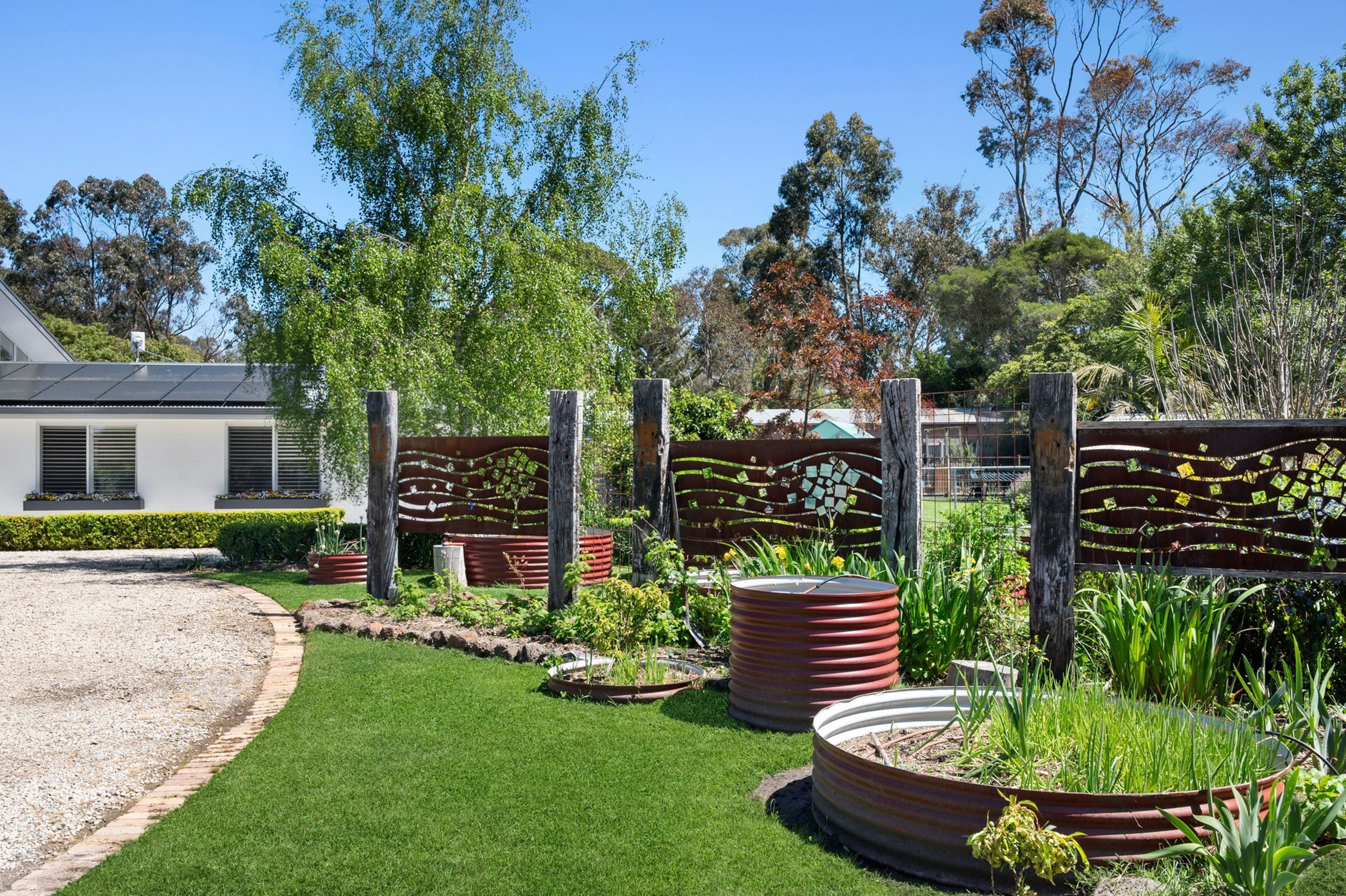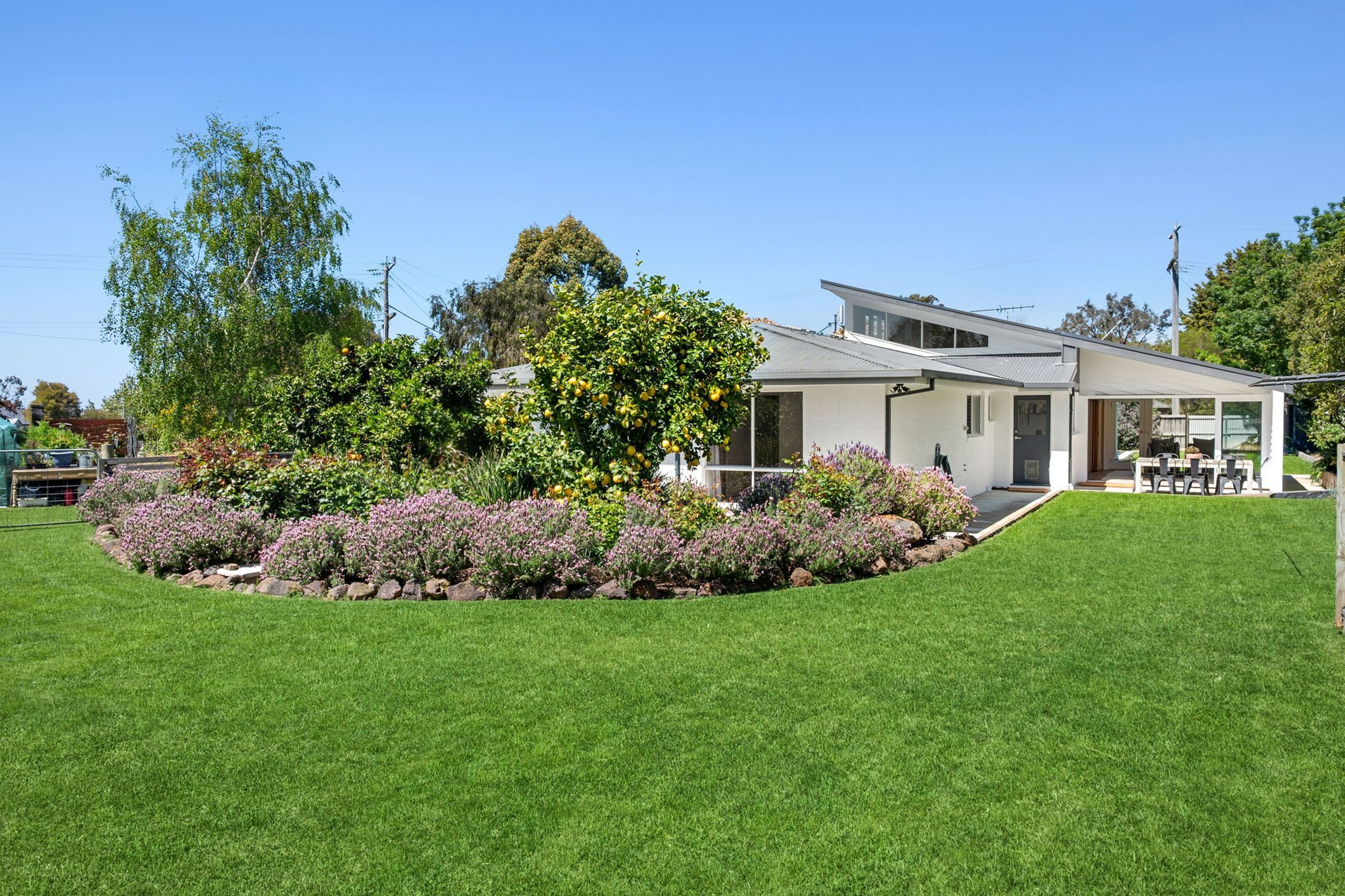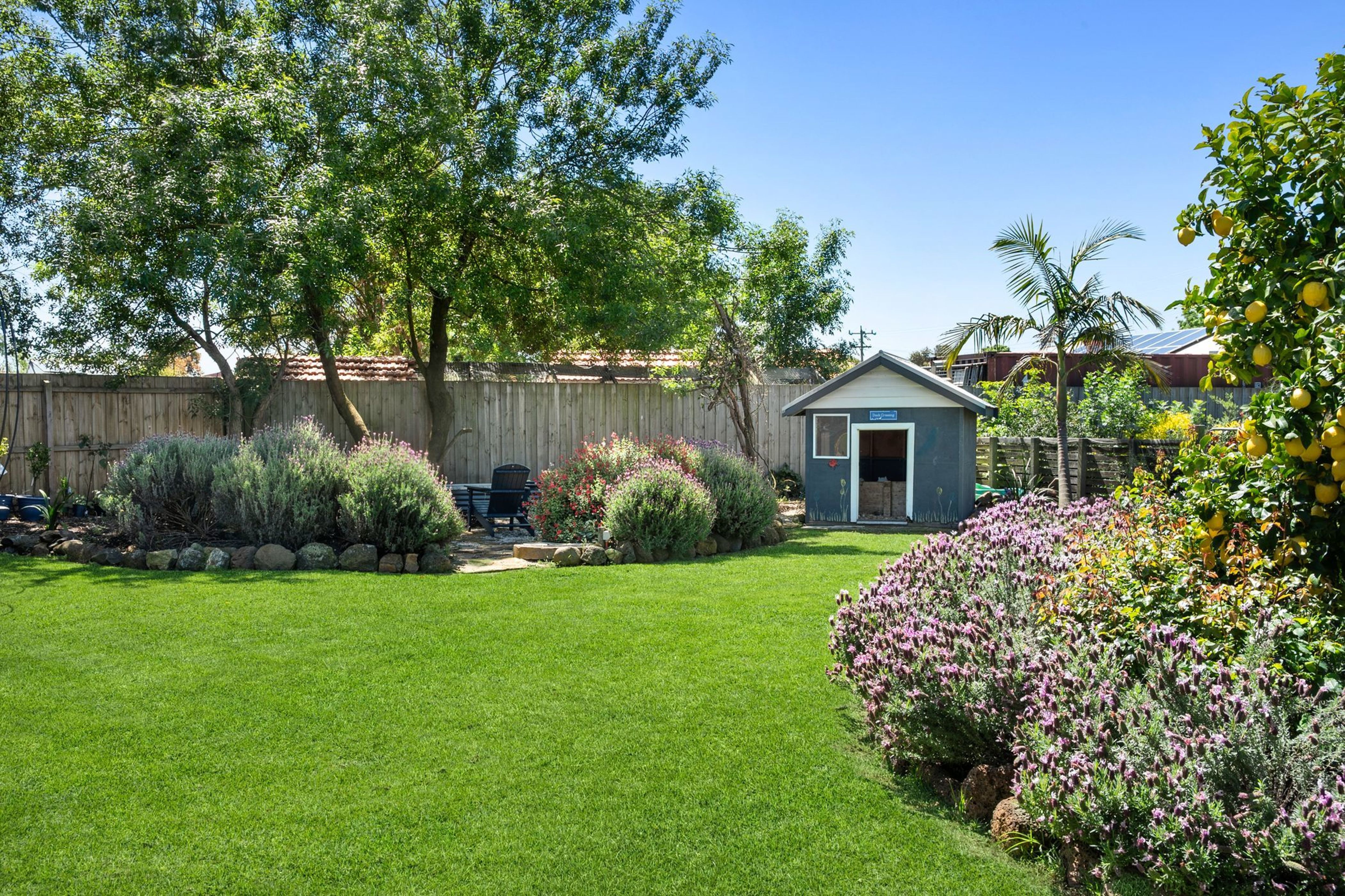 The property is complemented by a separate home office (or secure storage room), double lock-up garage with built in storage, EV charging point and Tesla charger included, side storage area, wood shed, large chook house and run, duck house, fire pit, town/mains water connected, extensive veggie gardens and high-yielding orange, lemon, lime, passionfruit, nectarine, peach, cherry and a variety of apple trees. A multi-zoned, Hydrawise smart control irrigation system makes garden care a breeze, whilst the property has recently been upgraded with the addition of a highly efficient heat pump hot water unit, 10.66kW solar panels & 10kWh Enphase batteries.