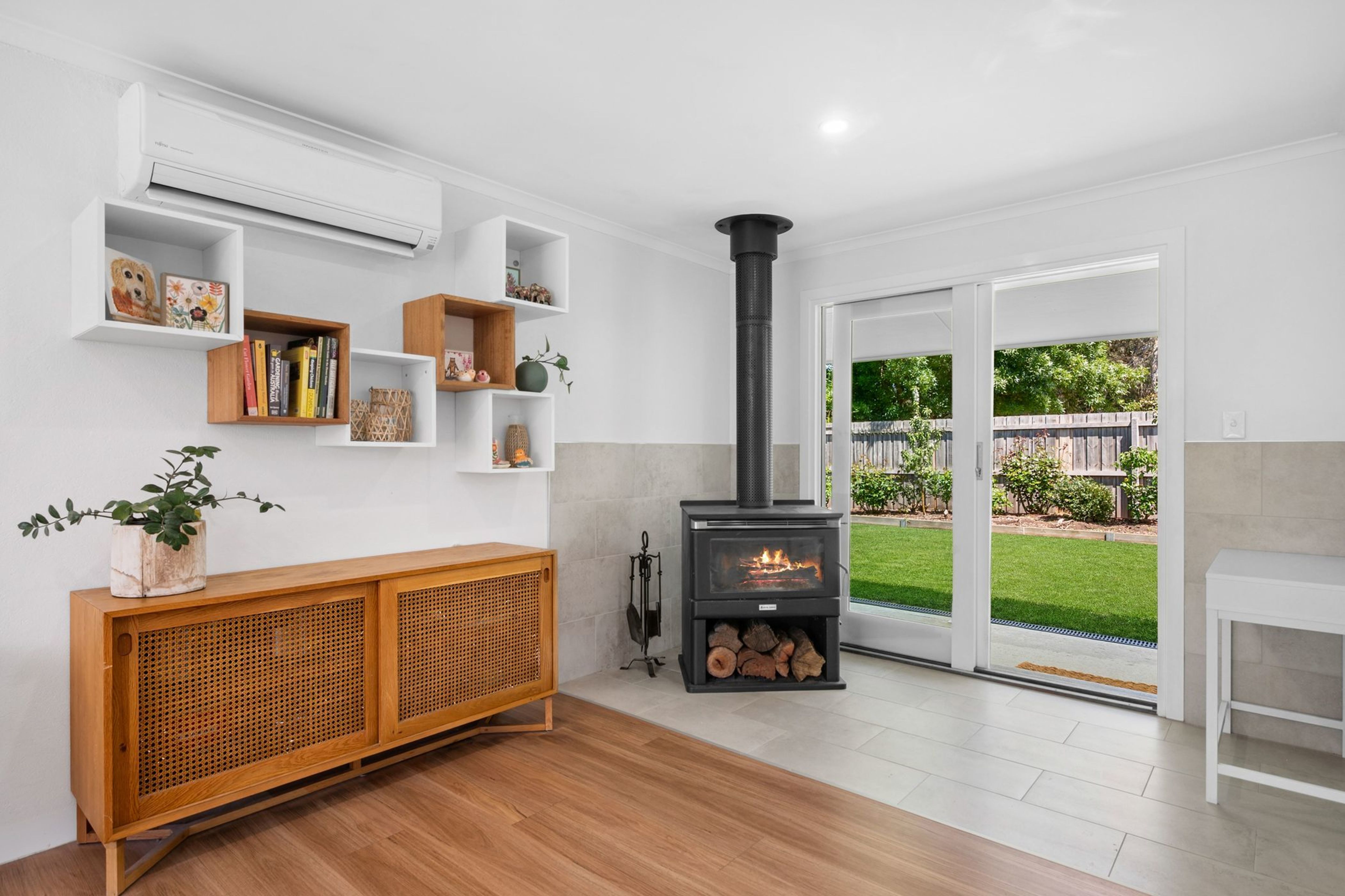 This gorgeous family home is built to impress, offering 4 bedrooms (ensuite and walk-in-robe to main bedroom), modern family bathroom, a spacious TV/lounge area with wood fire & s/system heating and cooling, kitchen with walk-in-pantry and electric appliances (induction stovetop & oven, dishwasher & plumbed-in Bosch fridge/freezer) and an oversized family laundry.