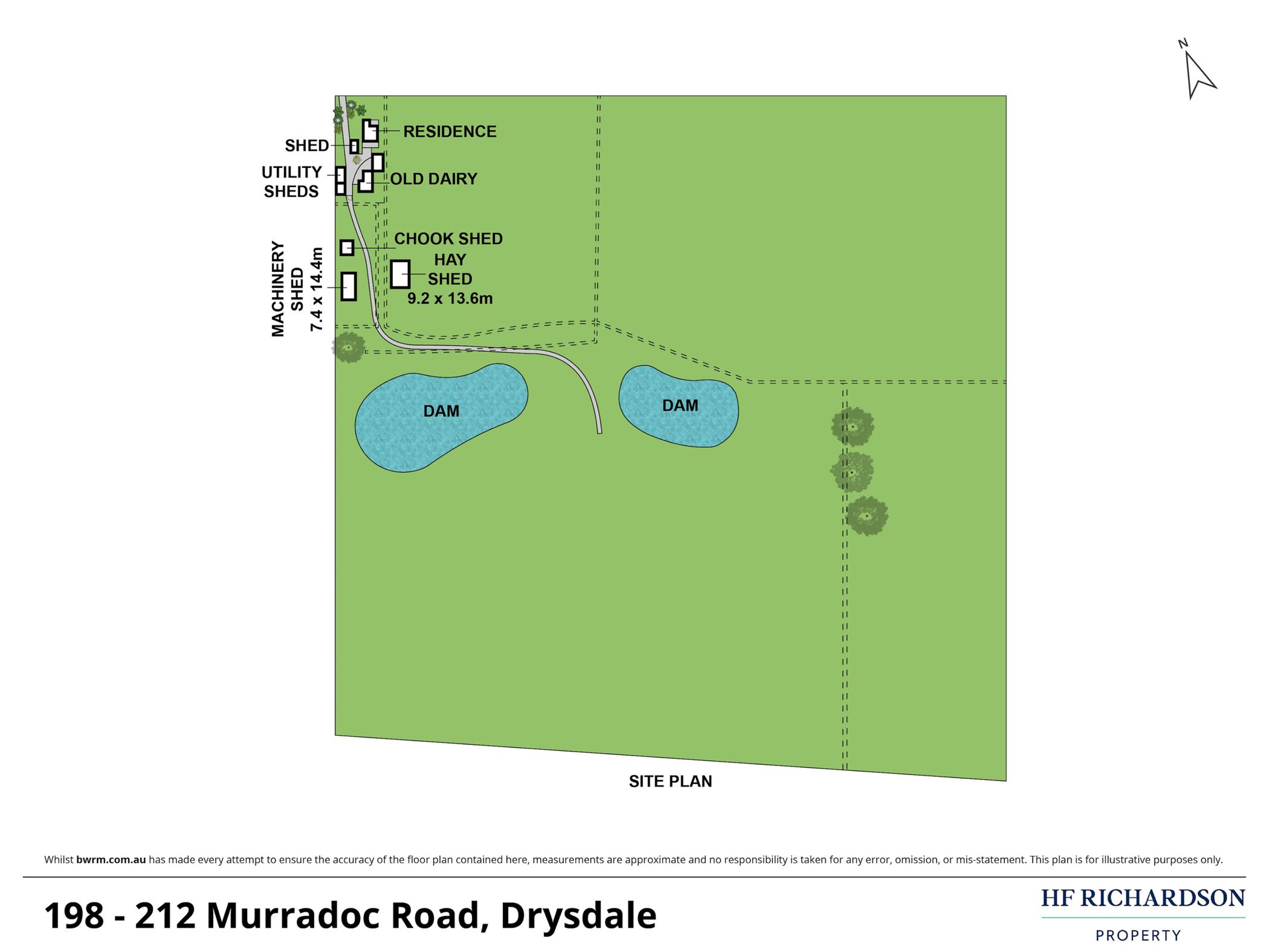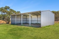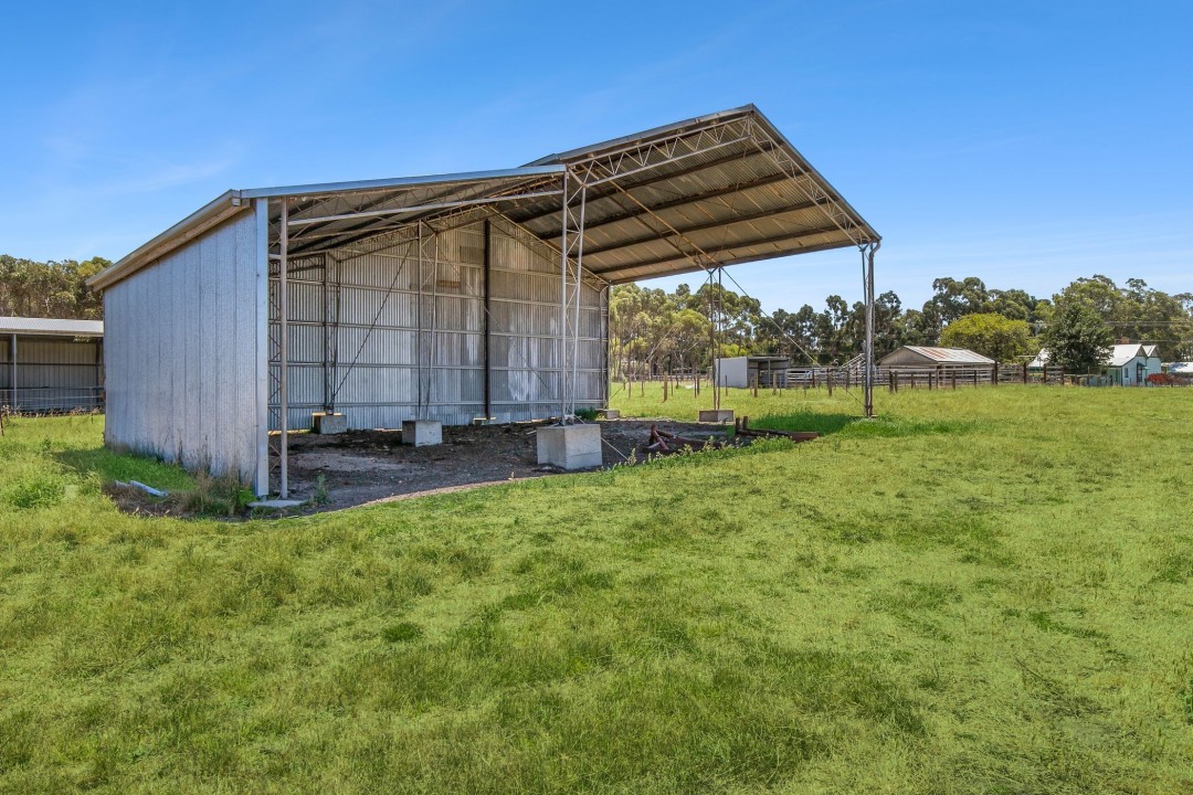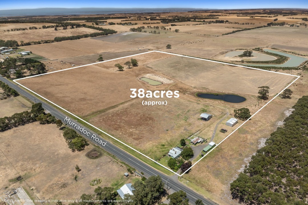 The property is connected to town water and mains power and is divided into 4 main paddocks, with some smaller supplementary paddocks and a central laneway. Farming activities are well-supported by a large hay shed (13.6m x 9.2m), 4-bay machinery shed (14.4m x 7.4m), old dairy building, chook shed and various utility sheds. Two dams and extensive frontage to Murradoc Road complement this lifestyle holding, ideally suited to mixed farming pursuits including cattle, sheep, horses, hay and crop production.