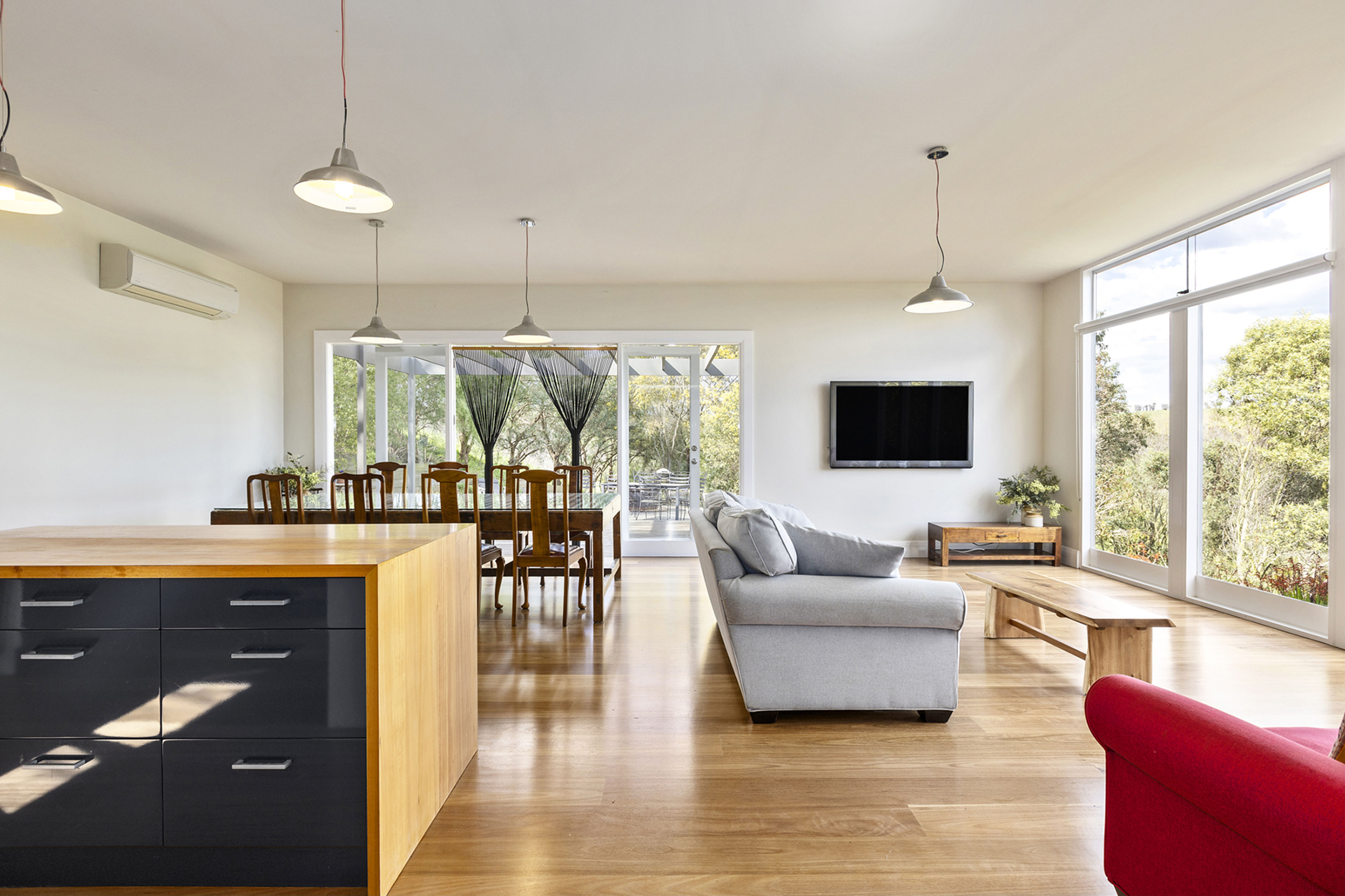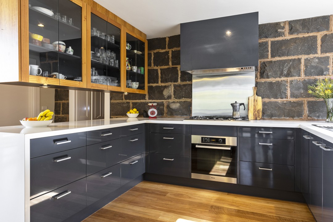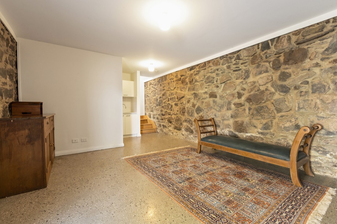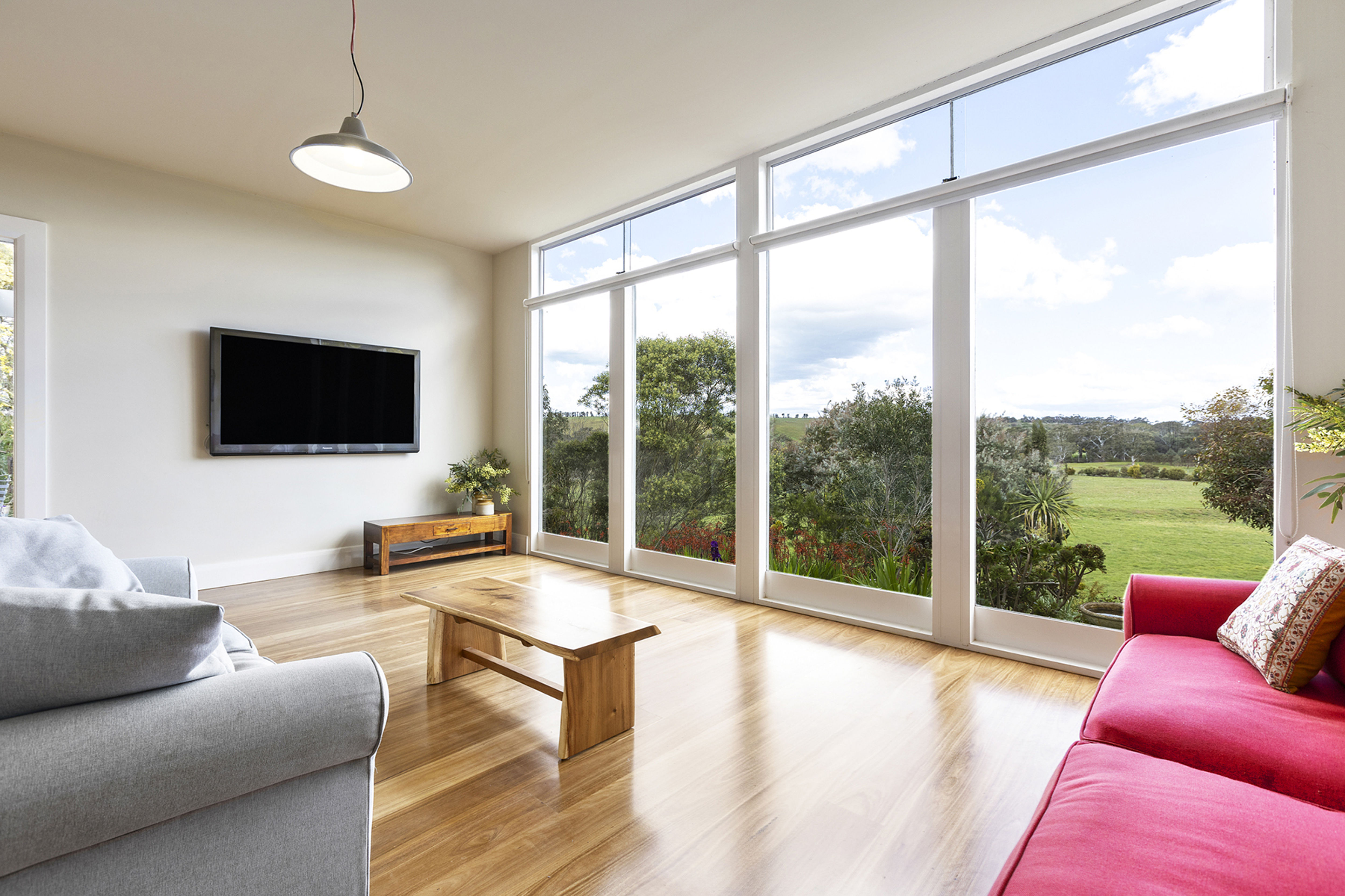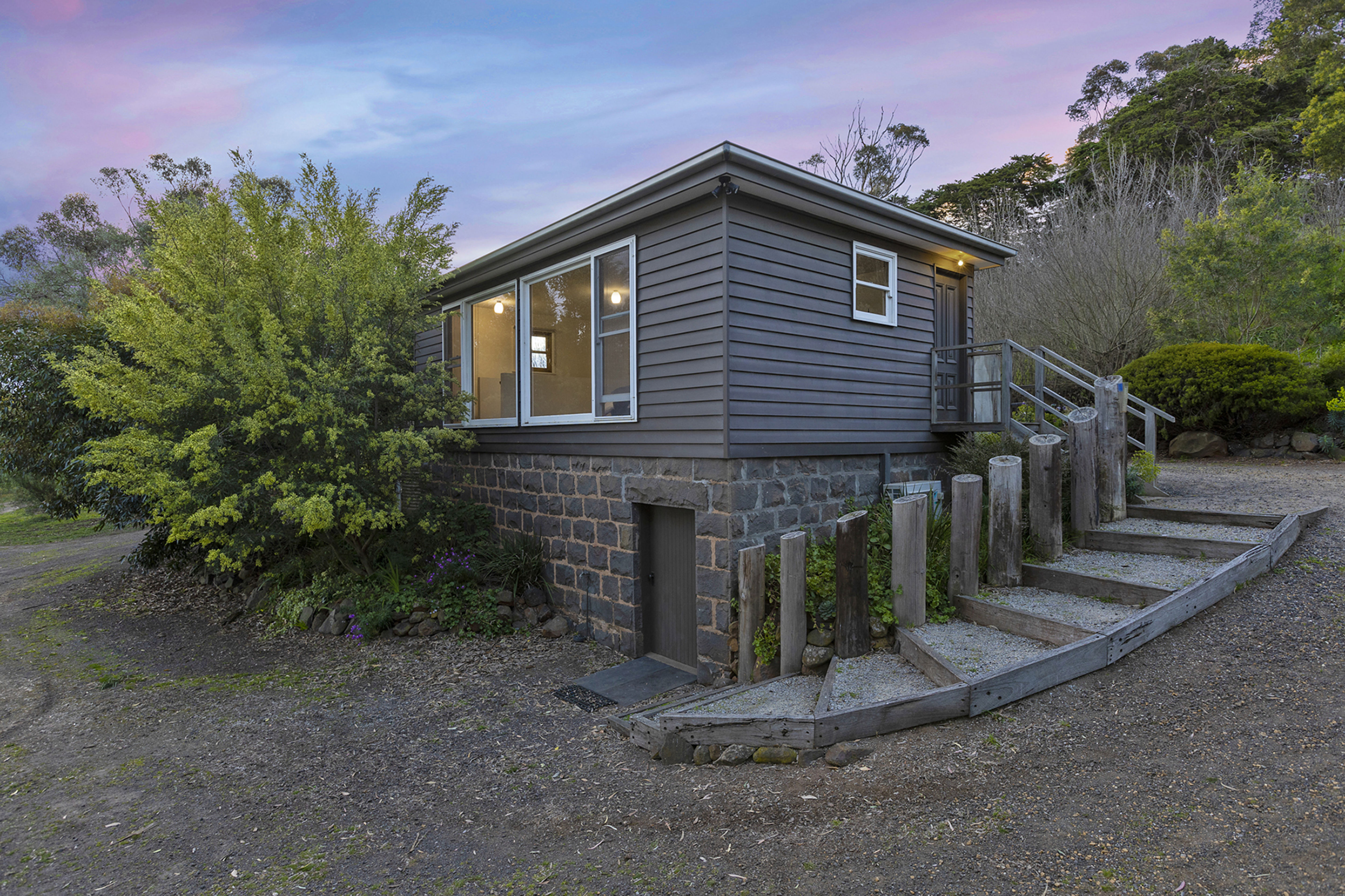 Nestled amongst established botanical gardens and sitting in an elevated position, the bluestone residence enjoys expansive views and a curated blend of modern living and country elegance.