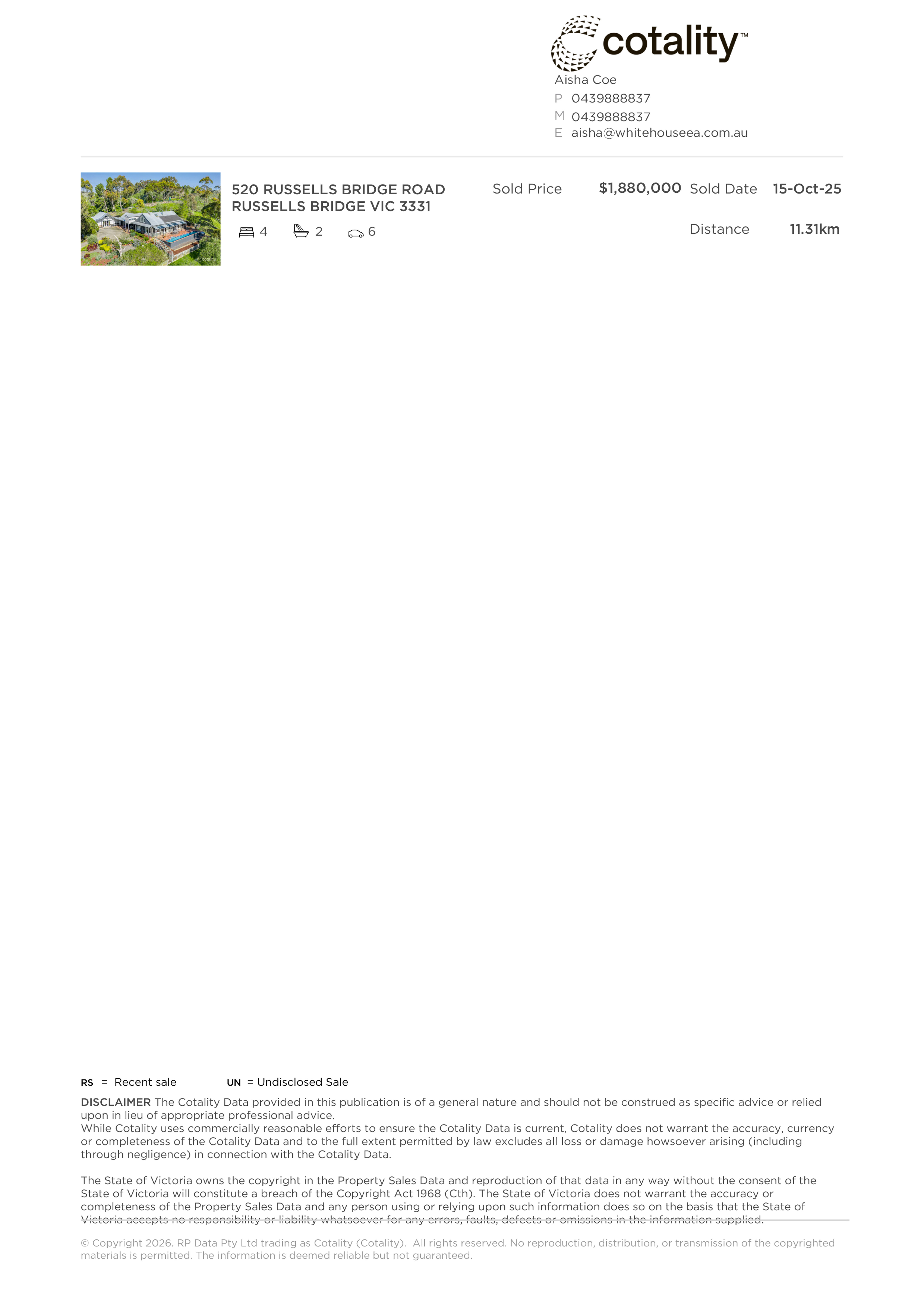 Aisha Coe 0439 888 837 | aisha@whitehouseea.com.au