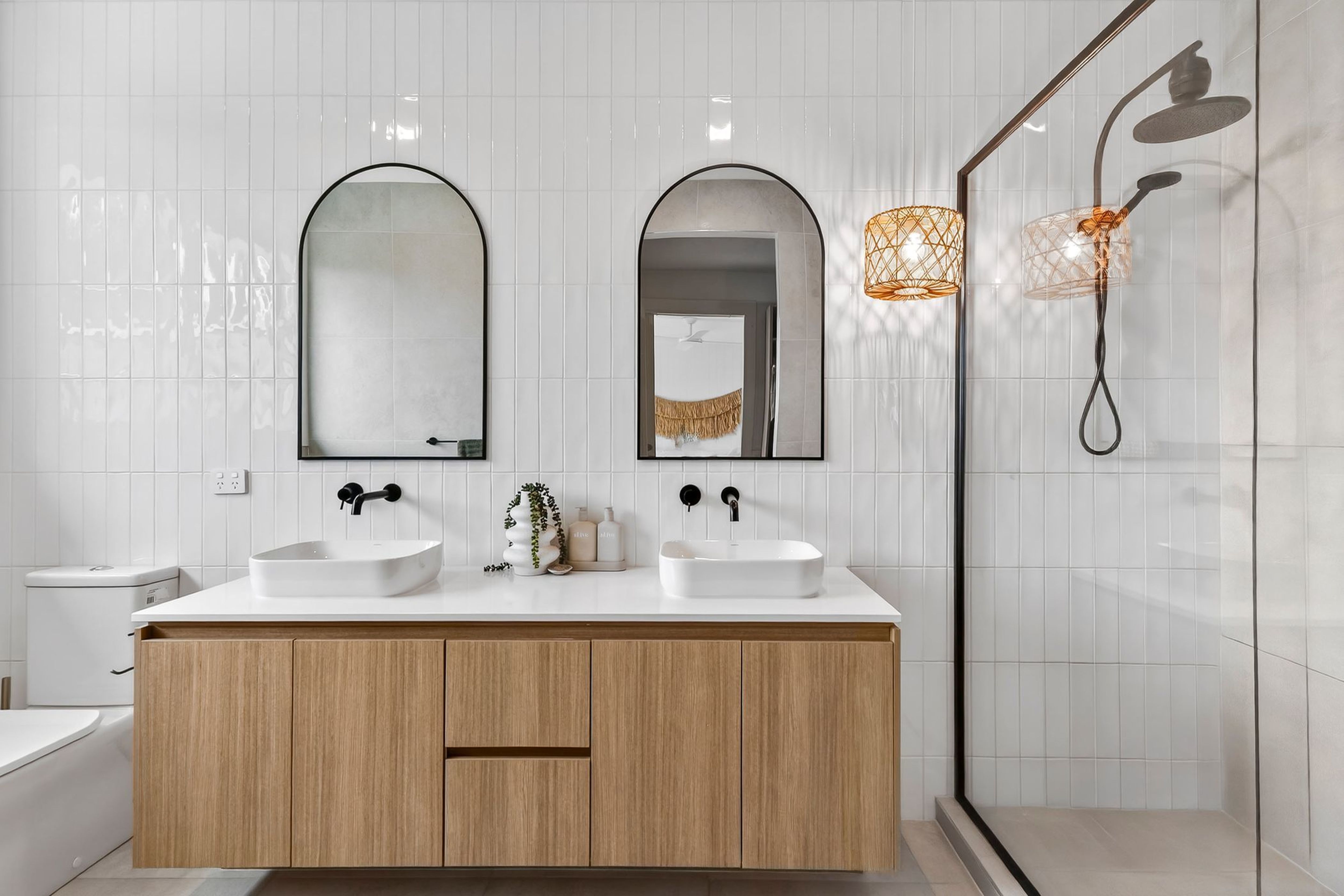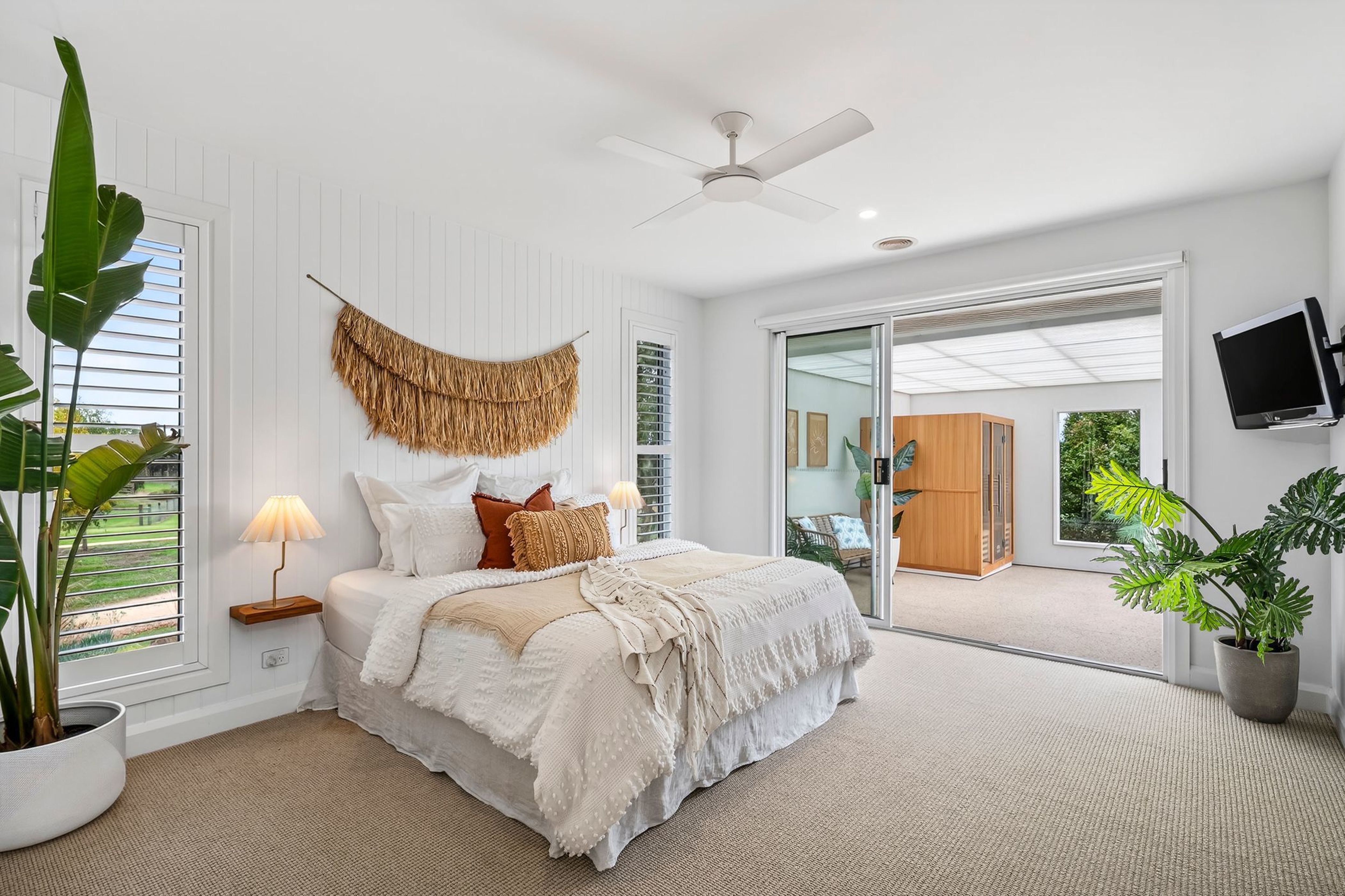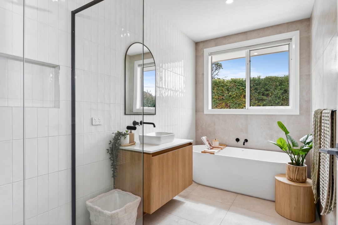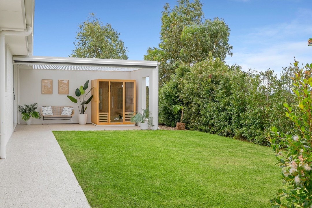 - Bedrooms & Bathrooms: Master suite with his & hers walk-in-robe, ceiling fan, stylish ensuite with double shower and double vanity, plus an adjoining undercover parents wellness retreat area perfect for a sauna, ice bath, yoga or gym set up. 3 remaining bedrooms for the kids, all roomy with built-in-robe storage and two with ceiling fans. A dedicated family bathroom with bath, shower and vanity will suit all ages, along with a handy separate powder room just across the hallway