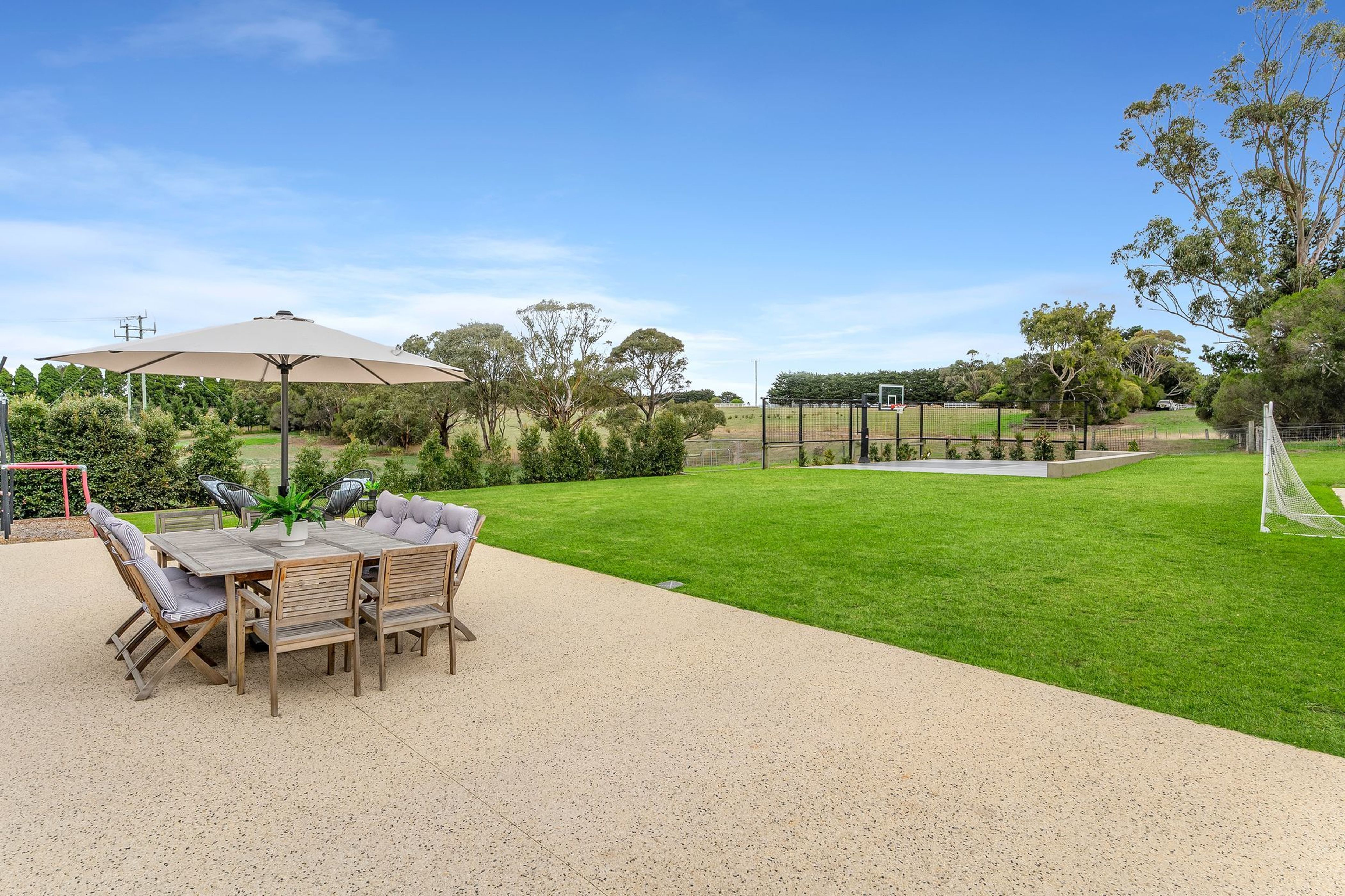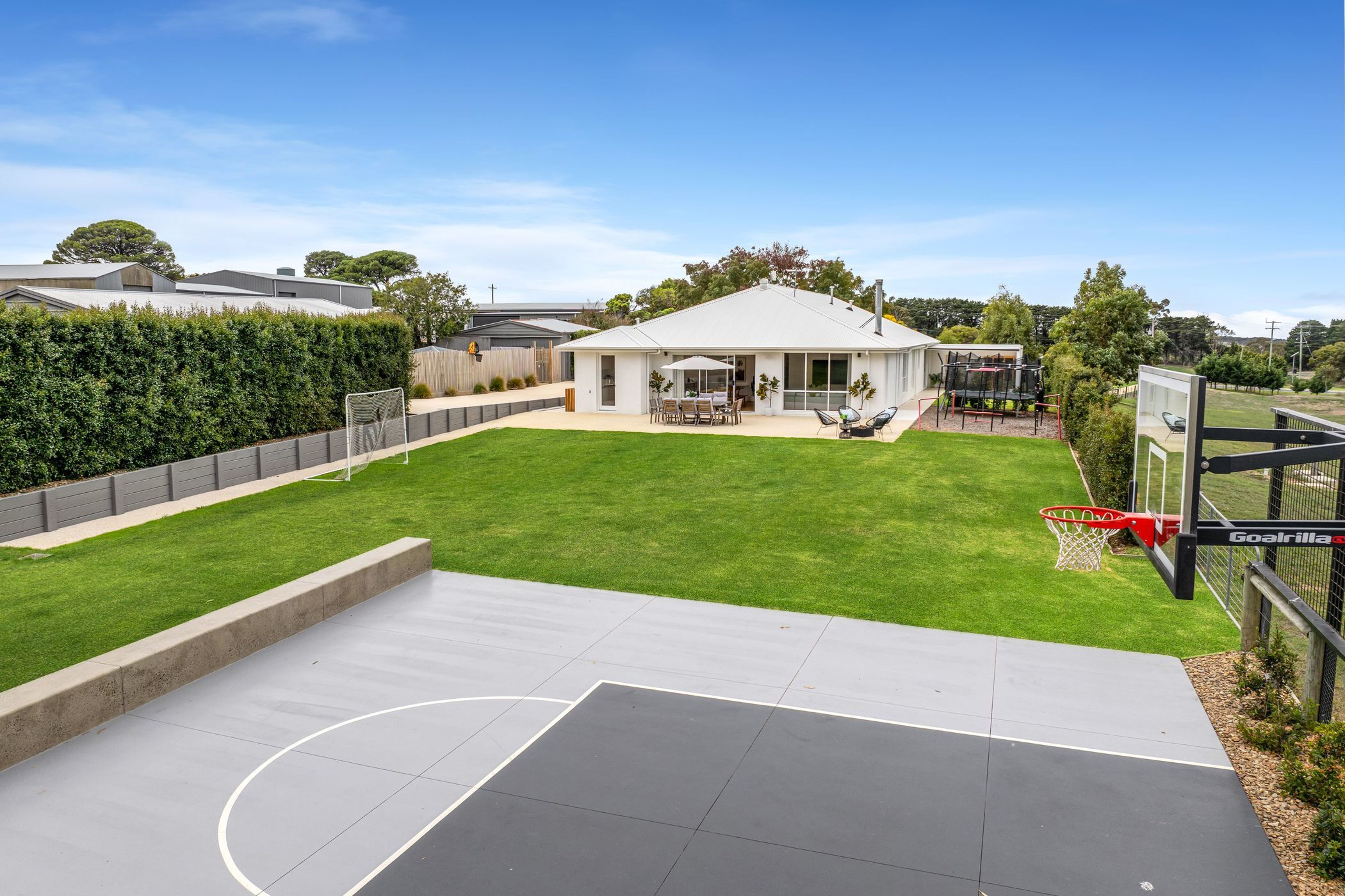 - Outdoors: Spacious entertaining area off the family room via sliding doors - the perfect space for parties and summer afternoons, built-in playground, lawn area and half-court basketball/netball for the kids, double remote garage, wood shed, 12.2m x 5.8m shed (concrete floor) and adjoining undercover storage on the side