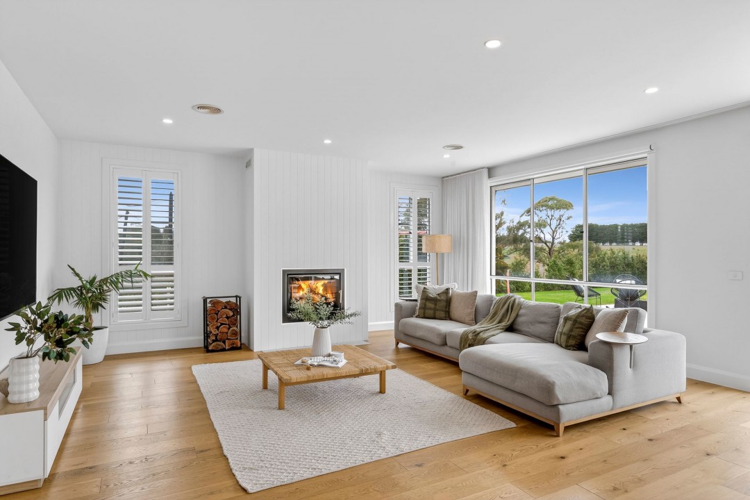 - Living Areas: The heart of the home is located at the rear of the residence, open plan to the kitchen, with views over the rear outdoor entertaining and lawn areas. Featuring a rustic wood fire, perfect for cozy winter nights on the couch, and plenty of space for a large dining table and play space for the kids. 2 further living spaces connect off the hallway providing a separate rumpus room & lounge room