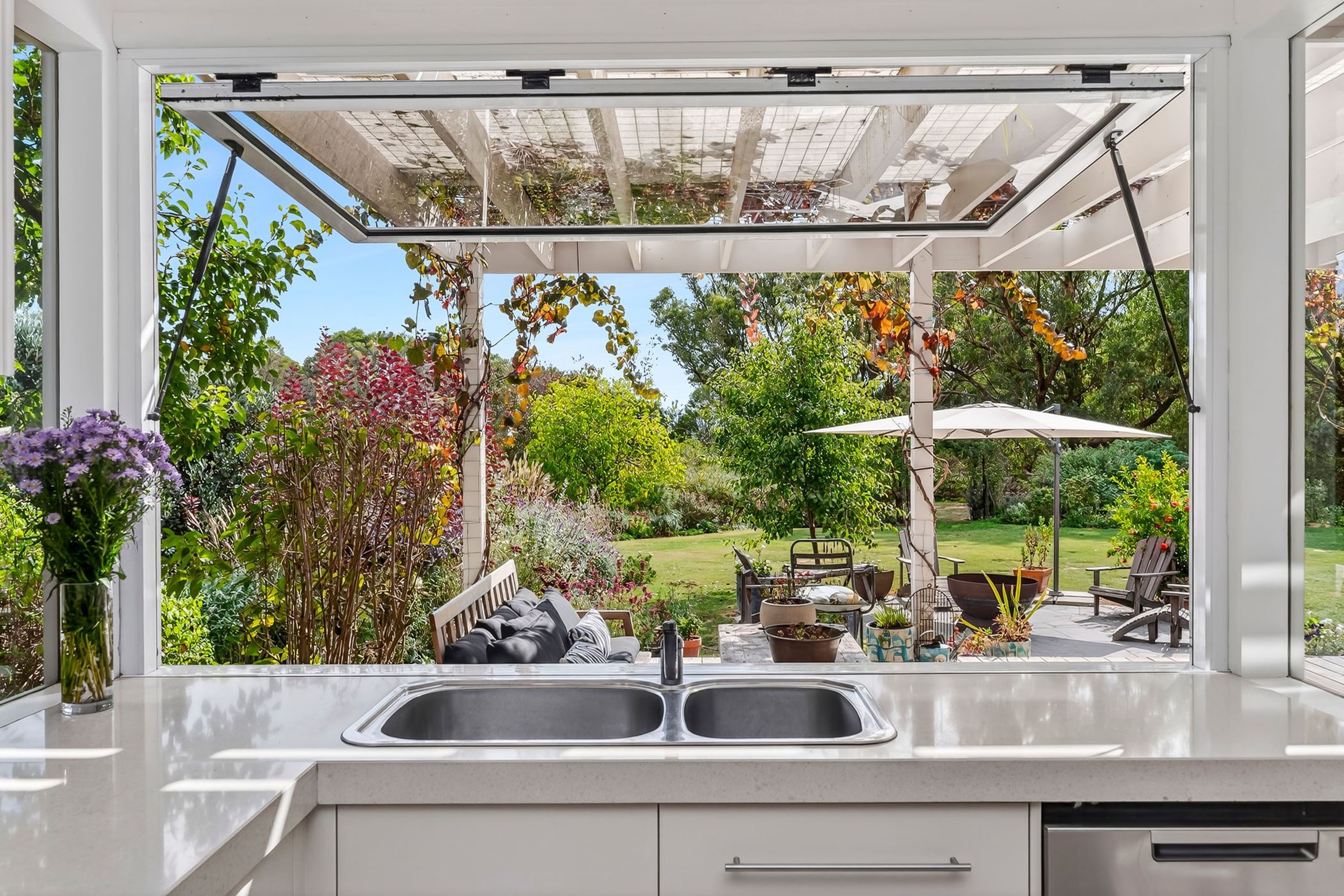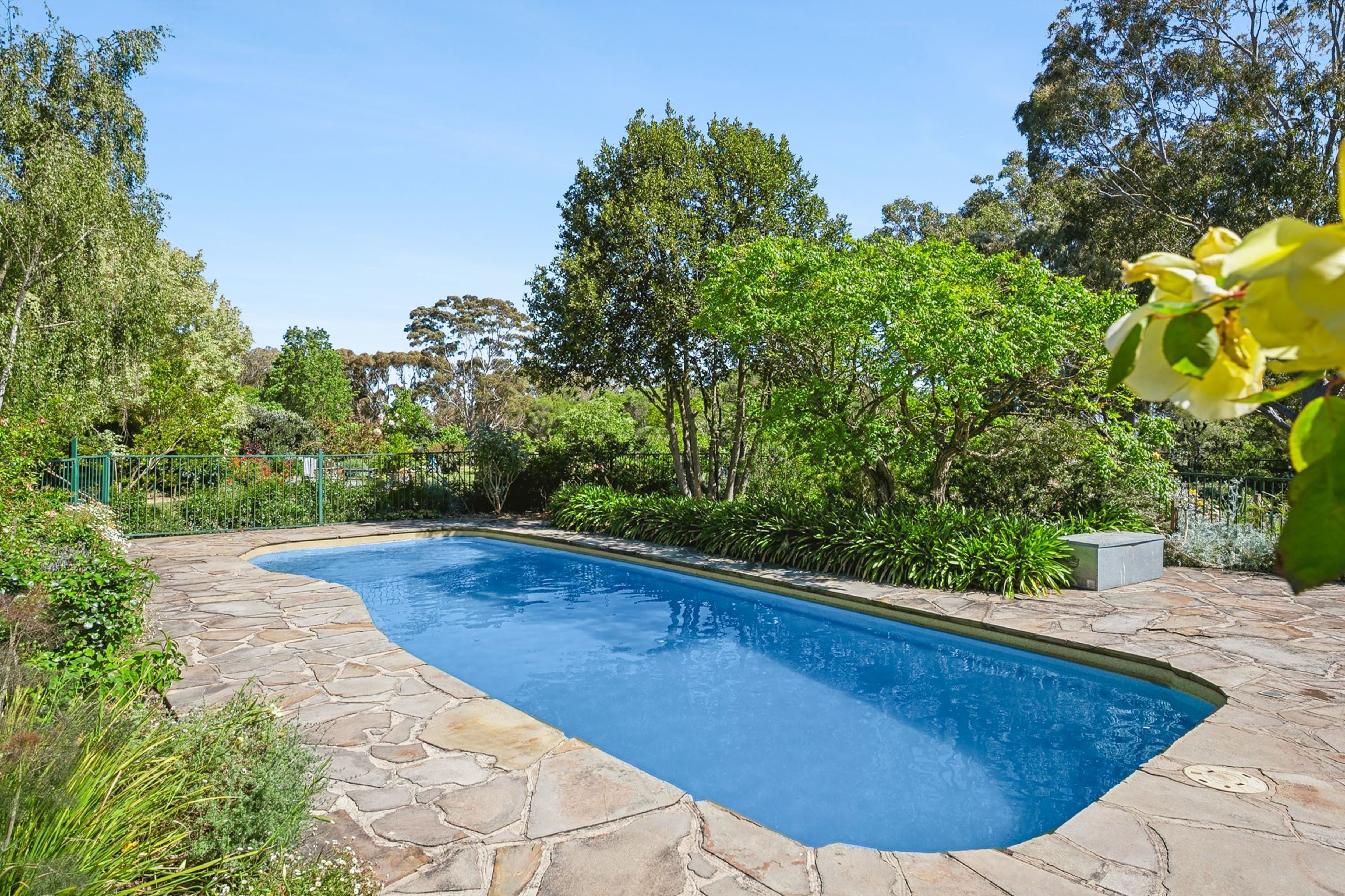 A salt-chlorinated, solar-heated in-ground pool will be a hit with the kids and the beautiful established gardens wrap around the home, giving a great sense of calm and rural tranquillity.