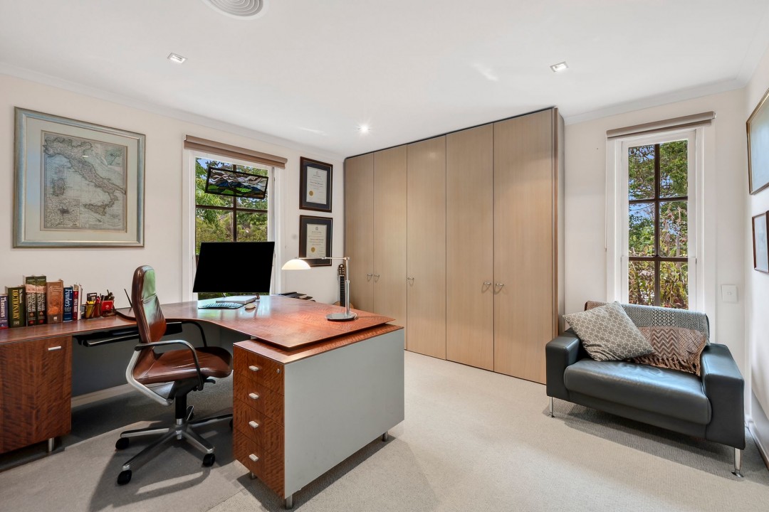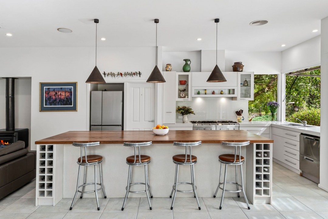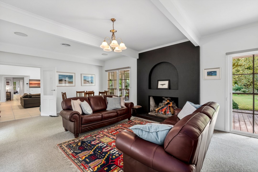 Seven generous sized bedrooms including master with walk-in-robe and ensuite, guest bedroom with stylishly renovated ensuite, separate lounge room with wood fire, living room/den, home office, spacious family bathroom for the kids, large laundry with separate boot room and a double garage with workshop. Actron electric ducted heating & cooling support the home, along with a cleverly designed floorplan that showcases large family zones complemented by intimate retreats.