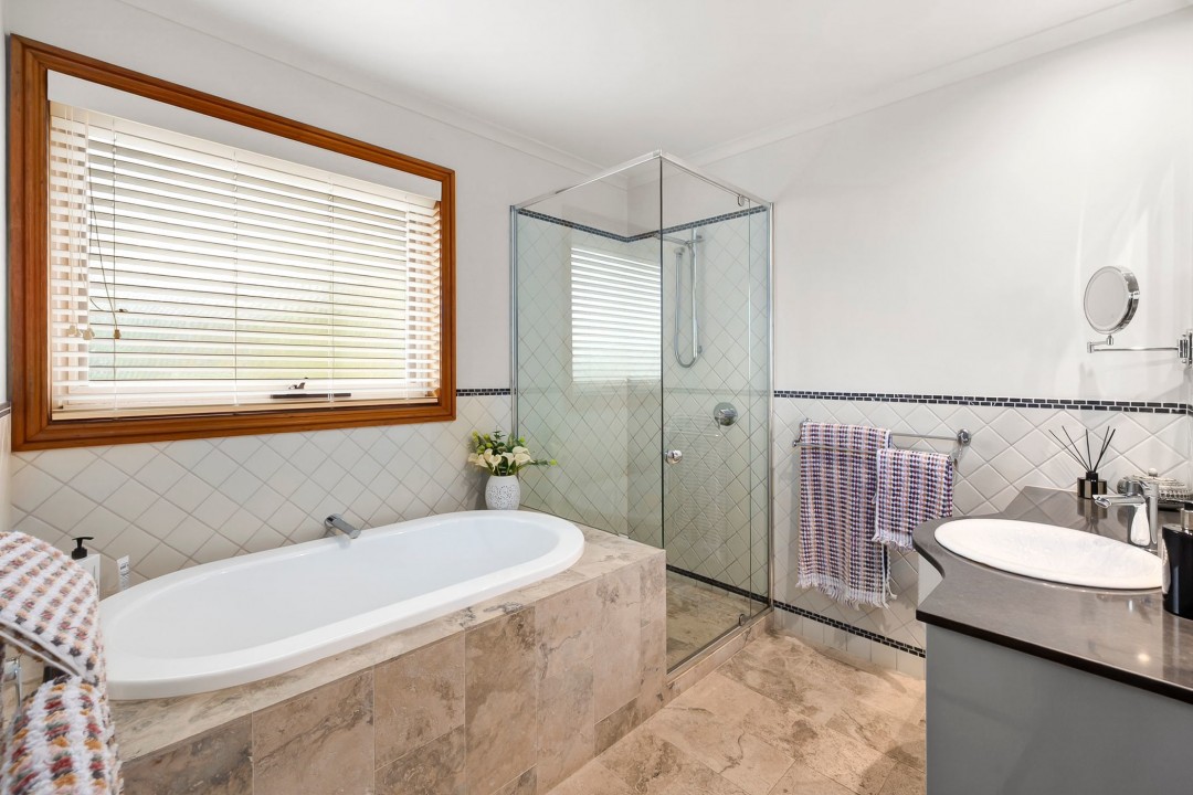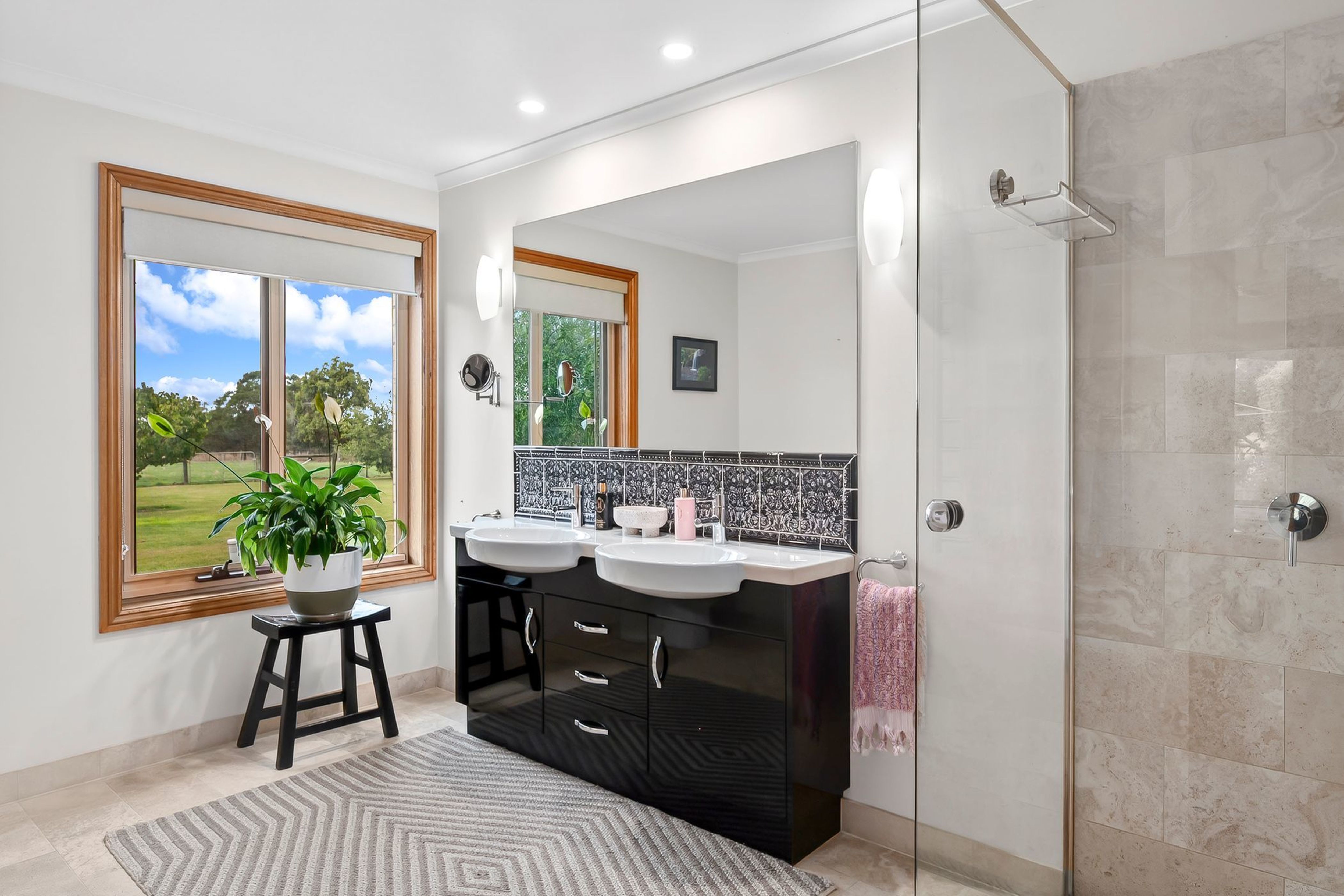 The generous floorplan offers 5 well-appointed bedrooms, including a luxurious master retreat complete with a renovated ensuite feat. gorgeous travertine tiles, walk-in robe and views over the garden towards the paddocks.