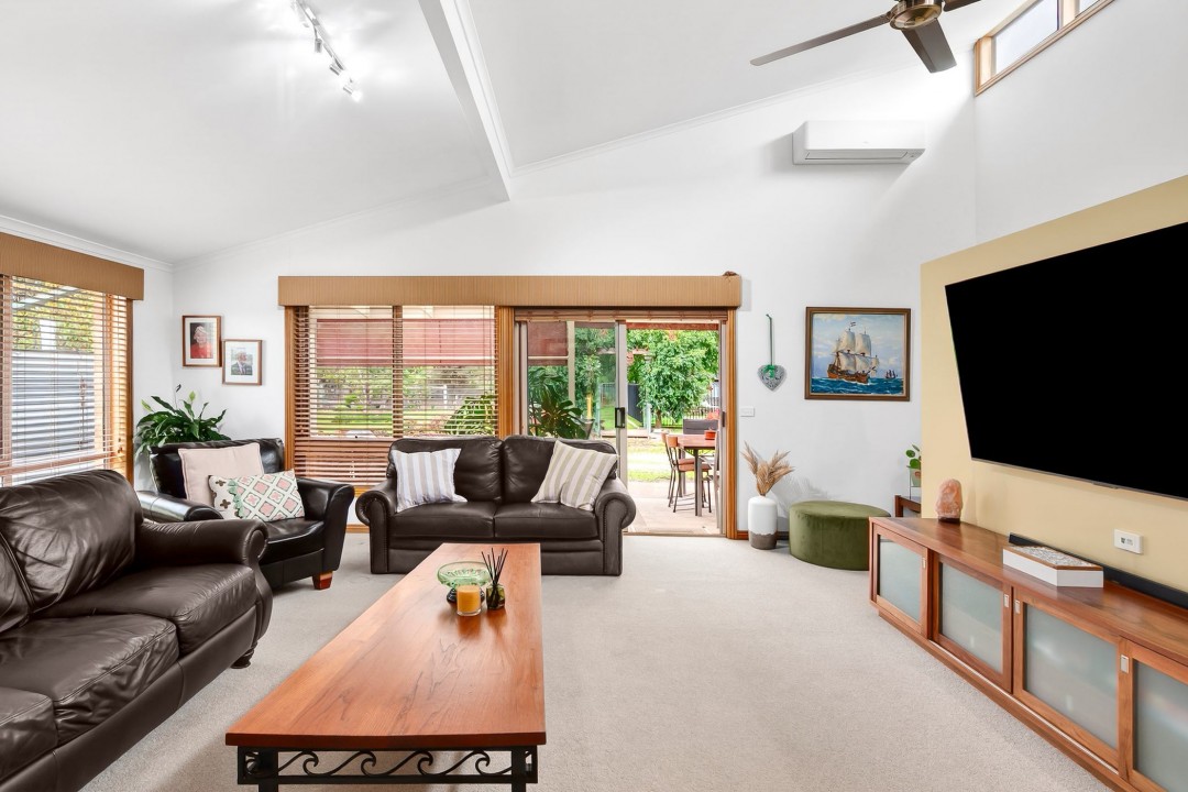 Seamless indoor-outdoor living is achieved with a north facing alfresco area overlooking the lawns, plus a covered pergola area on the side - perfect to watch the kids play by the pool. Newly built in 2023, the 7m x 4m magnesium pool (self-cleaning and solar heated) is a luxurious extra, the perfect retreat during the warmer months when a trip to the beach isn't possible.