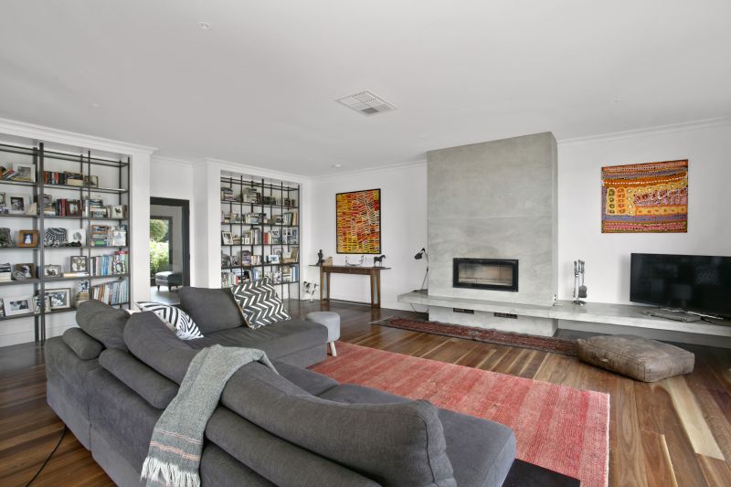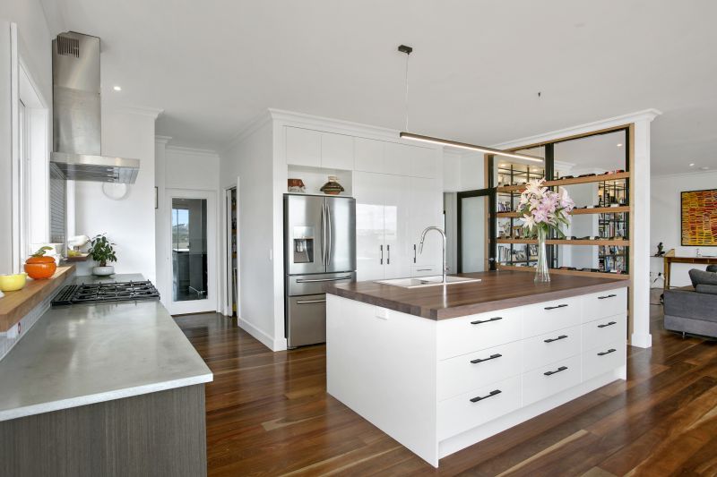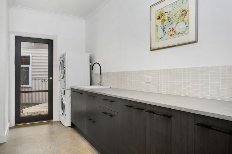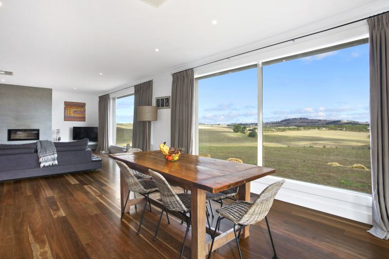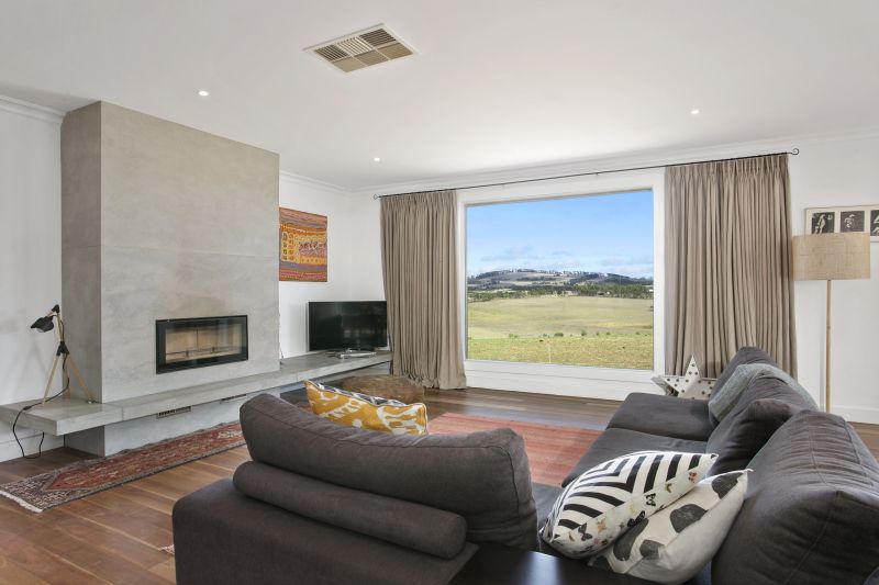 The home has been designed to harness the views and showcases solid spotted gum floors, polished concrete surfaces and luxurious bathrooms with in - floor heating and heated towel rails. The kitchen/living hub is outstanding with large picture windows framing the breathtaking patchwork of rolling hills and Mount Moriac. The quality kitchen features all mod cons, in particular a magnificent 90cm Falcon pyrolytic oven, surrounded by modern soft-close cabinetry and a large walk-in pantry. The considered design links the pantry and laundry for total domestic convenience.