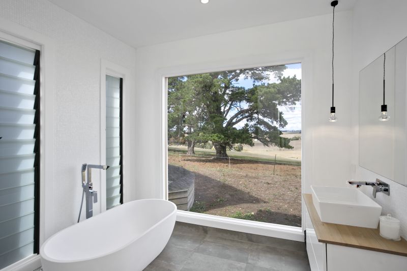 The master's wing is a contemporary pavilion with exquisite en suite, split system and extraordinary rural views! Three further BRs and an office share another dreamy bathroom.